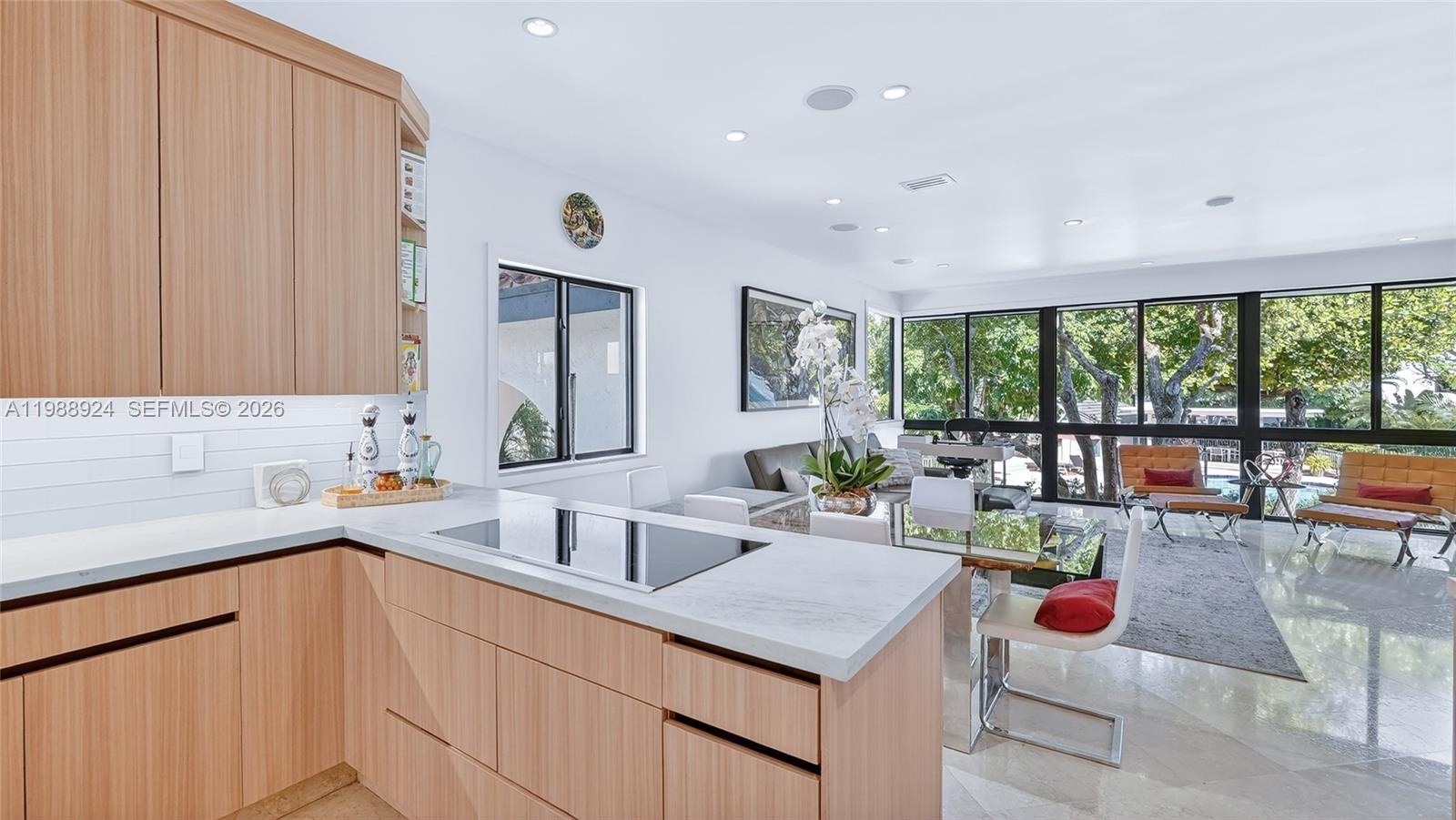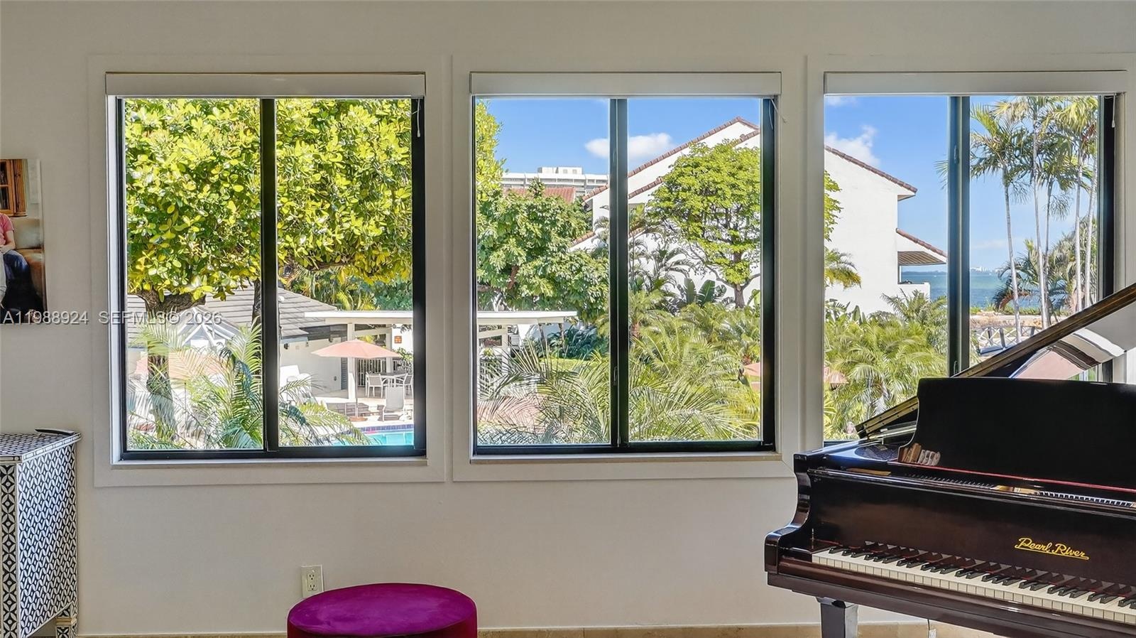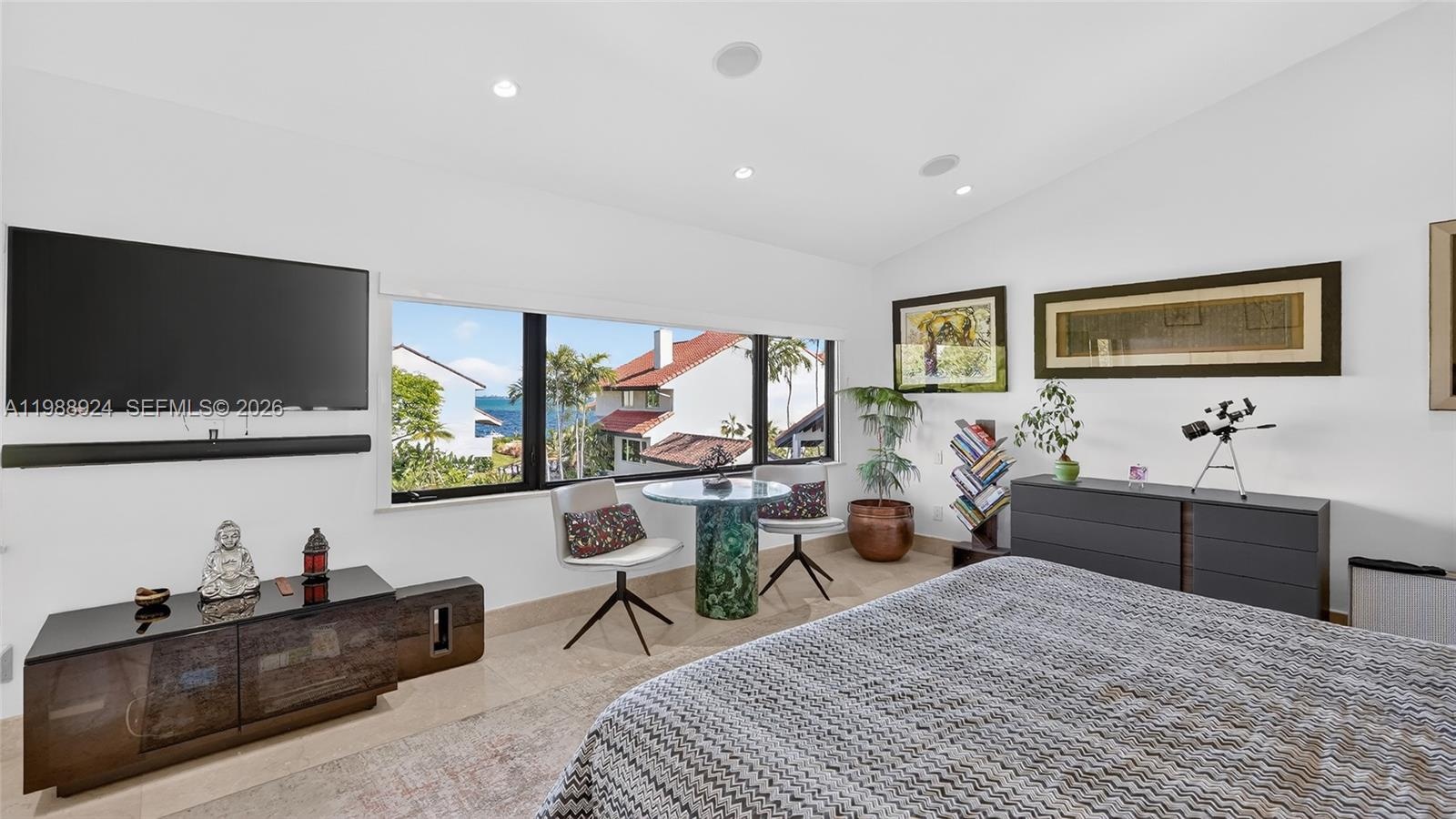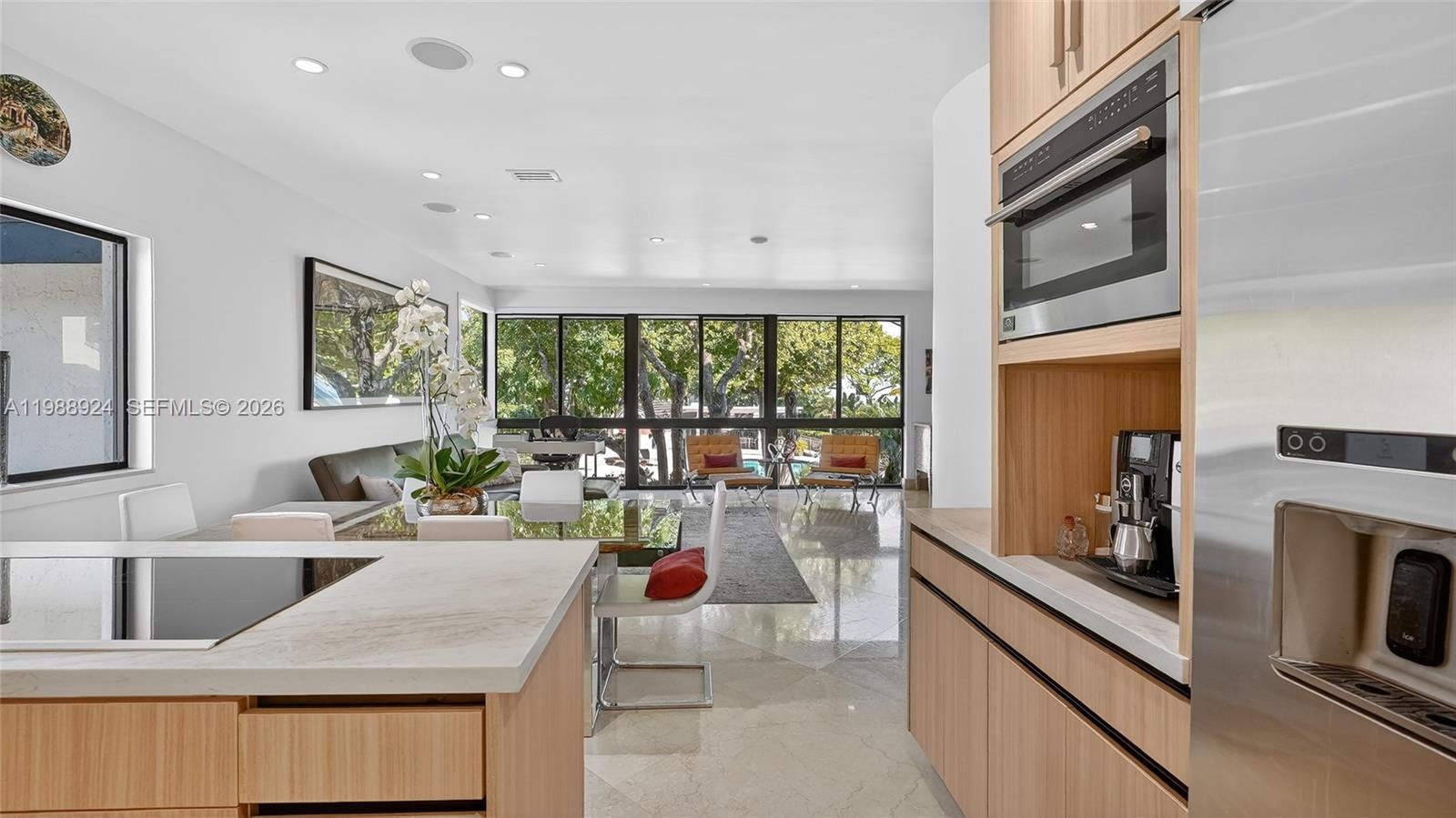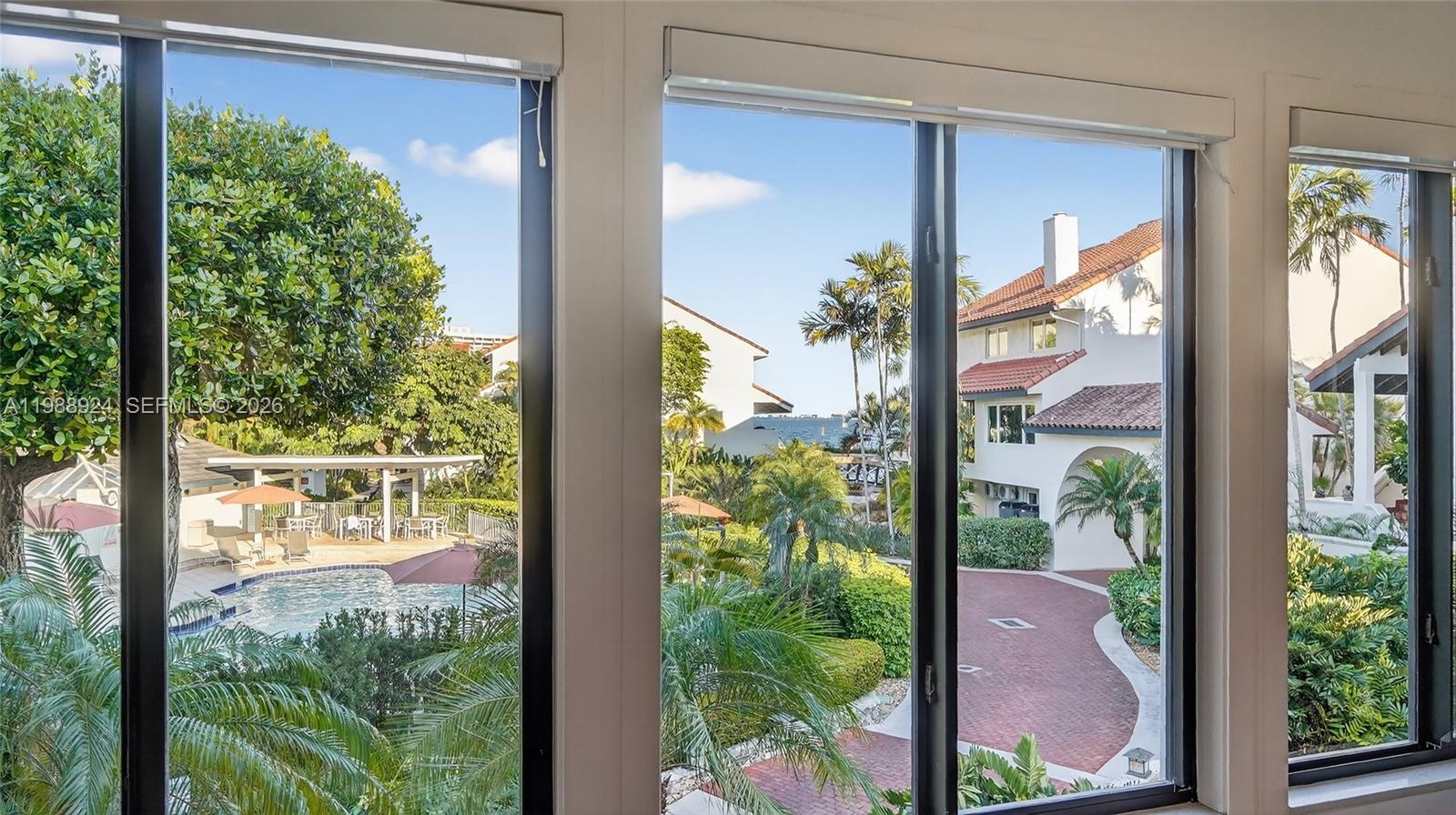 Experience a tranquil and secure lifestyle at L’Hermitage, located in Coconut Grove on Biscayne Bay within a gated community just a few steps from the Grove’s vibrant lifestyle. Only 10 residences sit directly on the bay, yet this villa offers expansive water and pool views among the remaining 65 units, with a rare unobstructed sightline to the bay that most buyers never expect outside the bayfront tier. Every inch has been thoughtfully enhanced. Beautifully updated kitchen with high-end appliances and Taj Mahal quartz countertops. All four bathrooms are tastefully updated in a clean, modern design. This residence features 3 en-suite bedrooms. The primary suite includes a steam shower and Jacuzzi. 48x48 marble floors throughout, impact windows and doors, high ceilings, and light-filled living spaces. Roof approx. 3 years old and both AC systems replaced within the past 4 years. Finished garage and 6 total parking spaces. Enjoy resort-style living with winding walkways through manicured gardens leading to the waterfront pool and dock, 2 clay tennis courts. Exceptional walkability to nearby parks and Coconut Grove along the waterfront. Minutes to Downtown, Key Biscayne, the beaches, and Brickell.