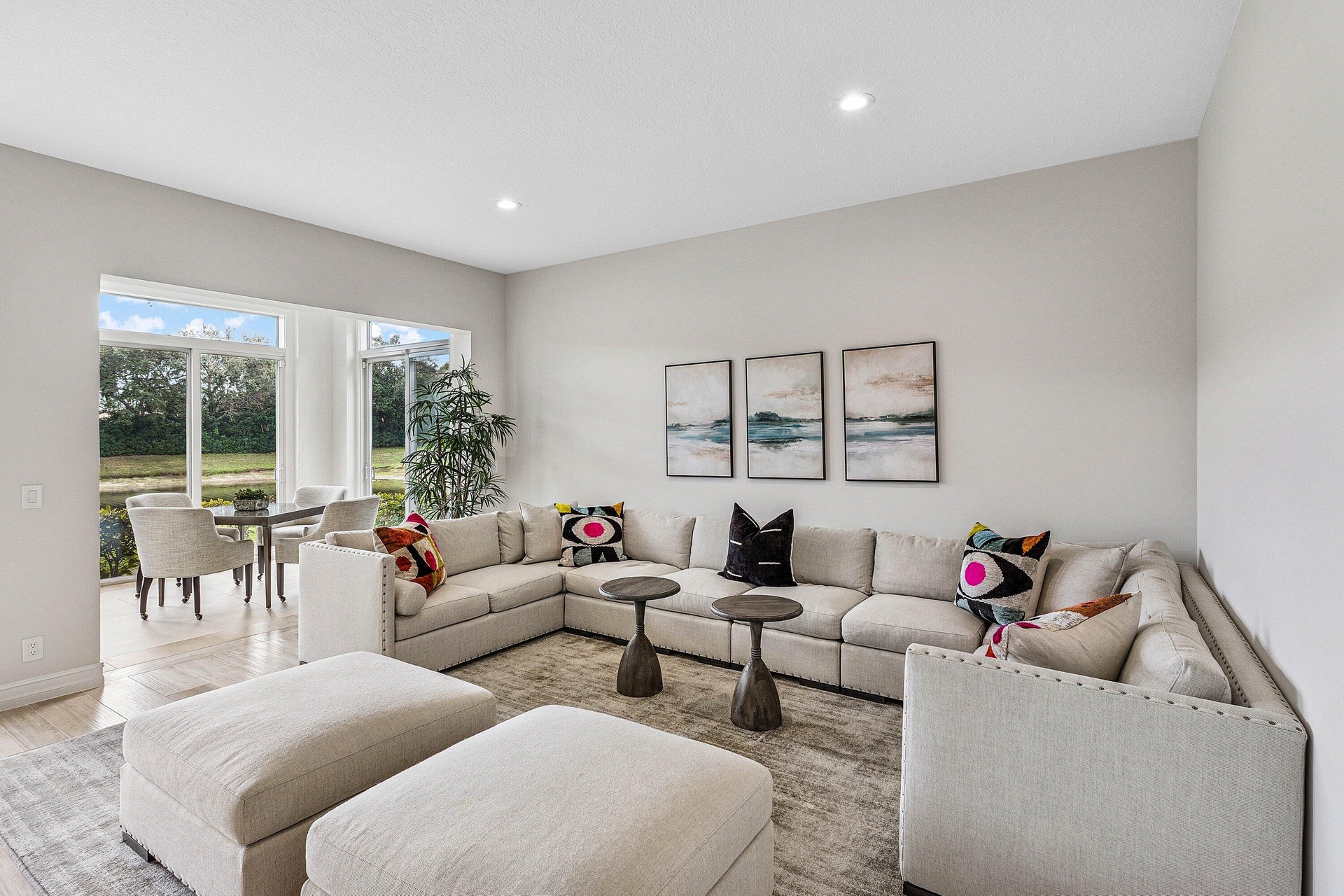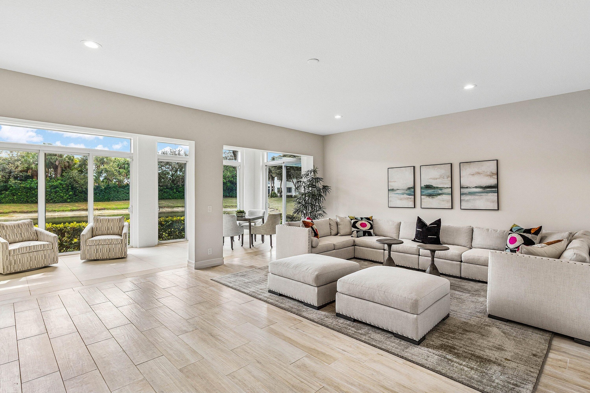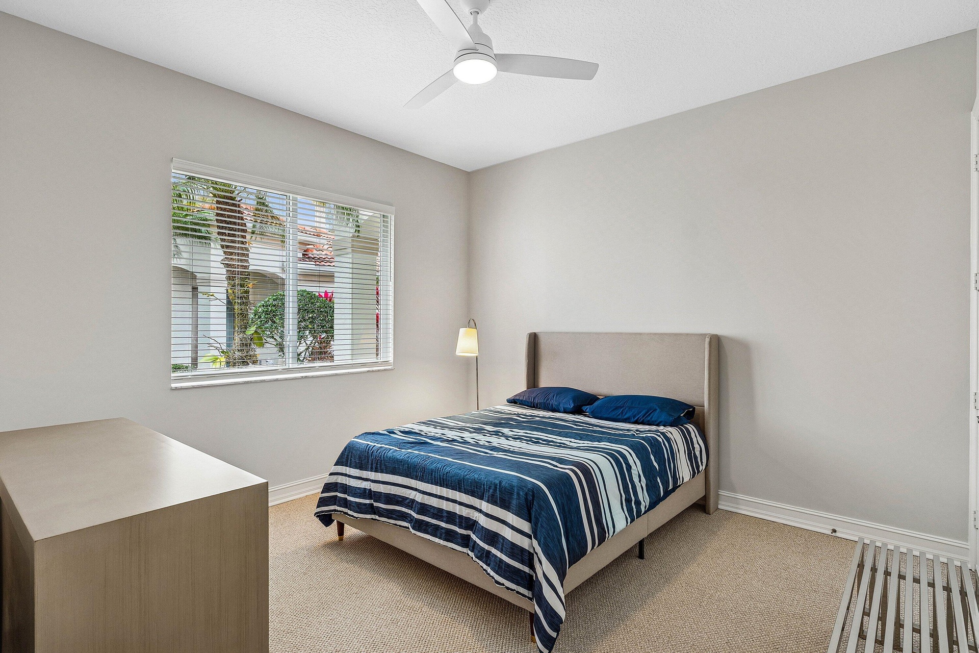 This stunning, newly renovated 1st-floor unit condo at 106 Palm Bay Drive, B, in Palm Beach Gardens offers 2 bedrooms, 2 bathrooms, plus a versatile den/office, spanning 2,085 SF. Enjoy serene and private lake views from the bright sun filled patio, complete with impact glass sliders for peace of mind. The modern interior features new flooring, stainless steel appliances, and sleek quartz countertops. A 2-car garage adds convenience. Available for annual furnished rental at a 6 month minimum. No membership conveyed with this rental. Experience luxury and tranquility in this exquisite Ballenisles retreat!