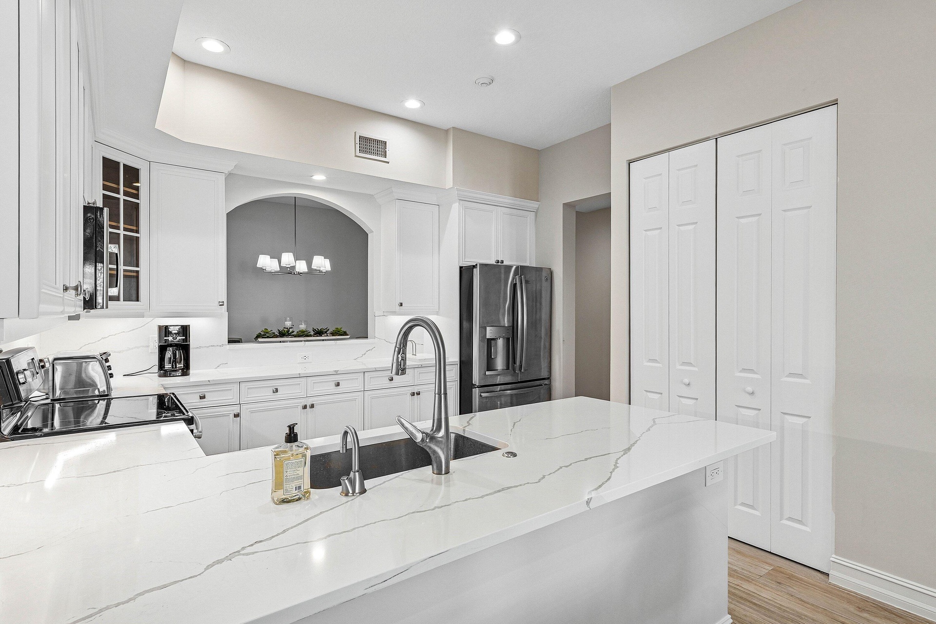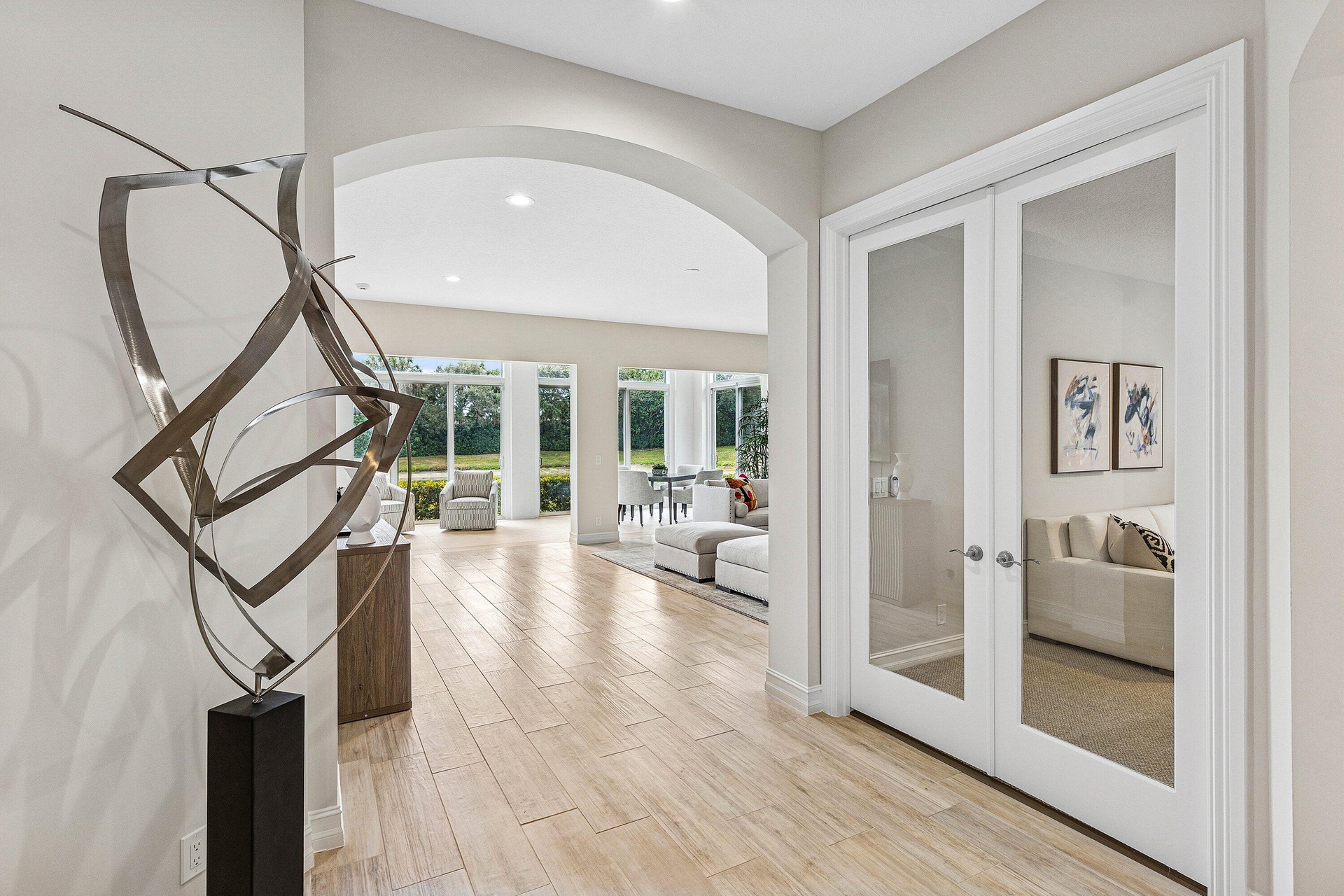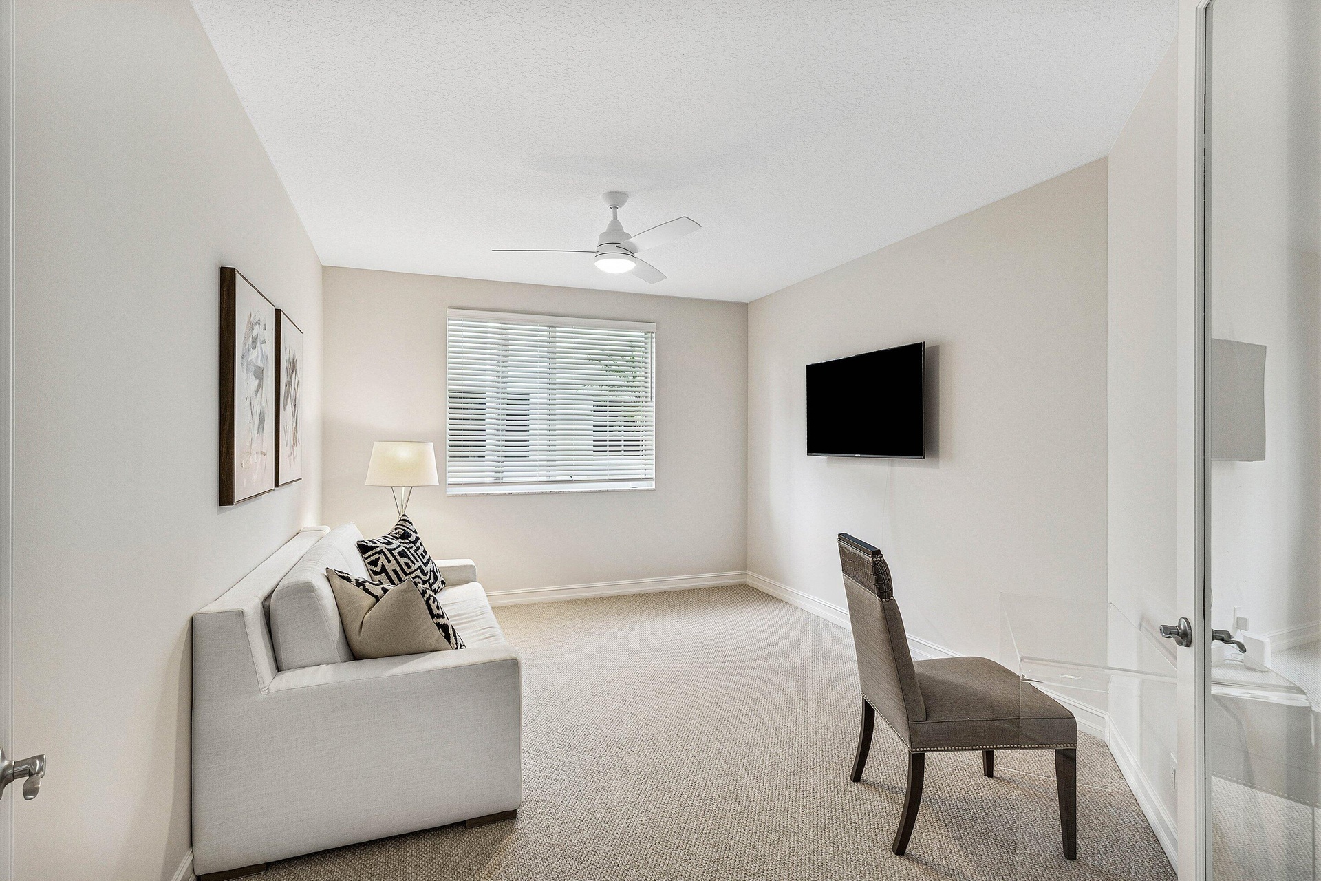 This stunning, newly renovated 1st-floor unit condo at 106 Palm Bay Drive, B, in Palm Beach Gardens offers 2 bedrooms, 2 bathrooms, plus a versatile den/office, spanning 2,085 SF. Enjoy serene and private lake views from the bright sun filled patio, complete with impact glass sliders for peace of mind. The modern interior features new flooring, stainless steel appliances, and sleek quartz countertops. A 2-car garage adds convenience. Available for annual furnished rental at a 6 month minimum. No membership conveyed with this rental. Experience luxury and tranquility in this exquisite Ballenisles retreat!