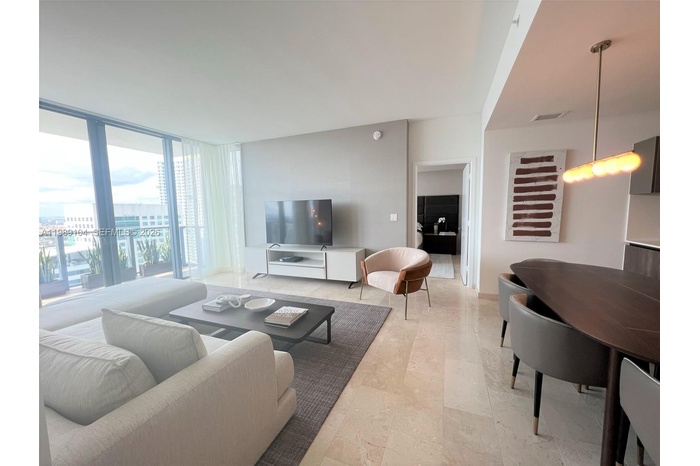 BEAUTIFUL 2+DEN WITH DOUBLE ASSIGNED PARKING, FURNISHED & FULLY EQUIPPED, READY TO MOVE IN. PREVIOUS SALES MODEL (ARTEFACTO FURNITURE, PRICE INCLUDES FURNITURE) FLOOR TO CEILINGS WINDOWS WITH ABUNDANT NATURAL LIGHT. 2+DEN (DEN HAS A MURPHY BED AND CAN BE USED AS A 3RD BEDROOM). OUTSTANDING VIEWS TO THE BAY, RIVER & CITY. EUROPEAN DESIGN. UNIT IS LOCATED AT RISE CONDOMINIUM WITHIN BRICKELL CITY CENTRE. CLOSE TO EVERYTHING. METRO MOVER ACCESS. READY FOR IMMEDIATE OCCUPANCY. EASY TO SHOW. TWO PARKING SPACES. (TANDEM PARKING). SOLD TURN KEY.