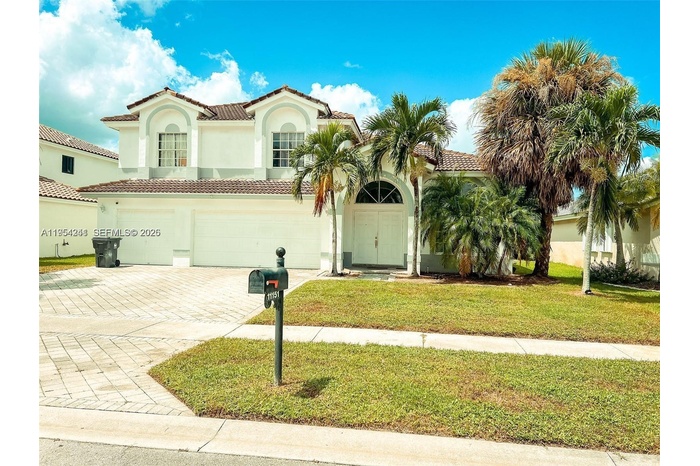 This 5-bedroom beauty features a primary suite and a guest bedroom with a full bath on the first floor, perfect for an office or in-law suite. Upstairs, find 3 more bedrooms and a full bath. Entertaining is easy with an open kitchen, , and granite countertops, overlooking the family room and outdoor area. extended paver patio, and cabana bath. Includes a whole-home water softener system and sprinkler pump. Community perks: clubhouse, pickleball, tennis, basketball courts, pool, and manned gate.