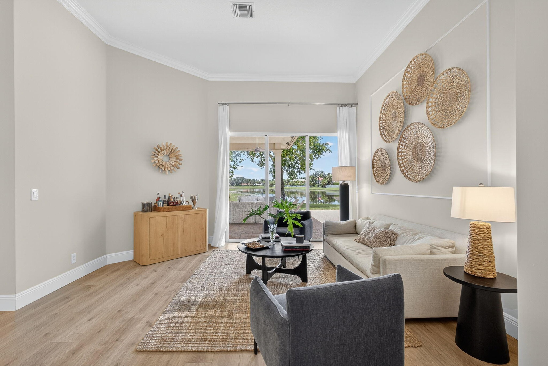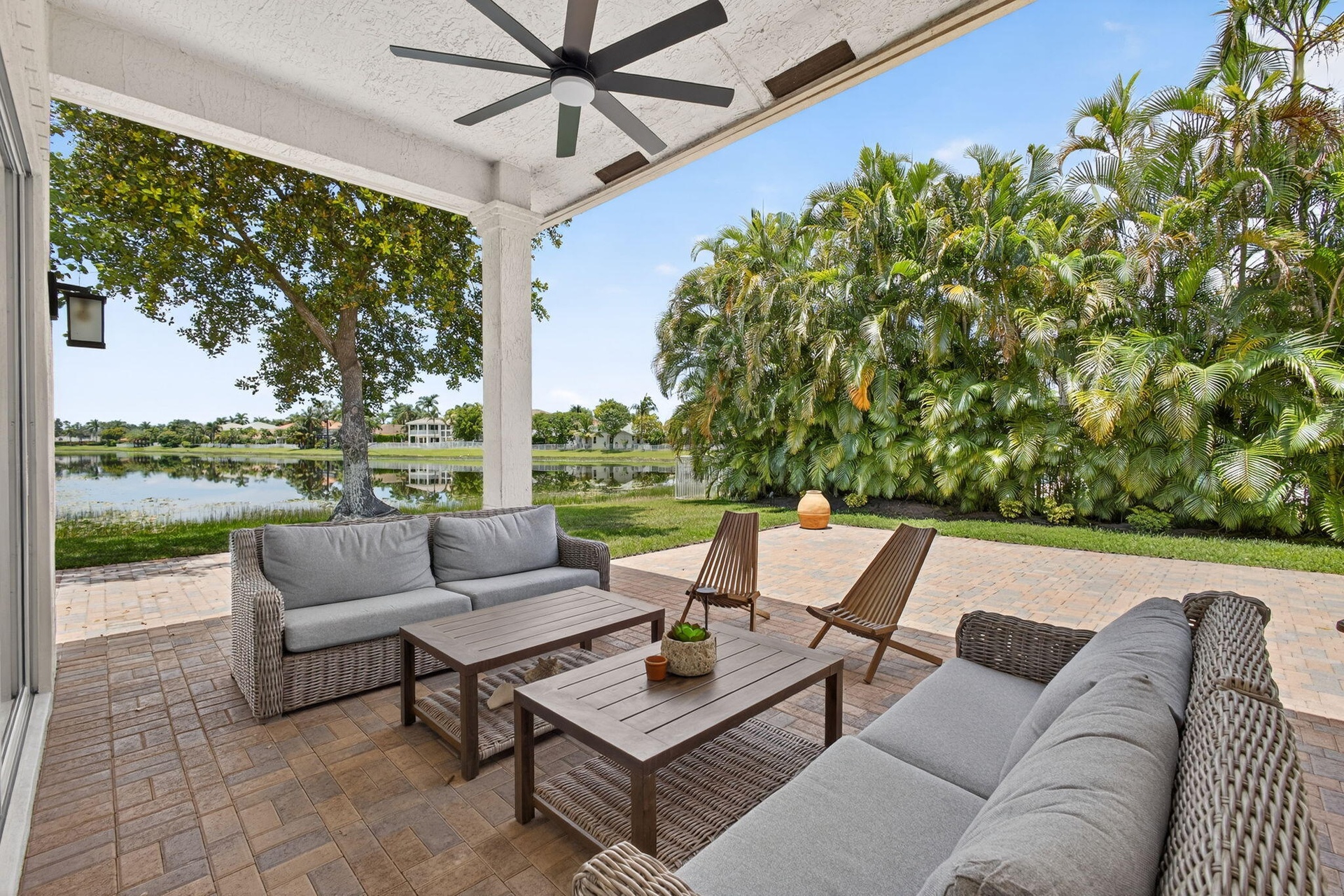 Experience luxury living in this stately 5-bedroom, 3-bath masterpiece with breathtaking lake views that inspire relaxation and awe. Watch stunning sunsets and vibrant wildlife from the covered patio in this beautifully decorated, fully furnished home featuring top-of-the-line finishes throughout. Triple split bedroom setting, for privacy. Nestled in a 24-hour manned gated community, you'll enjoy access to a state-of-the-art gym, heated pool, and endless serenity. Just 5 minutes from WEF and world-class polo winter events, this home is your private sanctuary in the heart of it all. Live beautifully. Entertain effortlessly. Relax completely. Close to shopping, high way access 30m. to down town and PBI