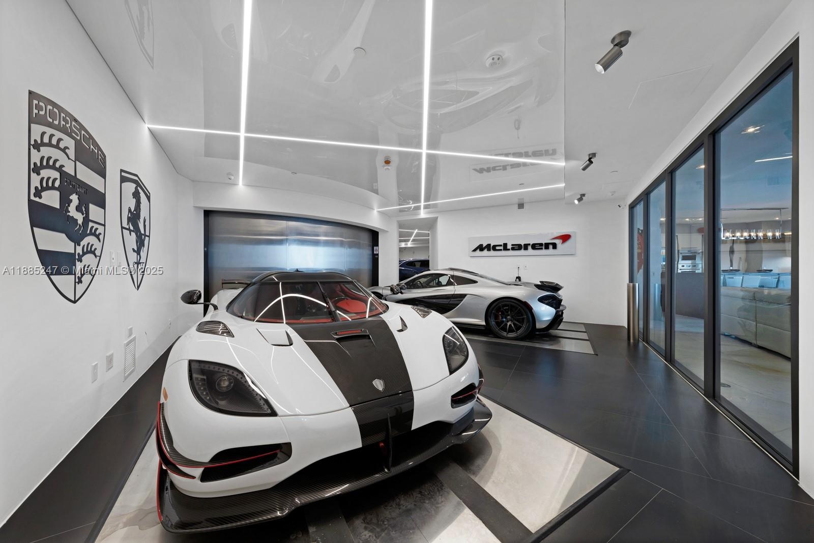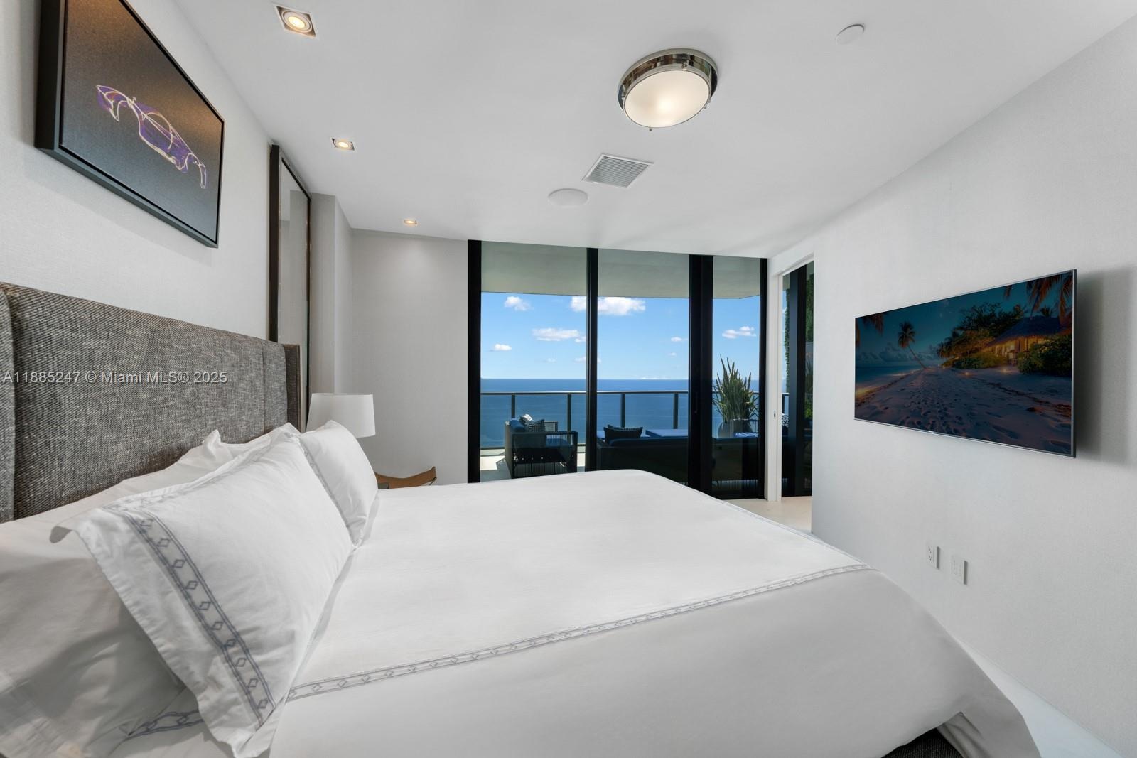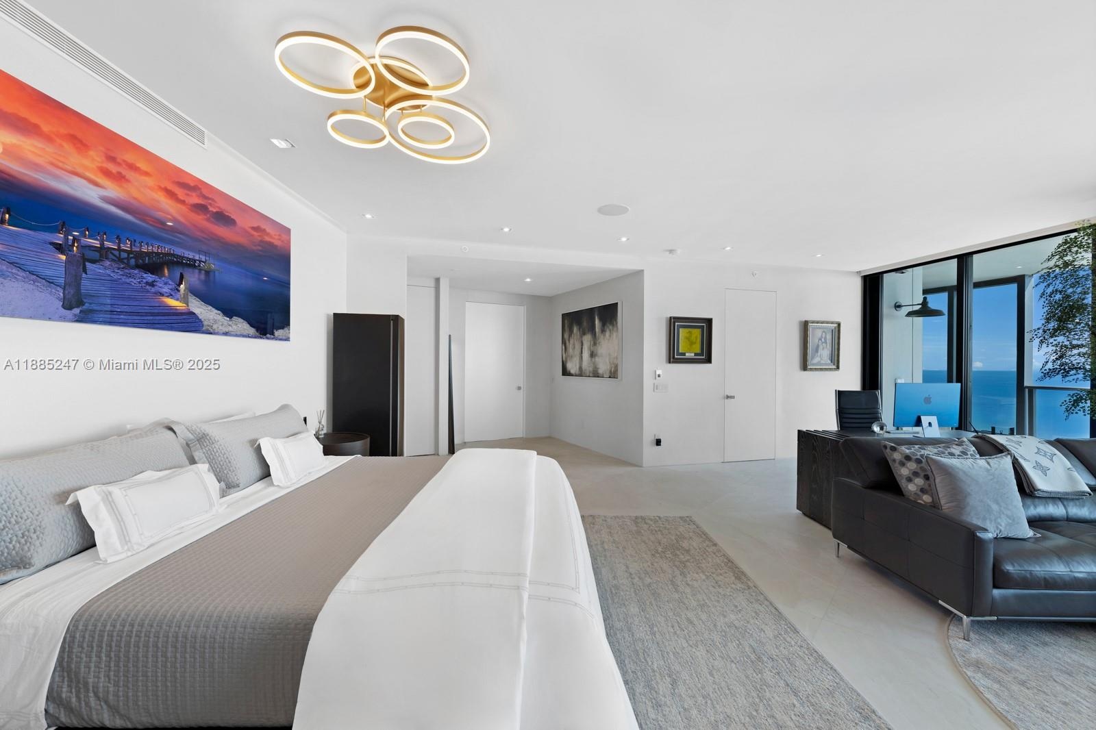 Crown Jewel Penthouse at Porsche Design Tower. This 2-level oceanfront residence features soaring 22-ft ceilings, custom wet bar, 98" Sony TV, MiaCucina kitchen with Wolf & Thermador appliances, & a striking Cetta 1800-bottle wine cellar. The primary suite includes Ornare closet, office & gym. Expansive terraces boast a mosaic-tiled pool, fire pit & summer kitchen. Fully Lutron automated Savant, 14 TVs, 3 fireplaces & 4-car sky garage with private elevator. A mansion in the sky, completely reimagined turnkey with exquisite upgrades & flawless finishes. This smart home showcases breathtaking ocean, city & Intracoastal views—set in one of the worlds most exclusive boutique buildings with unmatched privacy & the iconic Dezervator that seamlessly parks you & your car directly inside your home.