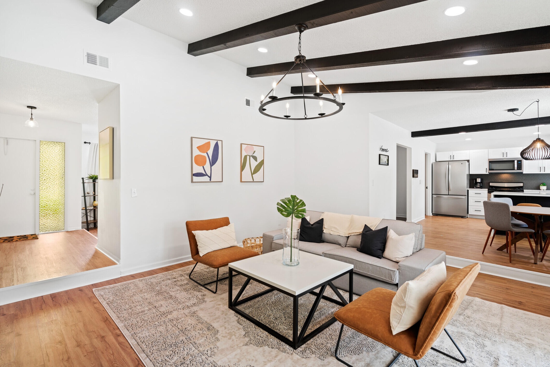 Available now for off-season rental (now through November). Newly renovated and beautifully decorated, fully furnished 4-bedroom, 2-bath home fully stocked for your rental needs. Private pool and spacious screened-in deck with a brand-new serving counter extending from the kitchen to the outdoor patio—perfect for entertaining and enjoying outdoor living. Every detail has been thoughtfully designed to create a luxurious, comfortable, and worry-free stay. Located just 2 miles from the Wellington Green Mall and nearby restaurants. Master bedroom features a king bed, bedrooms 2 and 3 have queen beds, and the fourth bedroom has two twin beds