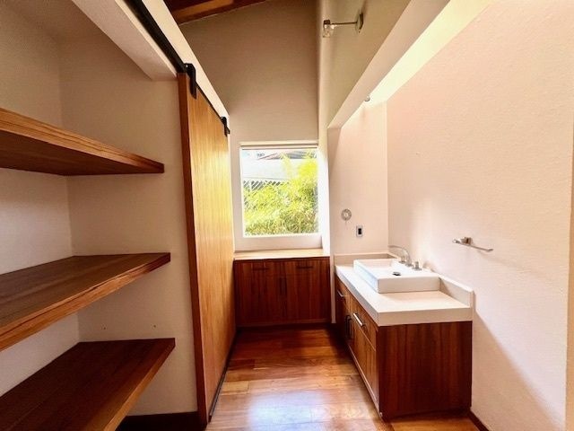 The residence offers three generously sized bedrooms, along with a stylish family room that can easily be converted into a fourth bedroom.