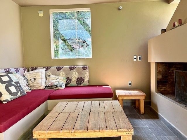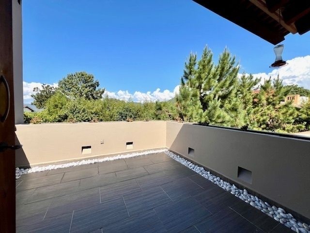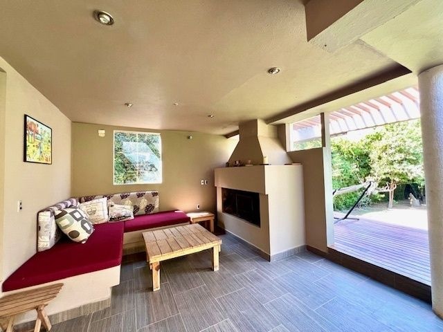 The terrace, complete with a fireplace and jacuzzi, provides an ideal setting for relaxation and entertaining, seamlessly blending indoor and outdoor living.