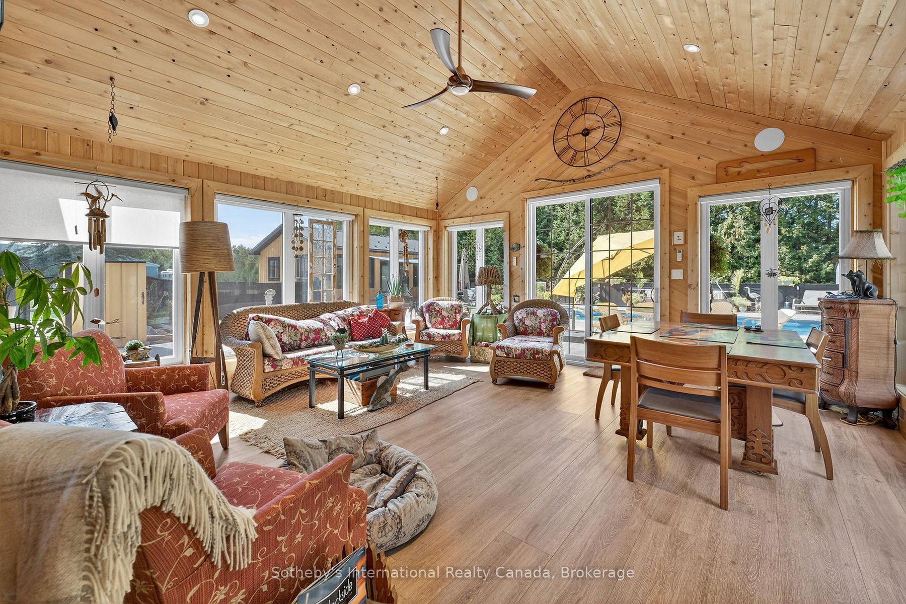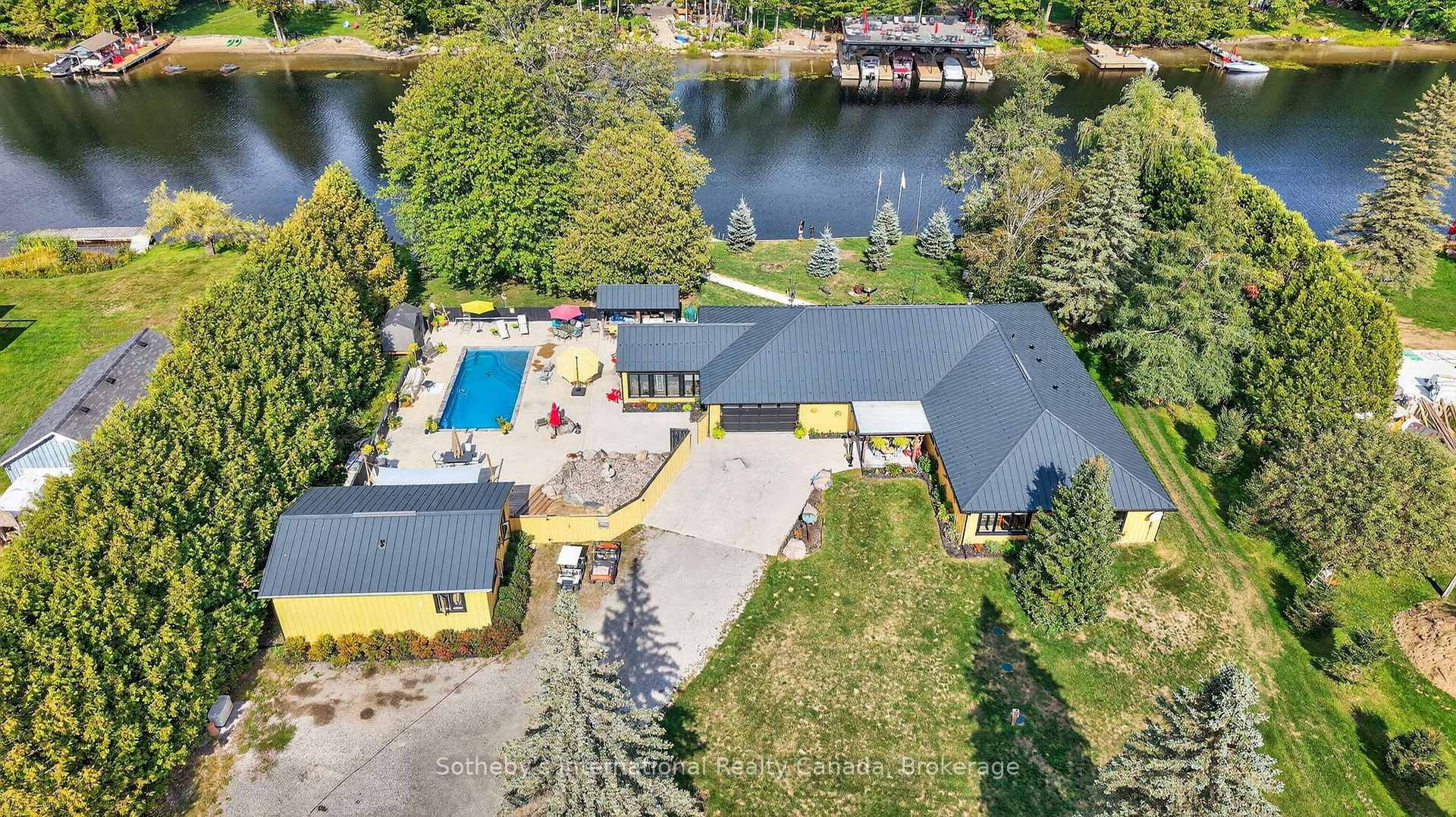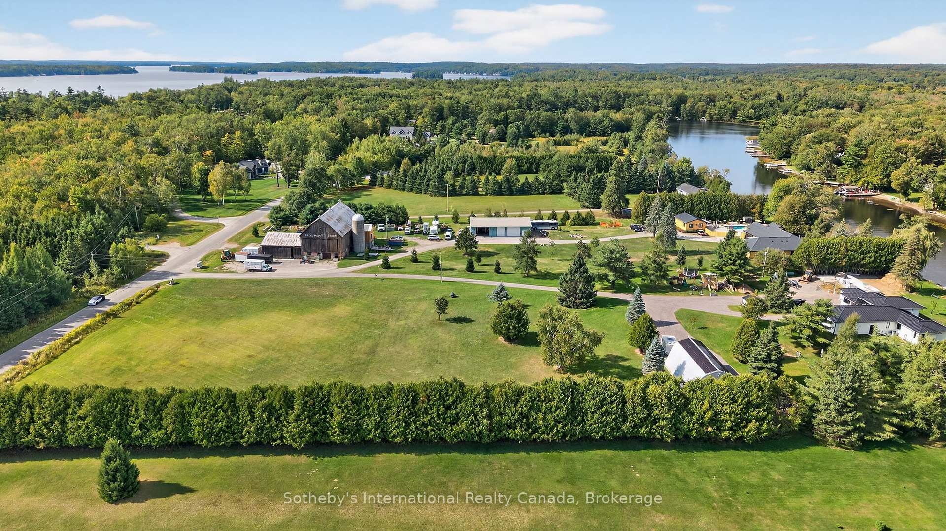 Direct access to Lake Muskoka. Welcome to your private family compound, 3.6 acres of completely flat land, perfectly positioned at the mouth of the Muskoka River. This exceptional property offers the ultimate blend of waterfront lifestyle, privacy, and multi-generational living. The beautifully designed 4,000sq.ft. main residence features a bright open-concept layout, anchored by a spacious chef-inspired kitchen and expansive living areas ideal for entertaining. With 5 bedrooms and 3 bathrooms, the home is thoughtfully designed for both everyday comfort and hosting family and friends. Complementing the main home is a 1,000sq.ft Bunkie offering two fully self-contained suites, each complete with its own kitchen and bathroom-perfect for guests, or extended family. In total, the property offers 7 bedrooms and 5 bathrooms across all living spaces. Outdoors, enjoy a true resort-style setting featuring a sparkling pool, outdoor kitchen, and sauna-creating the perfect space to relax and entertain all summer long. The level, wheelchair-accessible boathouse provides effortless waterfront enjoyment, while the property's location offers quick and convenient access to the open waters of Lake Muskoka. For hobbyists and outdoor enthusiasts, the property is complete with a 6,000sq.ft. barn for all your recreational toys, along with a 2,000sq.ft. workshop ideal for storage, maintenance, or creative pursuits. A rare opportunity to own a versatile and luxurious Muskoka retreat enriched with history, designed for gathering, entertaining, and making lasting memories. A true art piece - truly Muskoka, truly one-of-a-kind!