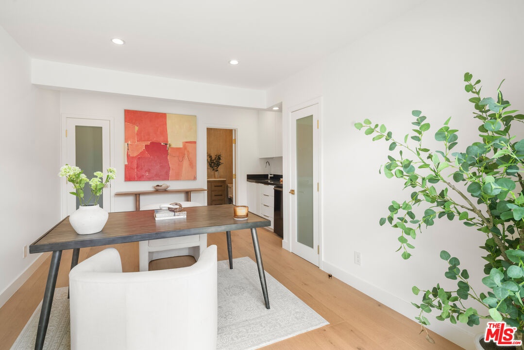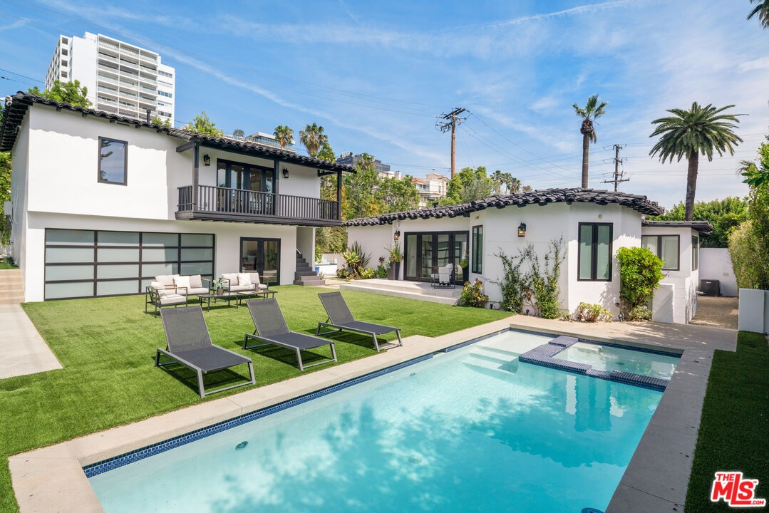Private Compound Living Situated in the highly coveted Beverly Hills Flats, this gated and fully hedged estate offers a rare blend of privacy, versatility, and refined design all just moments from the best of Beverly Hills. Set behind lush, mature landscaping, the property unfolds as a true compound, where the pace of Doheny Drive fades away, giving way to a serene and private environment. Inside, the main residence features 3 bedrooms and 3.5 bathrooms, thoughtfully designed with elegant proportions, abundant natural light, and seamless indoor-outdoor flow. The gourmet Italian chef's kitchen is appointed with premium Miele and Gaggenau appliances, ideal for both everyday living and sophisticated entertaining. A standout feature of the property is the detached guest house, offering a fully independent living experience. Complete with 2 bedrooms (one currently styled as an office), a full kitchen, breakfast area, and a dedicated screening/media space, it is perfectly suited for extended family, guests, or a private work-from-home retreat. The home has been recently refreshed, featuring new tile work and thoughtful enhancements throughout, creating a clean, elevated, and move-in-ready environment. The grounds are designed for both comfort and functionality, featuring a Gated and fully enclosed perimeter with mature hedging for ultimate privacy, a Two-car garage plus additional parking for additional vehicles. Dual rear access points for discreet and convenient entry and Expansive outdoor areas ideal for entertaining or relaxation. Additional highlights include a Crestron home automation system, providing seamless control of lighting, media, and comfort throughout the property. Offering the scale, privacy, and flexibility often sought within the Flats, this property presents a distinctive opportunity to enjoy the Beverly Hills lifestyle in a setting that balances accessibility with seclusion. Priced with intention to reflect location while delivering a compelling value relative to nearby interior streets. Property shows as a true private compound; once inside, the hedging and layout significantly buffer street presence and create a quiet, enclosed environment. Prime location offers close proximity to the Sunset Strip lifestyle just moments to Soho House, Bird Streets Club, and premier dining, shopping, and nightlife.