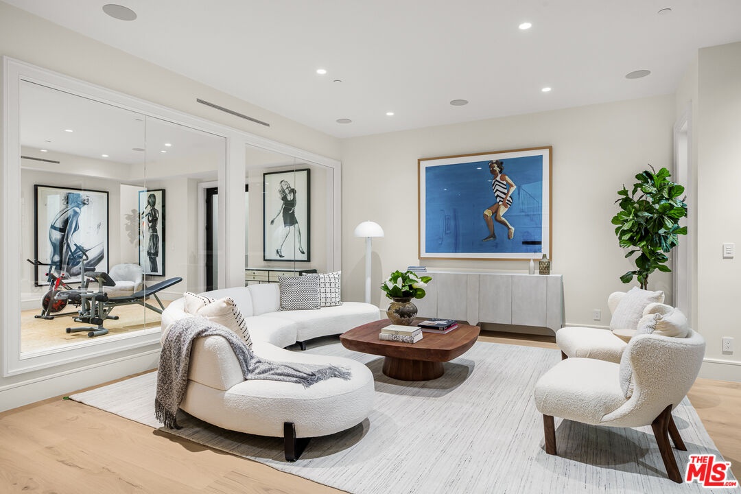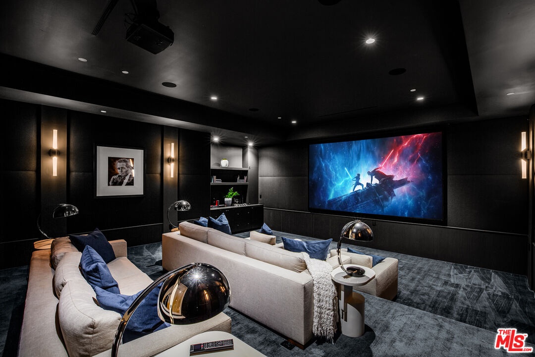 Situated in the prestigious enclave of Brentwood Park, this newly constructed Traditional estate by renowned architect Ken Ungar is a masterful expression of timeless design and modern luxury. Soaring ceilings and beautifully proportioned interiors create a refined yet welcoming atmosphere, thoughtfully designed for both grand-scale entertaining and comfortable everyday living. At the heart of the home, the gourmet chef's kitchen features marble countertops, a sunlit breakfast nook, and a built-in coffee bar, all enhanced by finely crafted custom details. The kitchen flows seamlessly into the living and family rooms, where dramatic retractable glass walls dissolve the boundary between indoors and out, opening to expansive grounds designed for effortless entertaining. The outdoor setting includes a spacious patio with an outdoor kitchen and BBQ, resort-style pool and spa, and a sweeping manicured lawn. A detached guest studio with kitchenette and private bath completes the grounds. The main level also features a beautifully wood-paneled formal dining room, a private office, and a guest bedroom suite. Upstairs, four ensuite bedrooms include a luxurious primary suite with a private balcony, fireplace, dual dressing rooms, and a striking book-matched marble bath. In total, the residence offers seven bedrooms and nine bathrooms. The lower level is designed for leisure and wellness, featuring a game room, bar, temperature-controlled wine room, gym, private cinema, and a dedicated wellness suite with sauna and steam shower, along with additional staff or guest accommodations. A rare offering of brand-new construction in one of Los Angeles' most sought-after neighborhoods.