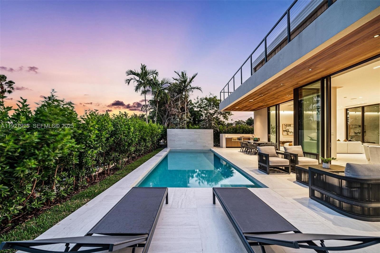 A coastal modern gem only moments from the beach. Six bedrooms and 6.5 bathrooms centered around a sun filled courtyard that brightens the entire home. Enjoy Wolf and Sub Zero appliances in the gourmet kitchen and speakers throughout for seamless living. The east facing backyard captures the ocean breeze and features a spectacular summer kitchen for effortless entertaining.