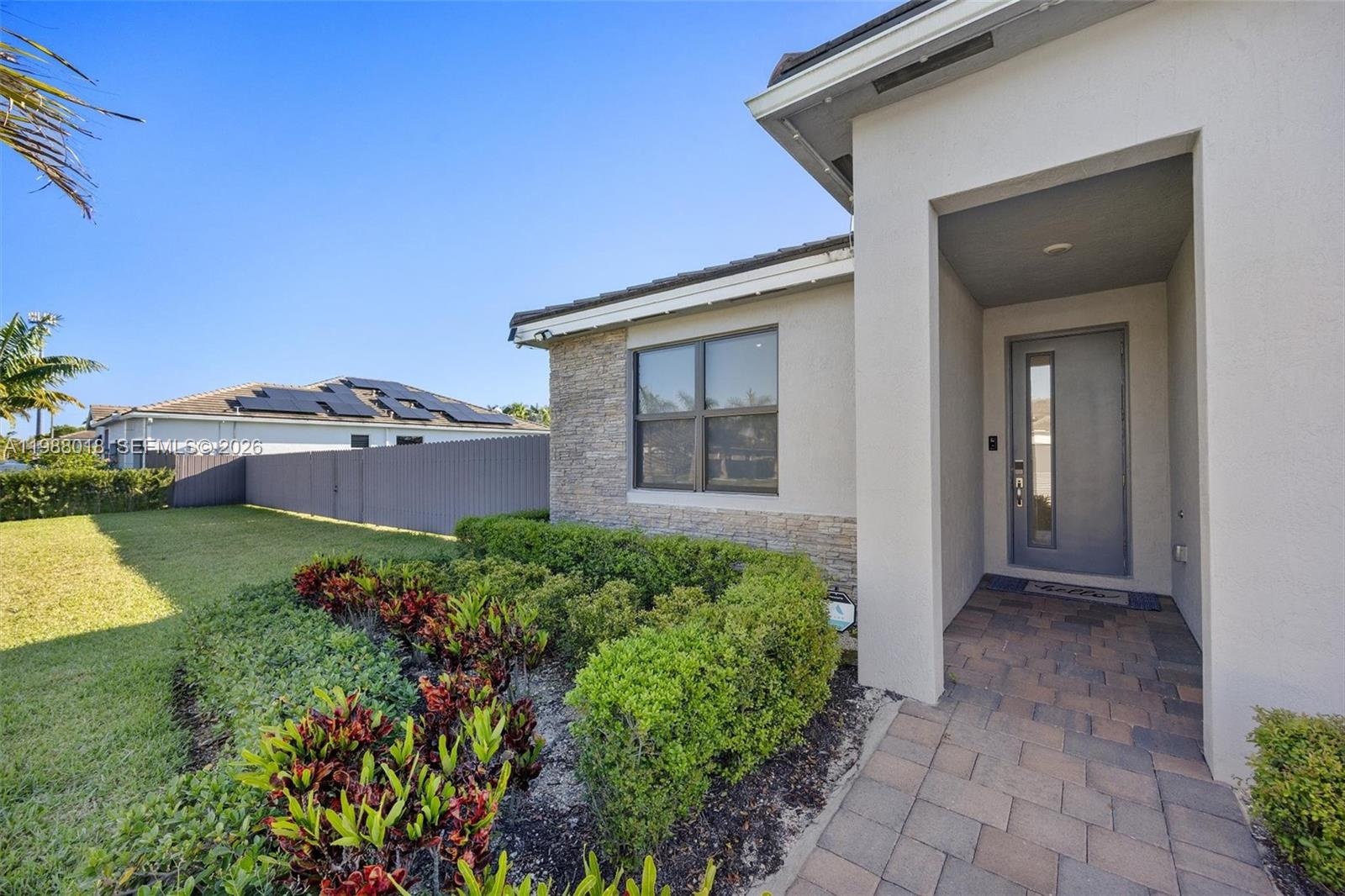 Discover the Fraser model, a stunning single-story residence in The Grove. This 2,603-square-foot home offers four bedrooms and three bathrooms, blending modern design with functional space. The heart of the home features bright kitchen cabinetry paired with granite counters and stainless steel appliances. This property is defined by its exceptional smart home package and structural integrity, featuring a roof installed in 2023 and impact windows throughout for peace of mind. Setting this residence apart from anything else in the area is a sophisticated energy and connectivity suite, including two Tesla Powerwall 3 batteries providing 27 kWh of total backup power. The interior is further enhanced by phone-controlled automated shades and Govee smart lighting throughout. Connectivity is seamless with Starlink satellite internet (latest dish and router included), while an exterior security camera system provides comprehensive coverage. The exterior features a covered terrace that overlooks a spacious yard with ample room for a custom pool or additional outdoor storage. A three-bay garage adds ample storage. Located near local dining, shopping centers, and health services, this property is perfectly positioned for convenience. Experience contemporary living in a peaceful setting with refined finishes, open spaces, and a future-ready technology infrastructure.