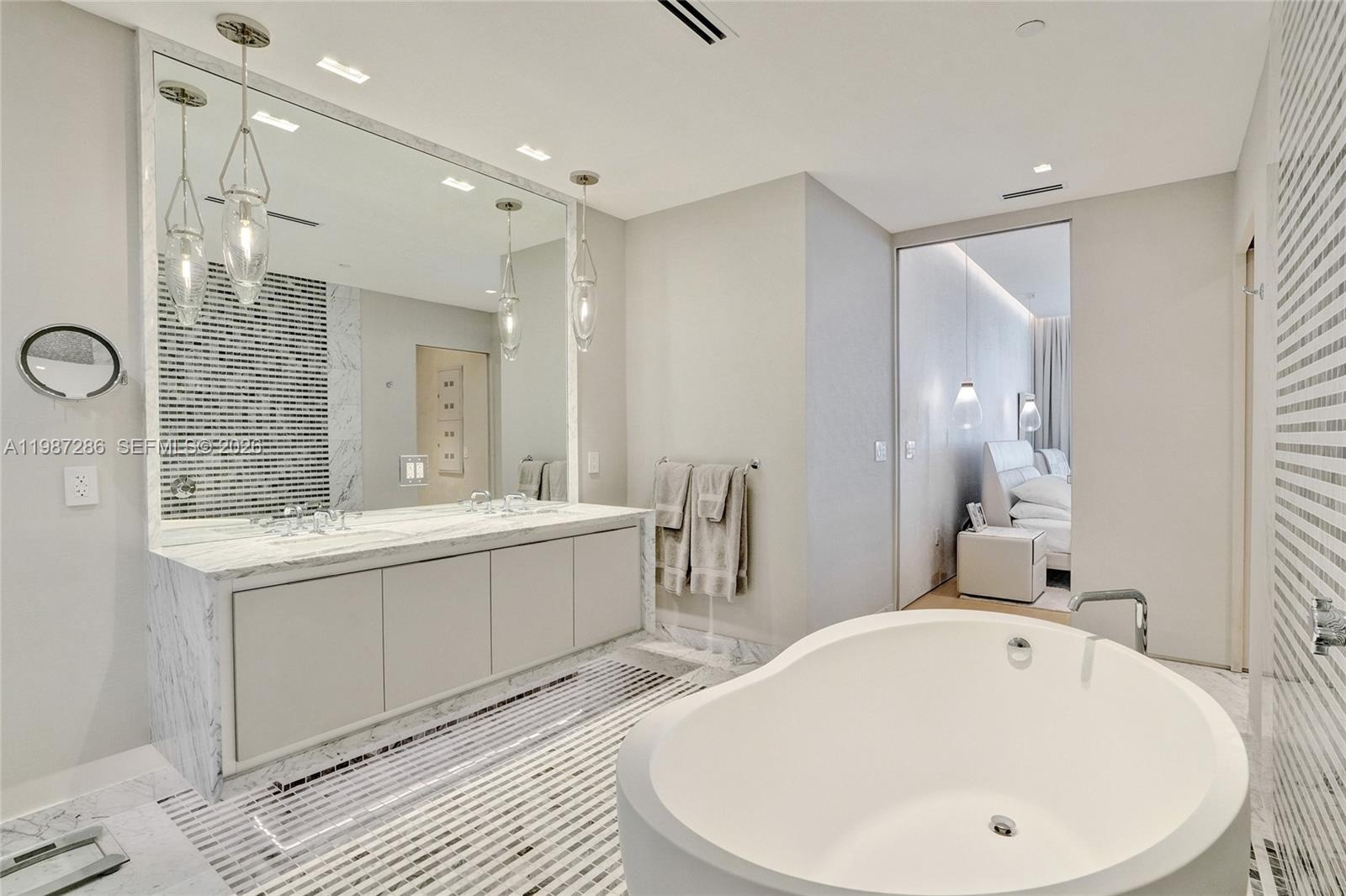 Breathtaking 180 degree views of the open bay, Downtown Miami skyline, and the Atlantic Ocean define this exceptional residence at Elysee Miami.