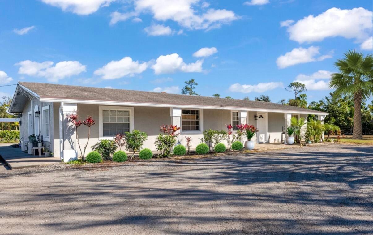 Exceptional multi-income equestrian investment opportunity south of Okeechobee Blvd. This cleared, fully usable property allows you to develop a premier horse facility while generating immediate cash flow. The residence is converted into four income-producing units, currently bringing in $6,000+ per month. Ideal for barns, arena, paddocks, boarding, or agricultural use. A 40' x 60' pole barn offers conversion potential, and an RV hookup adds flexibility. Major upgrades include a newer water system and updated septic. Build out a barn and equestrian setup for an additional $10,000+ monthly income potential. Rare combination of income, land, and upside in a prime location.