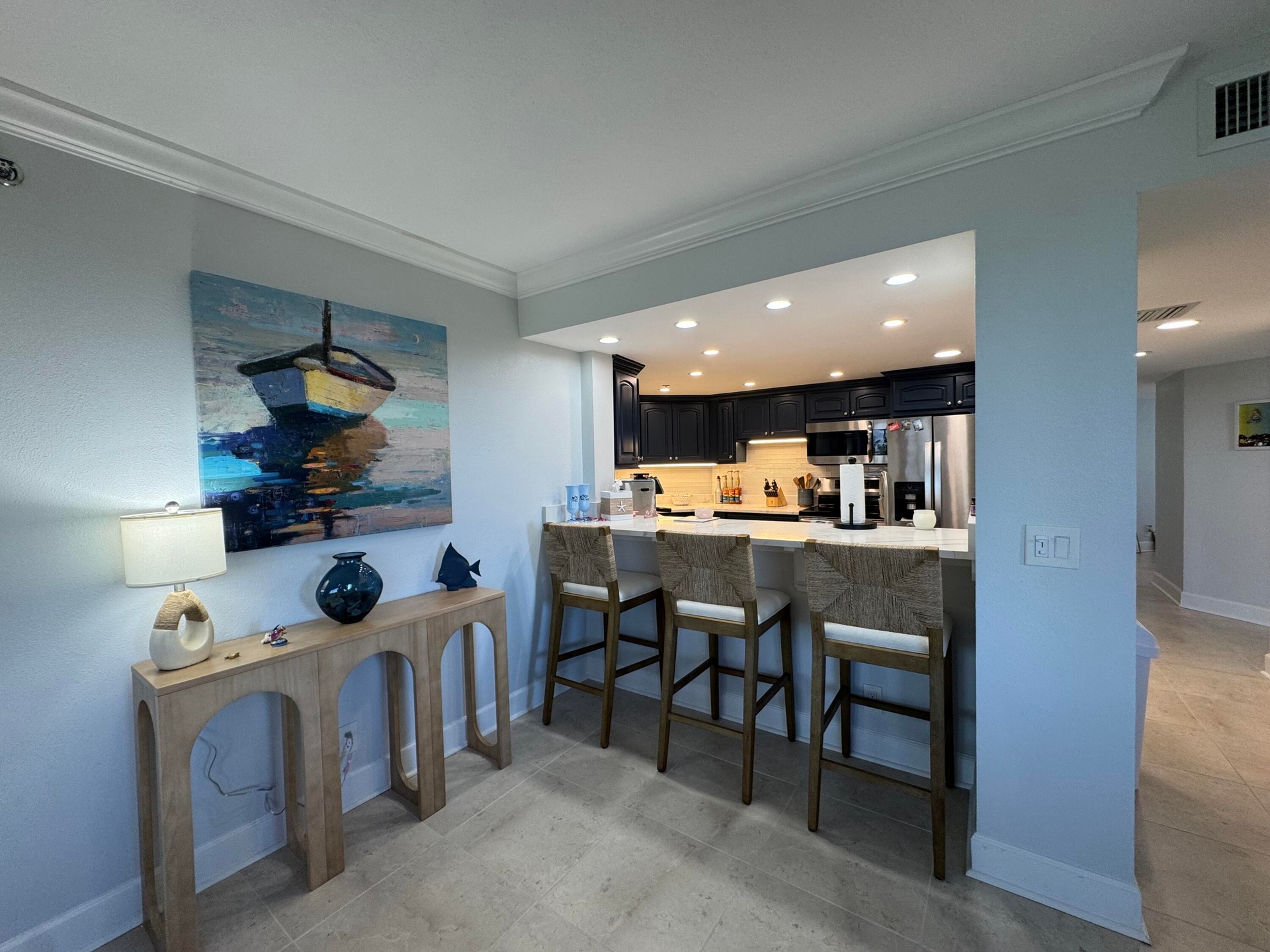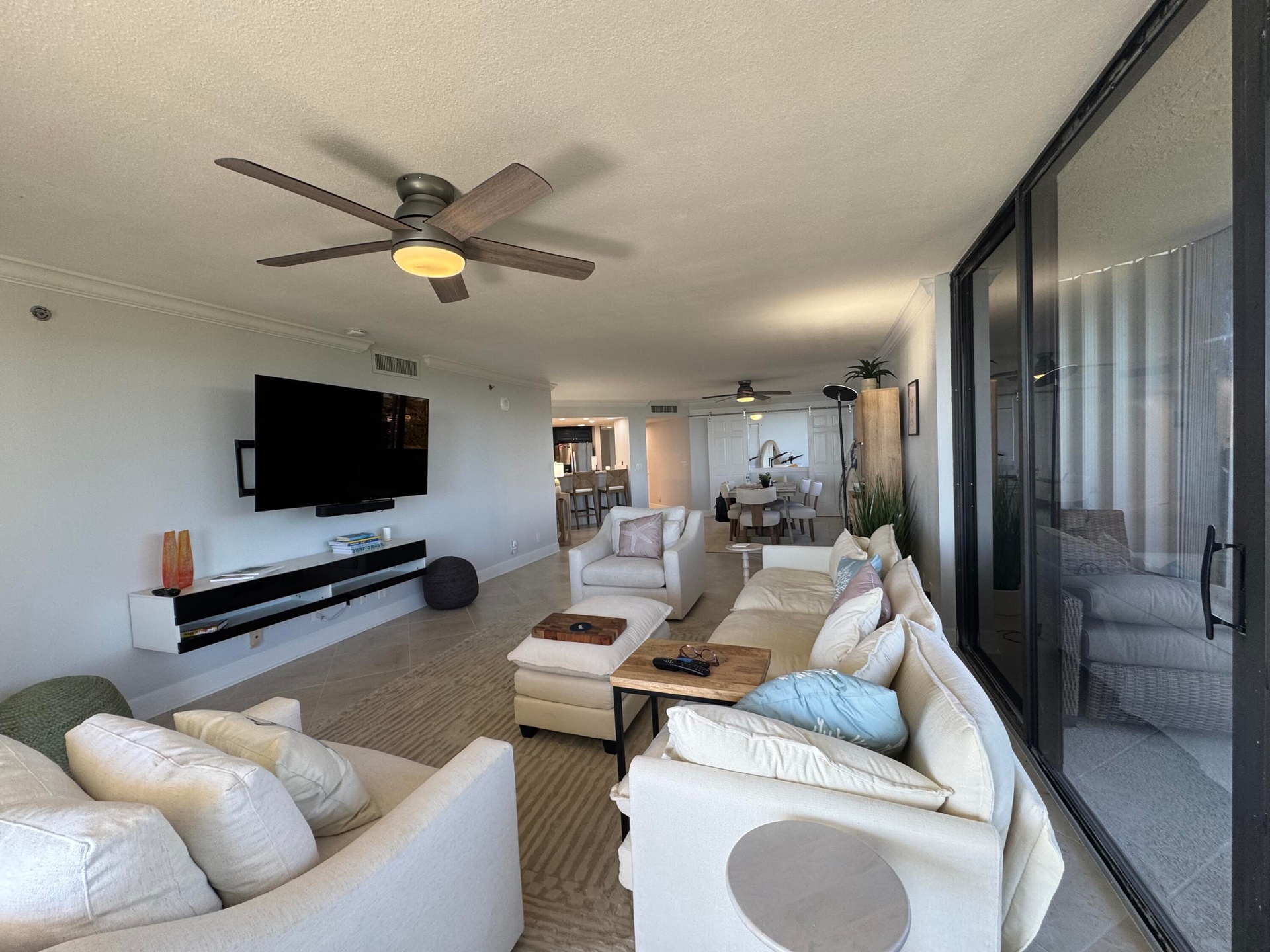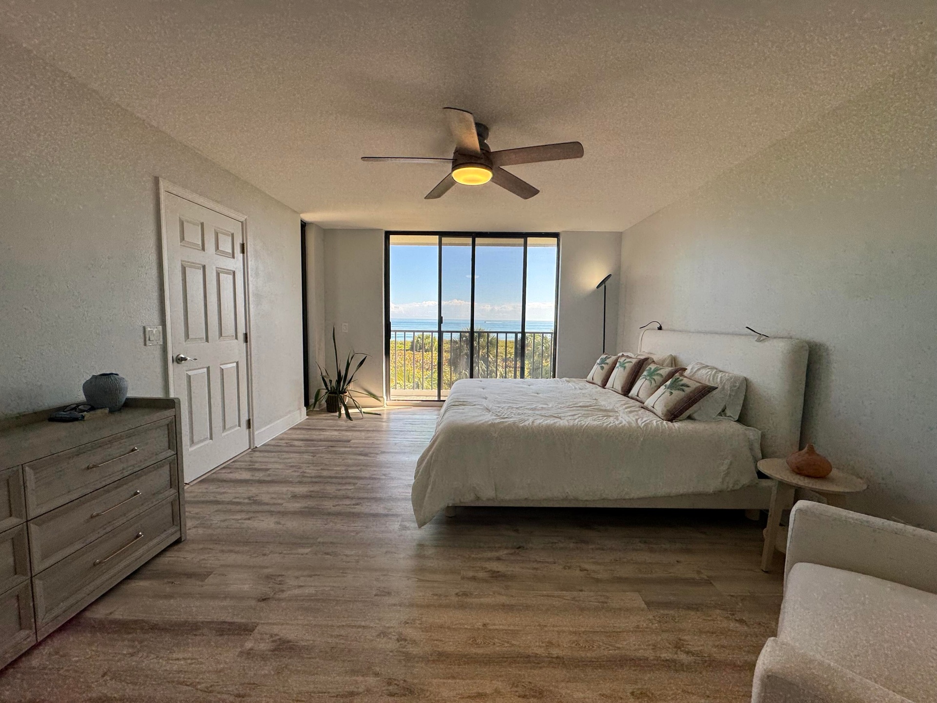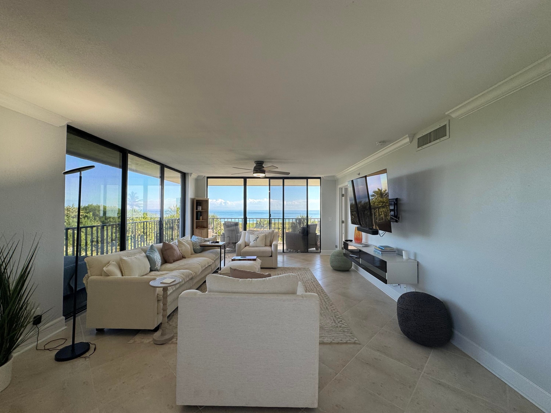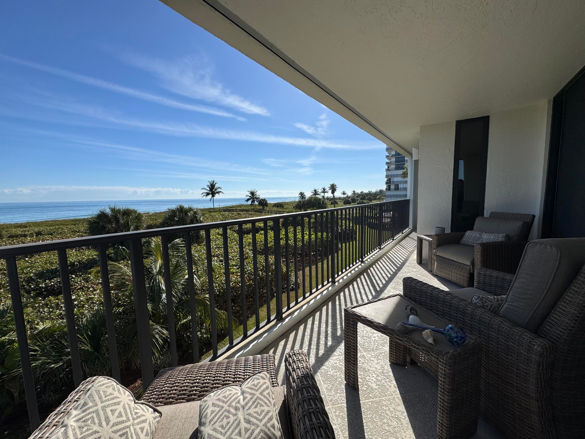 New Year, New Life Experiences and Luxury is here! Oceanfront living at its finest! Corner end unit with ocean views and privacy. Spacious living area , Garage and Carport included. Beautifully updated and fully furnished with comfort and serenity. Guests can enjoy privacy as bedrooms are split from Master. Laundry room, entry hall for a relaxing walk into this lovely 3 Bedroom. 3rd guest bedroom office and murphy bed for the occasional guest. Large balcony for entertaining. King in Master, queen in bedroom 2, queen murphy bed in office/bedroom 3. All new furniture, Bathrooms new with marble tile, office has barn doors that open to view ocean while working from home. Seasonal or Annual rental. Large laundry room for added convenience. Kitchen all new fully equipped. Very well equipped with towels, beach chairs, Shibumi beach shade. Silverware, clad pots/pans, hencles knives, new dishware, glasses etc.. Just move right in and relax.... Call me today for a private showing.