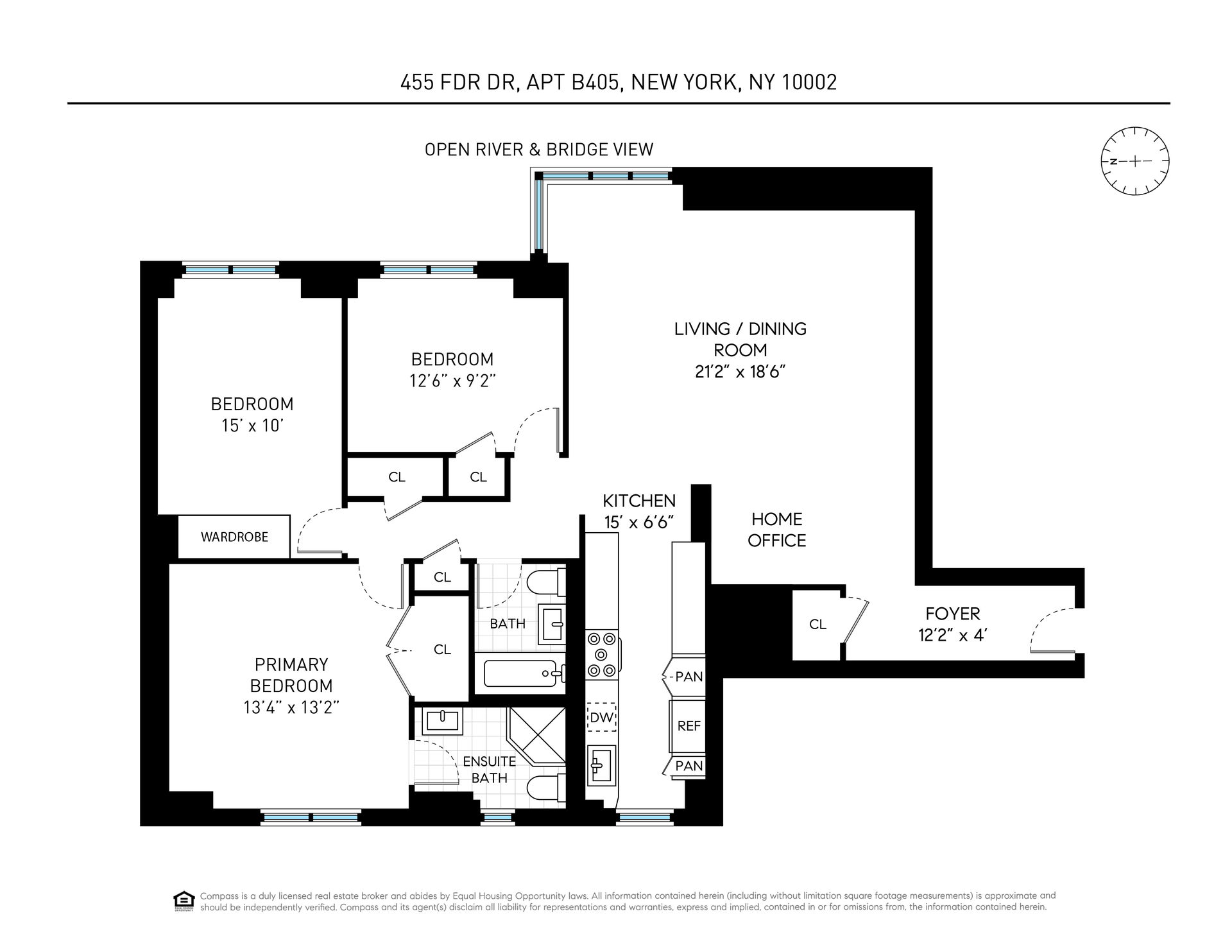 Welcome home to Residence B405 at 455 FDR Drive, a stunningly renovated three bedroom, two bathroom sanctuary offering breathtaking open views of the Williamsburg Bridge and the East River.