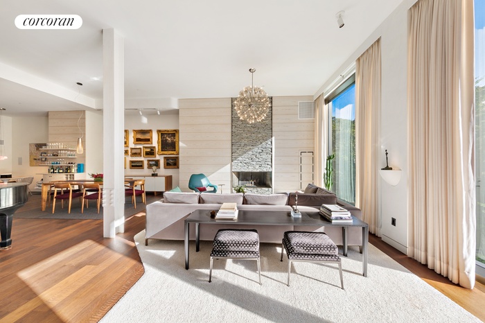 A well-proportioned entry gallery leads to the impressive 28 X 23 double height "Great Room" punctuated by a handsome fireplace and 12" floor to ceiling walls of glass onto Gramercy Park. This expansive south facing sun-pierced room provides ample space for separate living and dining areas. The marvelously spacious custom windowed kitchen adjacent the living space includes a large center island and additional space for casual dining. Beyond the living space, a separate hall leads to three bedroom suites each with their own baths distinguished by Waterworks fixtures and marble tiling throughout. The corner primary bedroom suite includes a new over-sized bath with double sinks, stall shower and soaking tub and custom walk-in closet. A second bedroom suite is quietly tucked away off the entry gallery. The third bedroom suite doubles as a comfortable office overlooking Gramercy Park and offers a cozy contrast to the larger living space. A powder room off the entry and laundry closet complete the layout. Finishes include hardwood flooring, central air-conditioning, custom window treatments and custom lighting.