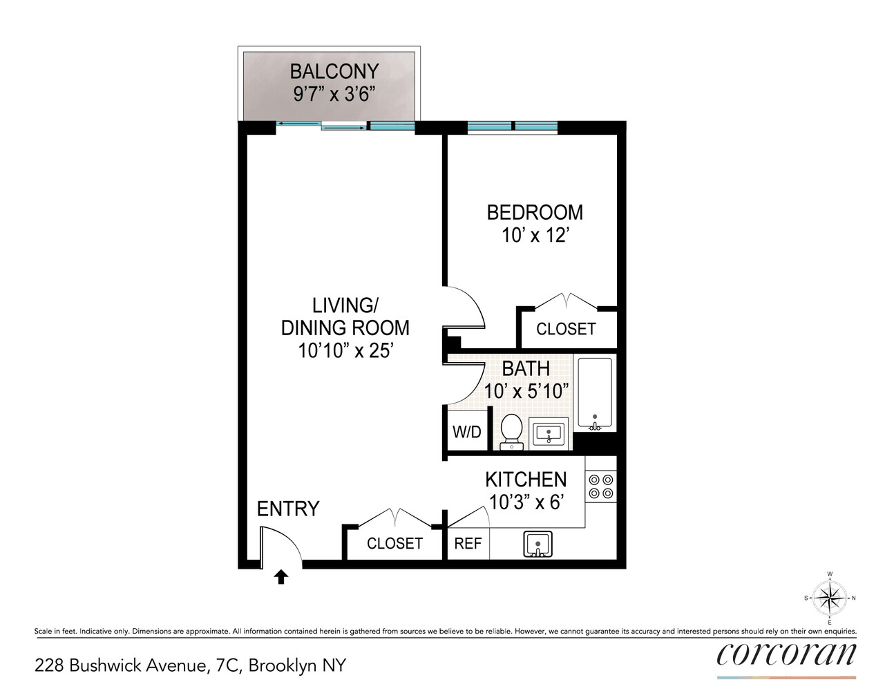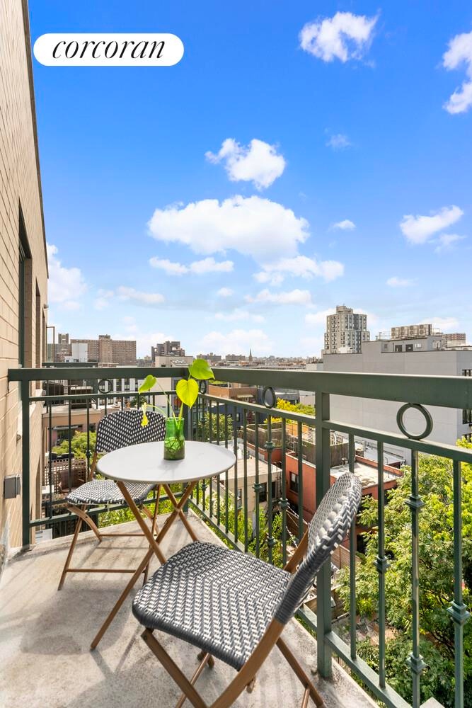 Located on the top floor of this boutique Williamsburg condo #7C offers gracious space and stunning views of downtown Manhattan including the Freedom Tower from the living room, bedroom and balcony. Positioned at the rear of the building the apartment allows for quiet relaxation and stunning sunsets.