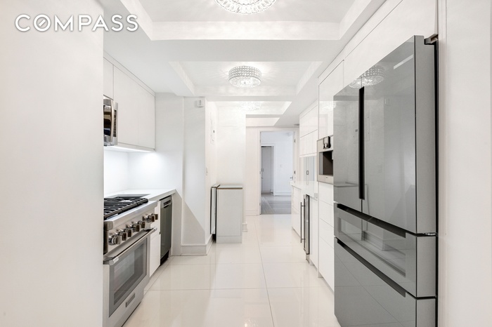 Just Listed, Residence 12C is the only two bedroom home of its kind in the building, and is being offered for sale for the very first time. A wall of west-facing windows floods the home with natural light, creating a warm and inviting atmosphere all day long. The newly renovated, generously sized Porcelanosa kitchen blends beauty and functionality, offering exceptional storage and expansive counter space. Outfitted with premium stainless steel appliances - including Bosch, Gaggenau, and Thermador, it also features a discreet under-counter wine cooler.