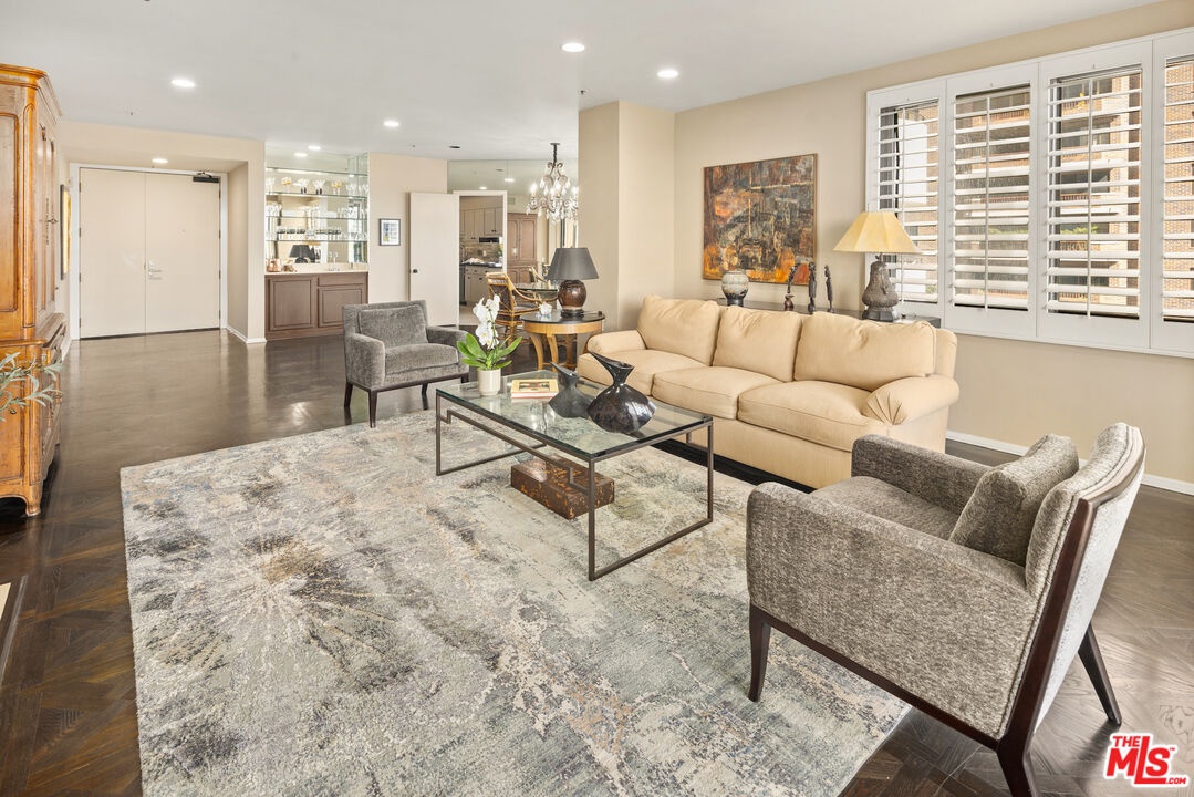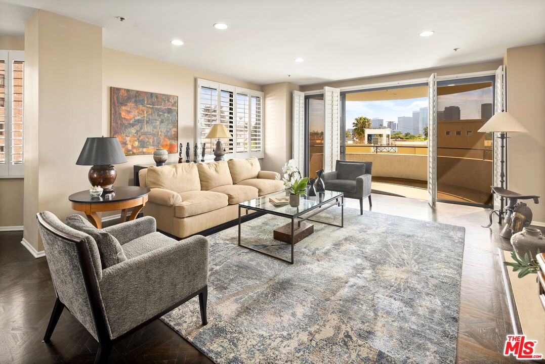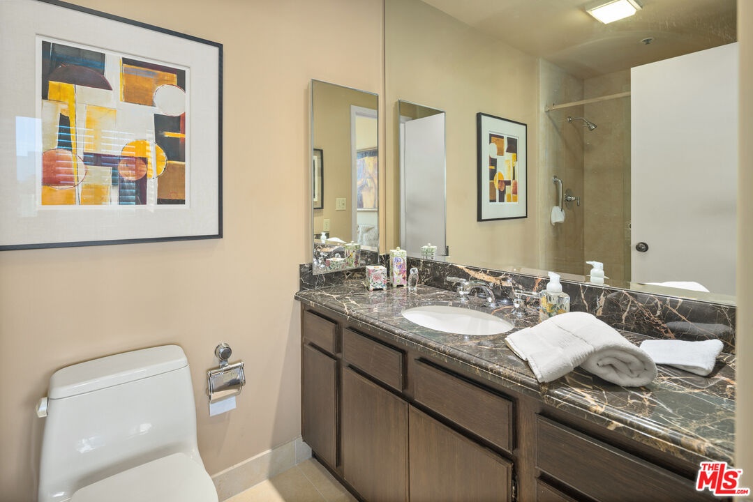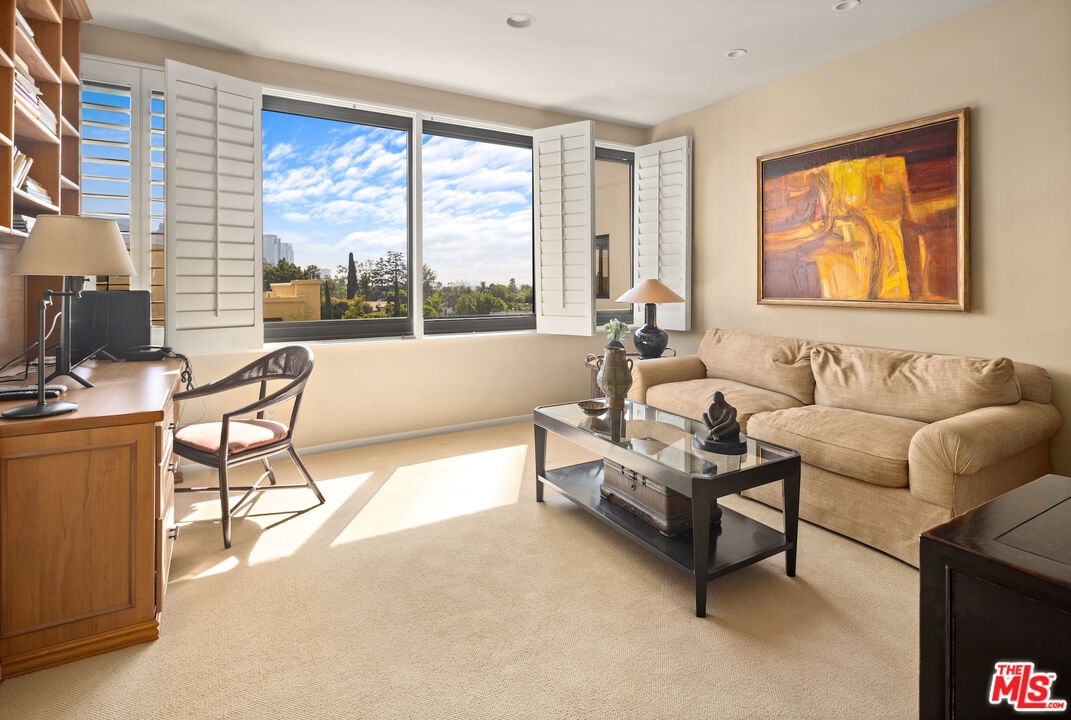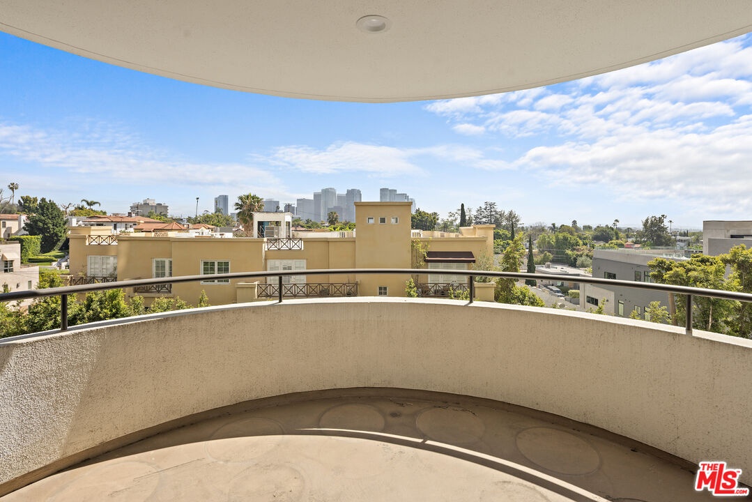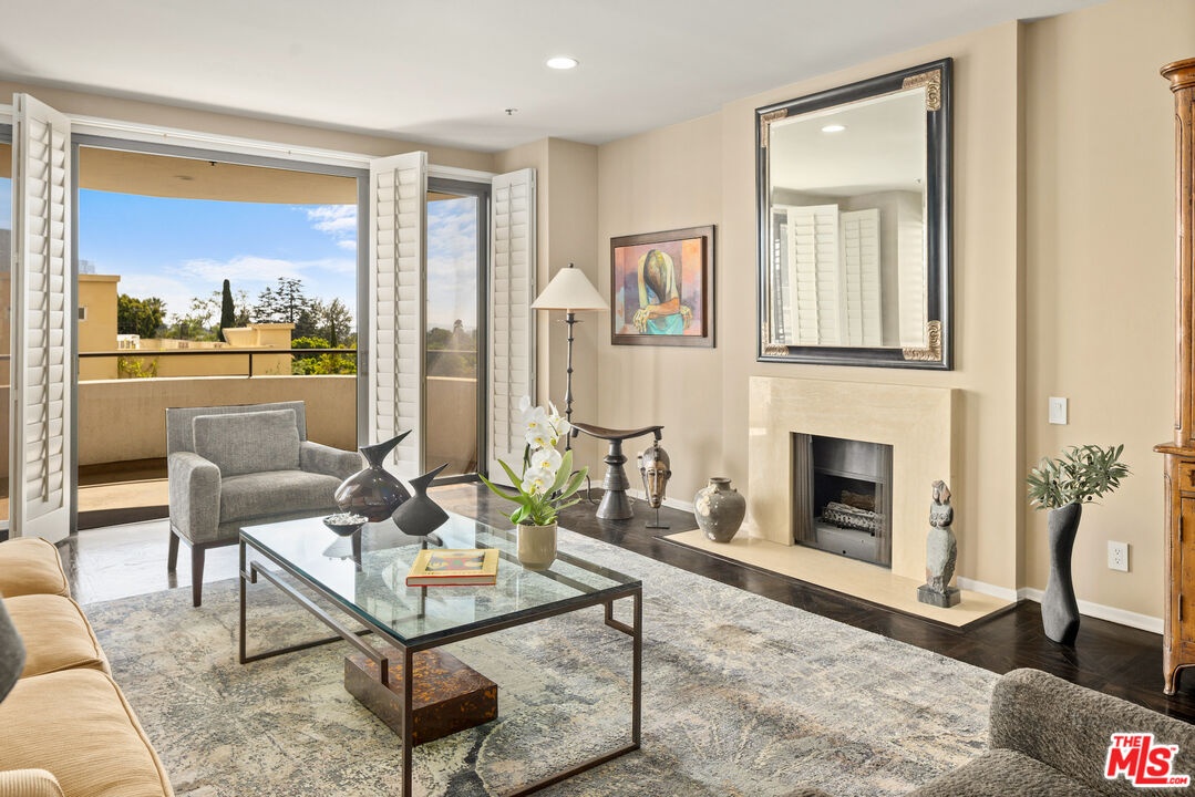 This refined 1,787-square-foot residence at the distinguished Ten-Five-Sixty presents an elevated approach to Wilshire Corridor living. Offering two bedrooms and two and a half baths, the condominium provides a serene sanctuary above the city's rhythms. The building's recently renovated lobby sets an elegant tone, while the residence itself unfolds through handsome double doors into a thoughtfully reimagined kitchen. Granite countertops, stone tile flooring, and a Sub-Zero refrigerator anchor the space, which flows seamlessly to a dedicated laundry room with generous storage. The living and dining areas embrace natural light through expansive windows beneath a soaring ceiling. Original custom wood-patterned floors add warmth and character, while a fireplace embellishes the room. Step onto the private balcony to discover tree-canopy views framed by the Century City skyline, an ideal setting for morning coffee or an afternoon with a compelling book. The primary suite impresses with its exceptional dressing area, featuring an enviable array of custom closets and a well-appointed ensuite bath. The second bedroom, equally fitted with an ensuite bath and built-in cabinetry, adapts beautifully as a guest room, office, or private study. Residents of Ten-Five-Sixty enjoy comprehensive white-glove services: 24-hour valet and concierge, a fitness center, pool and spa, an entertaining lounge with catering kitchen, EV charging, two assigned parking spaces, and dedicated storage. HOA dues encompass all amenities plus water, gas and waste service. The location places you moments from the dining, shopping, and cultural offerings of Westwood, Brentwood, Santa Monica, and Beverly Hills. Here, attentive service meets sophisticated living, with views that captivate from sunrise to the glittering evening skyline.