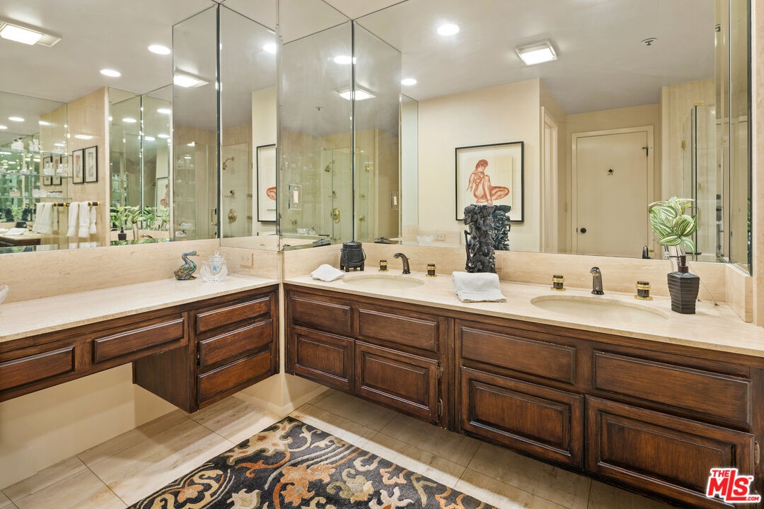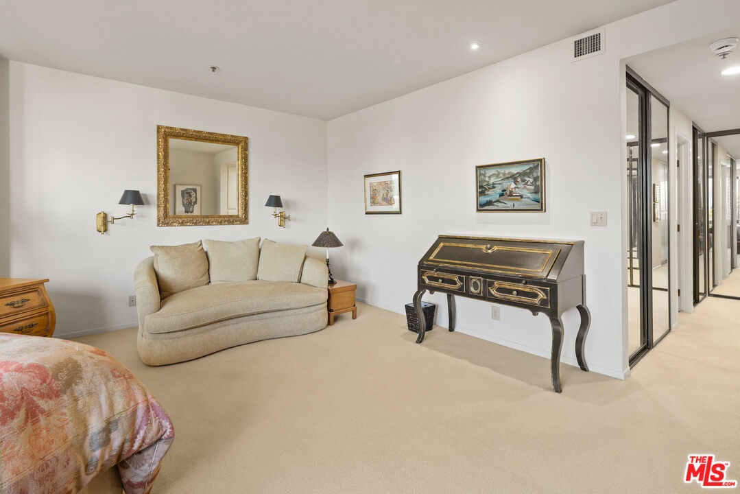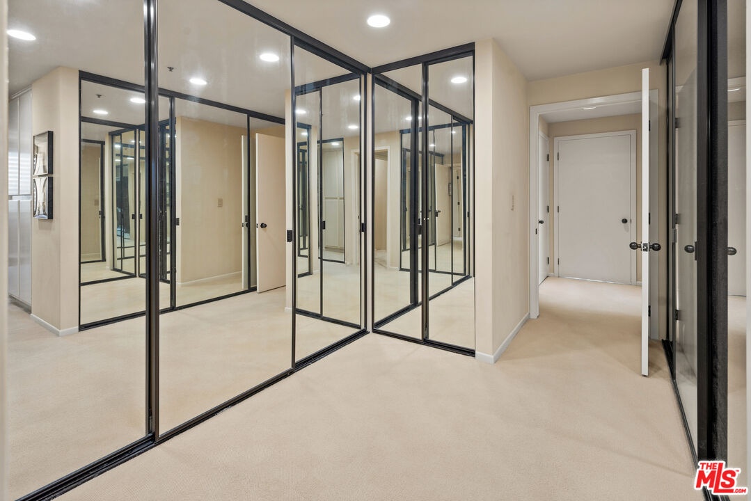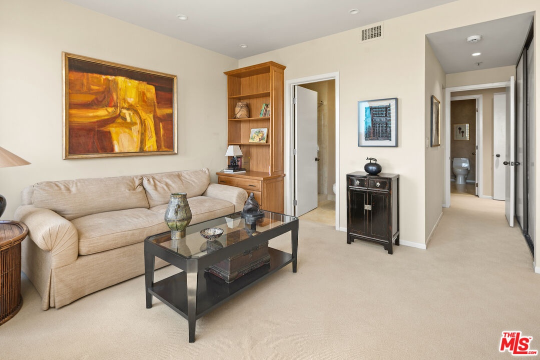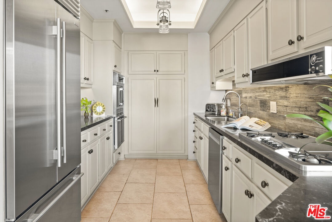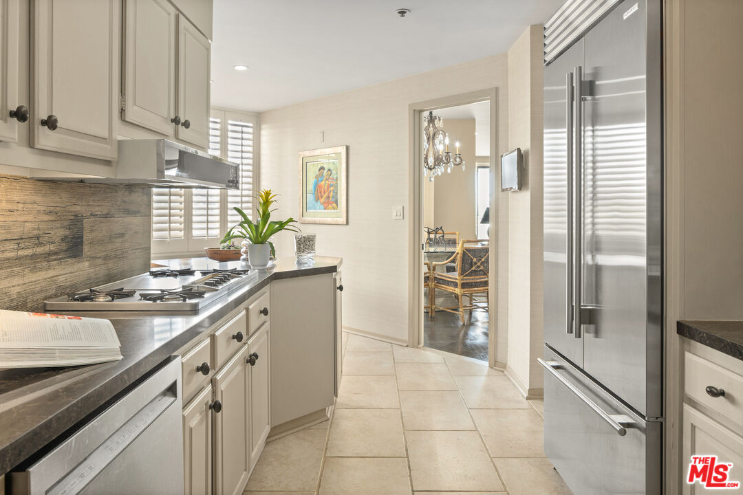 This refined 1,787-square-foot residence at the distinguished Ten-Five-Sixty presents an elevated approach to Wilshire Corridor living. Offering two bedrooms and two and a half baths, the condominium provides a serene sanctuary above the city's rhythms. The building's recently renovated lobby sets an elegant tone, while the residence itself unfolds through handsome double doors into a thoughtfully reimagined kitchen. Granite countertops, stone tile flooring, and a Sub-Zero refrigerator anchor the space, which flows seamlessly to a dedicated laundry room with generous storage. The living and dining areas embrace natural light through expansive windows beneath a soaring ceiling. Original custom wood-patterned floors add warmth and character, while a fireplace embellishes the room. Step onto the private balcony to discover tree-canopy views framed by the Century City skyline, an ideal setting for morning coffee or an afternoon with a compelling book. The primary suite impresses with its exceptional dressing area, featuring an enviable array of custom closets and a well-appointed ensuite bath. The second bedroom, equally fitted with an ensuite bath and built-in cabinetry, adapts beautifully as a guest room, office, or private study. Residents of Ten-Five-Sixty enjoy comprehensive white-glove services: 24-hour valet and concierge, a fitness center, pool and spa, an entertaining lounge with catering kitchen, EV charging, two assigned parking spaces, and dedicated storage. HOA dues encompass all amenities plus water, gas and waste service. The location places you moments from the dining, shopping, and cultural offerings of Westwood, Brentwood, Santa Monica, and Beverly Hills. Here, attentive service meets sophisticated living, with views that captivate from sunrise to the glittering evening skyline.
