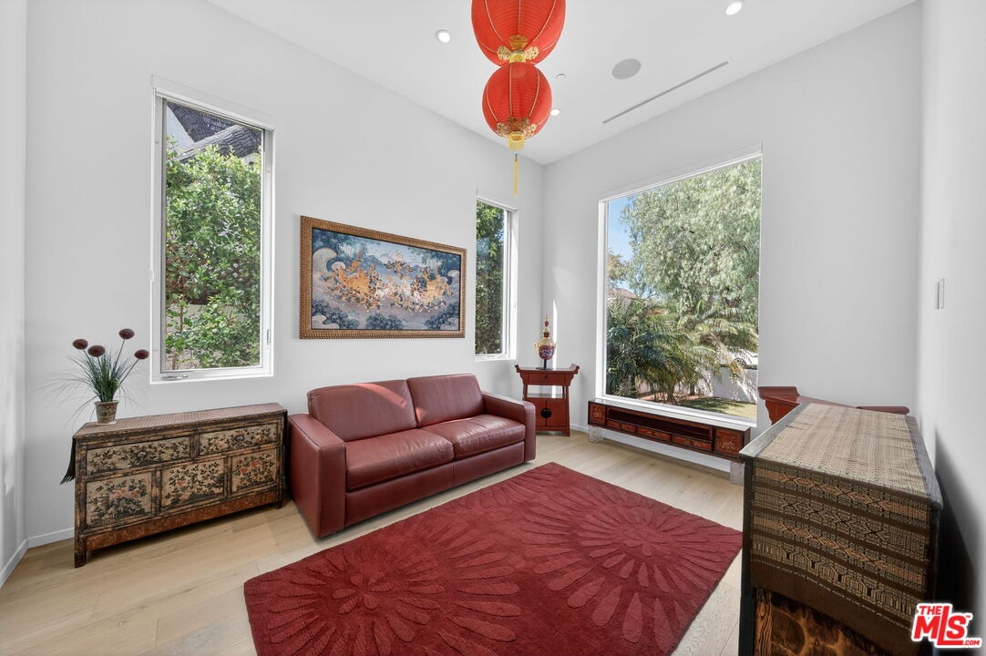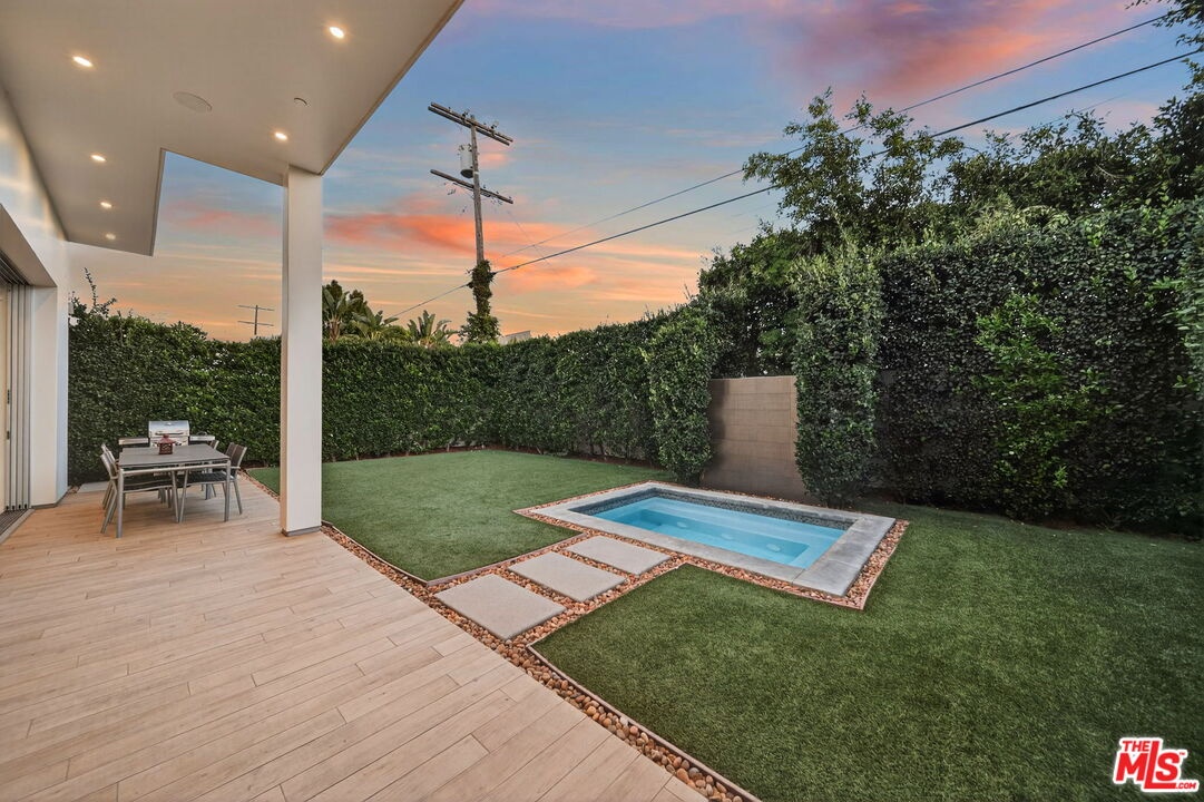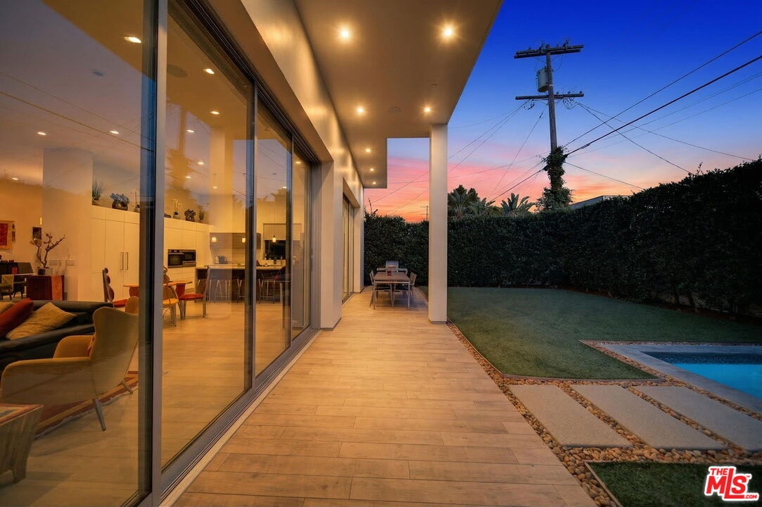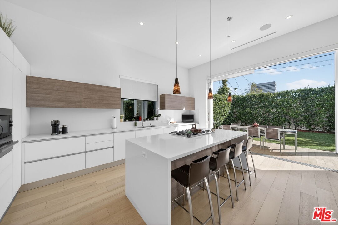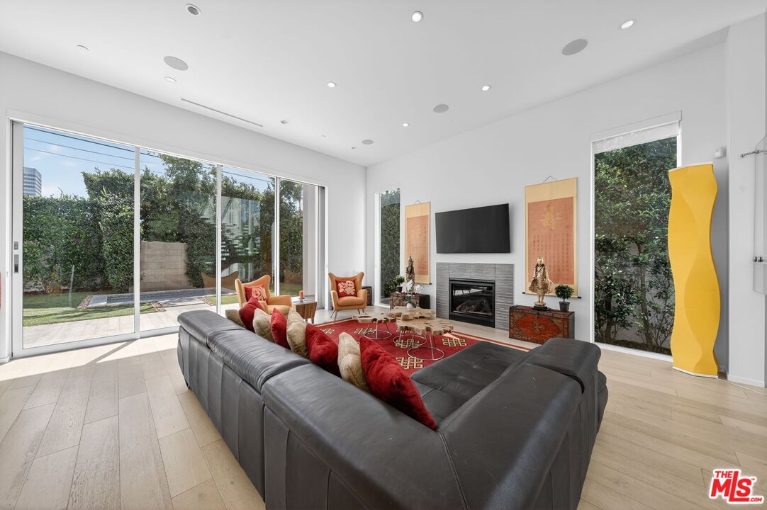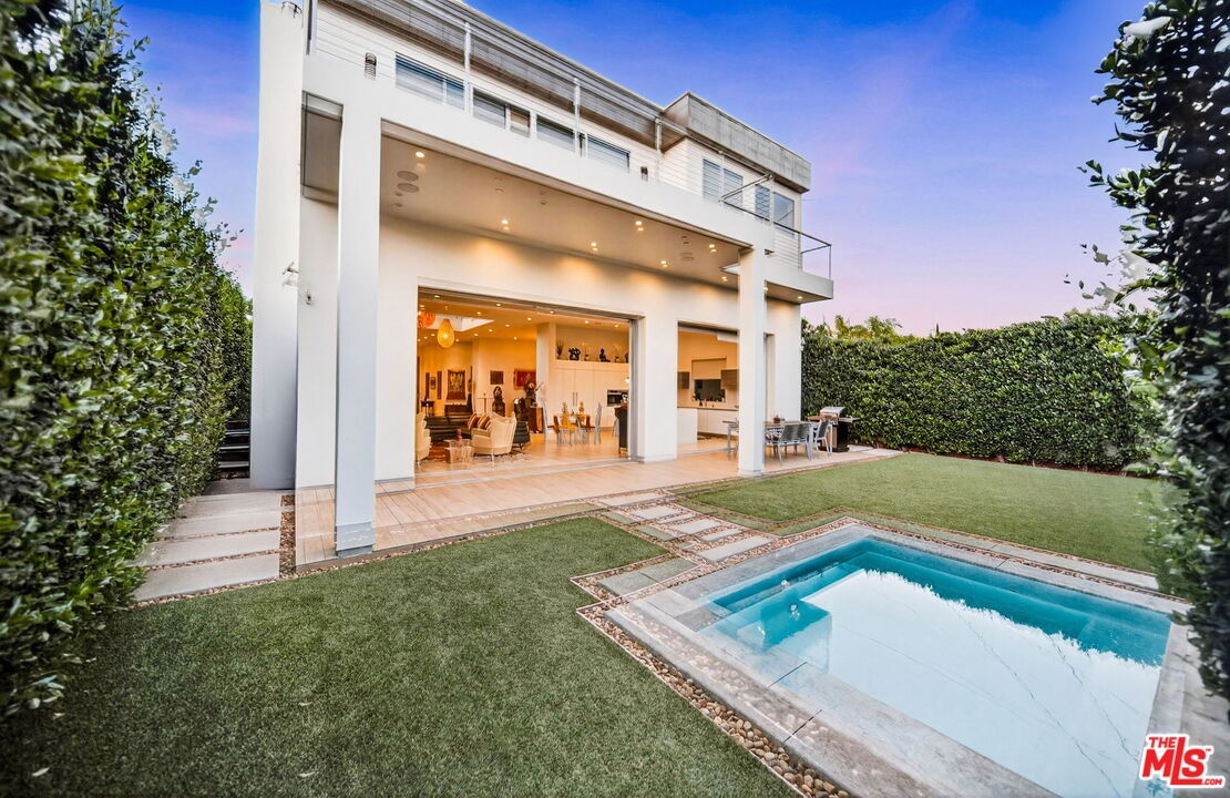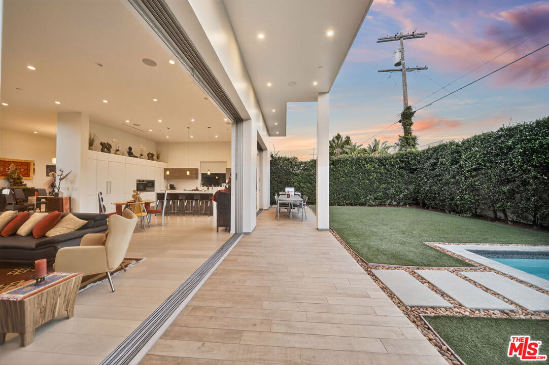 Stunning Contemporary Architectural in Prime Beverly-Grove Location. Built in 2014 with exceptional craftsmanship and the finest materials, this striking 2-story contemporary residence offers 4 bedrooms and 4 bathrooms, blending modern design with effortless indoor-outdoor living. Dramatic 12-foot ceilings, expansive floor-to-ceiling pocket sliding glass doors fully retract to open the entire back of the house, creating a true indoor-outdoor living experience ideal for entertaining. Luxury wide-plank, solid hardwood floors throughout. A stunning architectural focal point, the floating staircase is set within a breathtaking 2-story atrium, enhanced by designer pendant lighting by David Trubridge, delivering both elegance and architectural presence to the space. The chef's kitchen is a showpiece, featuring a professional Scavolini designed cabinetry, premium Miele appliances, and a large center island. Open to the expansive living room with a gas fireplace, the space is thoughtfully designed for both everyday living and seamless entertaining. Pianca custom Italian closets are featured throughout, offering refined and functional storage. The primary suite serves as a private retreat, complete with a spa-inspired bathroom featuring a soaking tub, glass-enclosed shower and custom Adatto Casa Italian cabinetry. Enjoy multiple outdoor living spaces, including north-facing terraces with views of the Hollywood Hills and a south-facing terrace overlooking the Wilshire corridor. A private jacuzzi splash pool enhances the outdoor experience, ideal for relaxing or hosting. Additional features include a 2-car attached garage and modern systems throughout. Ideally located just moments from The Grove, Beverly Center, 3rd Street shops, the Academy Museum, LACMA, the Petersen Automotive Museum, and the new Fairfax/Wilshire Metro Station placing the very best of Los Angeles at your doorstep.