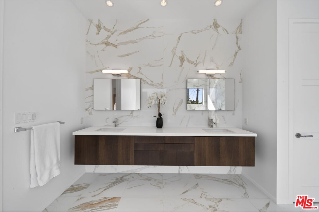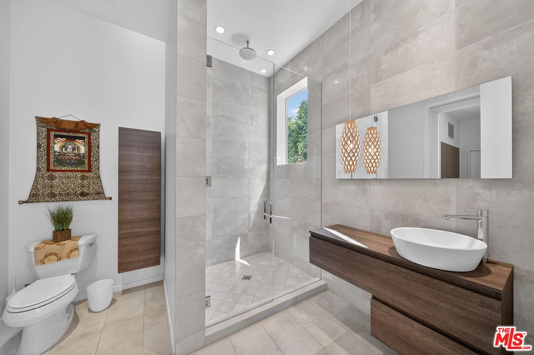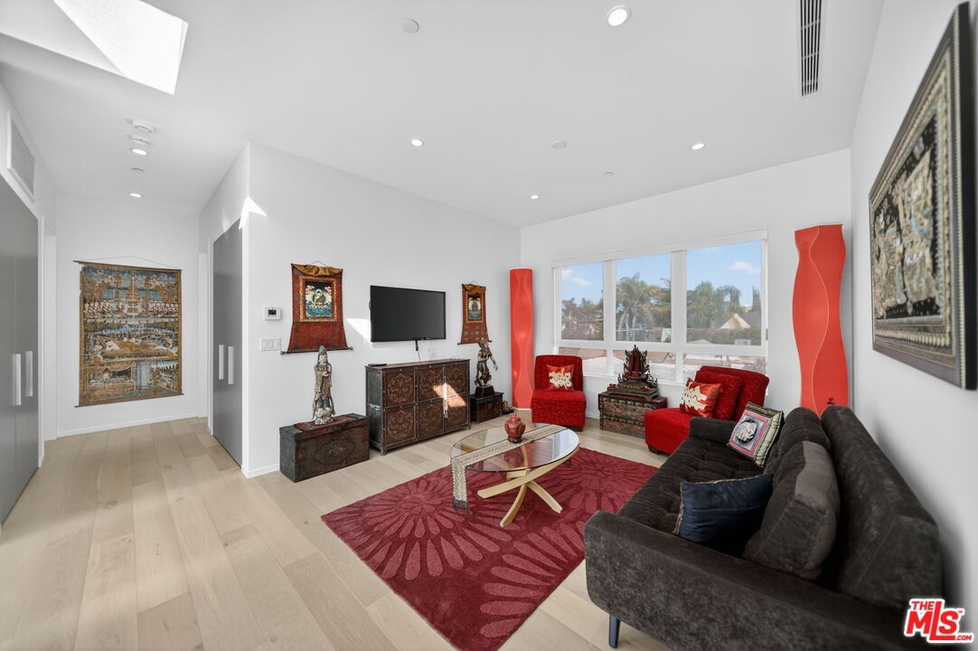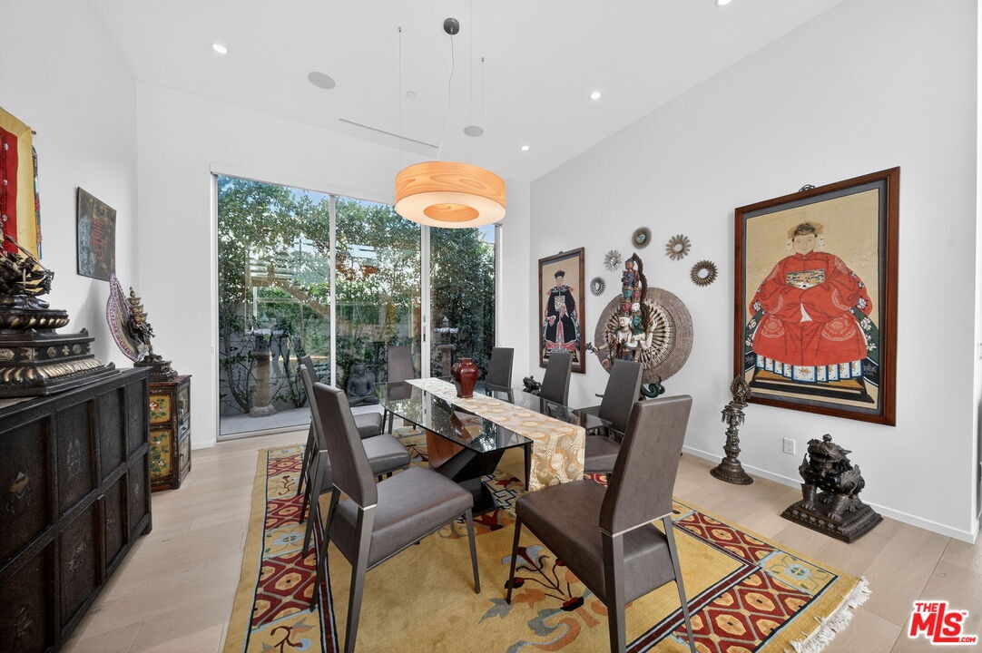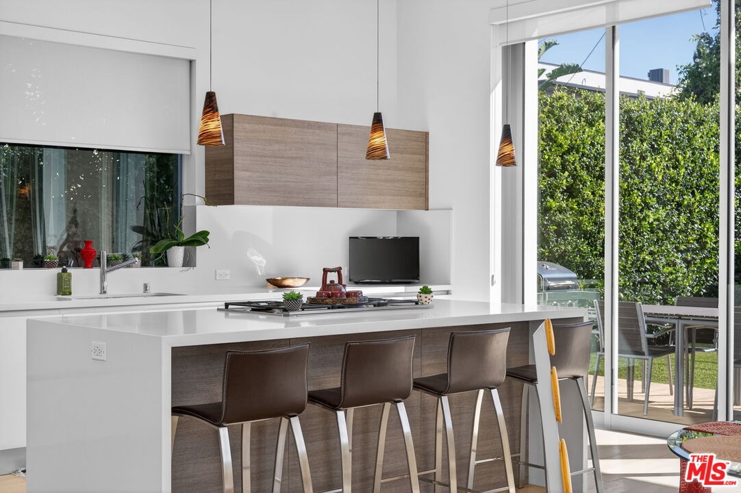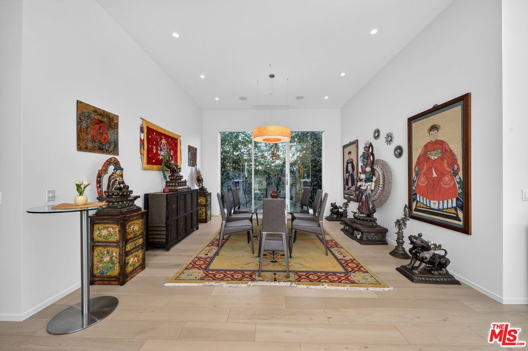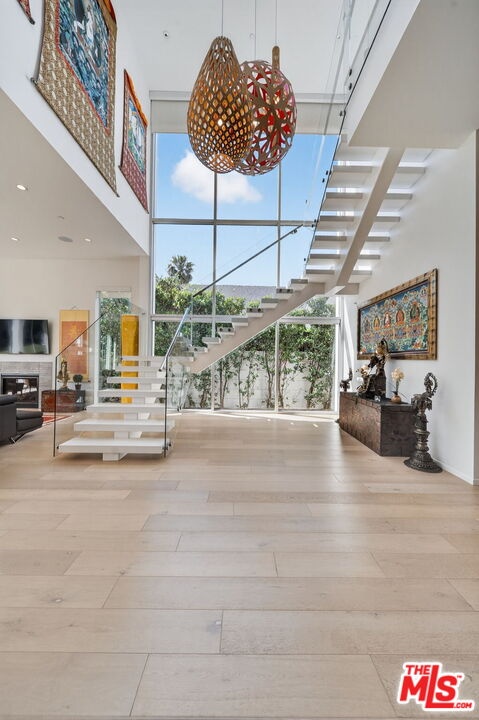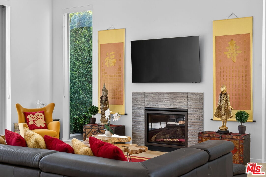 Stunning Contemporary Architectural in Prime Beverly-Grove Location. Built in 2014 with exceptional craftsmanship and the finest materials, this striking 2-story contemporary residence offers 4 bedrooms and 4 bathrooms, blending modern design with effortless indoor-outdoor living. Dramatic 12-foot ceilings, expansive floor-to-ceiling pocket sliding glass doors fully retract to open the entire back of the house, creating a true indoor-outdoor living experience ideal for entertaining. Luxury wide-plank, solid hardwood floors throughout. A stunning architectural focal point, the floating staircase is set within a breathtaking 2-story atrium, enhanced by designer pendant lighting by David Trubridge, delivering both elegance and architectural presence to the space. The chef's kitchen is a showpiece, featuring a professional Scavolini designed cabinetry, premium Miele appliances, and a large center island. Open to the expansive living room with a gas fireplace, the space is thoughtfully designed for both everyday living and seamless entertaining. Pianca custom Italian closets are featured throughout, offering refined and functional storage. The primary suite serves as a private retreat, complete with a spa-inspired bathroom featuring a soaking tub, glass-enclosed shower and custom Adatto Casa Italian cabinetry. Enjoy multiple outdoor living spaces, including north-facing terraces with views of the Hollywood Hills and a south-facing terrace overlooking the Wilshire corridor. A private jacuzzi splash pool enhances the outdoor experience, ideal for relaxing or hosting. Additional features include a 2-car attached garage and modern systems throughout. Ideally located just moments from The Grove, Beverly Center, 3rd Street shops, the Academy Museum, LACMA, the Petersen Automotive Museum, and the new Fairfax/Wilshire Metro Station placing the very best of Los Angeles at your doorstep.