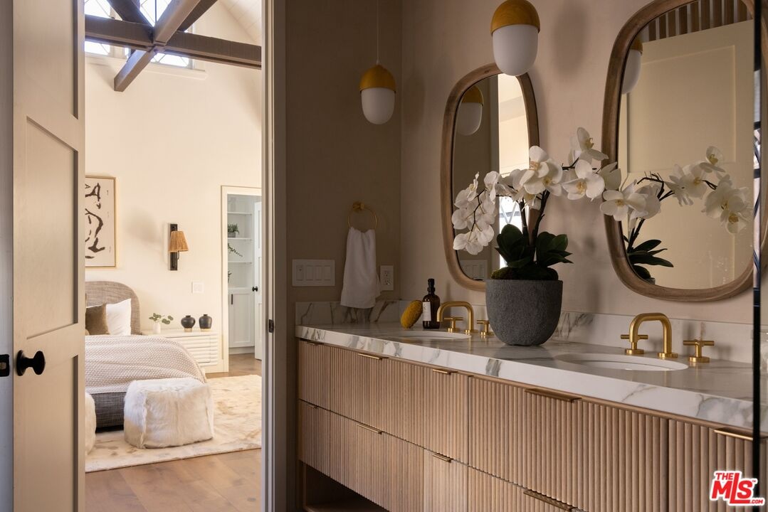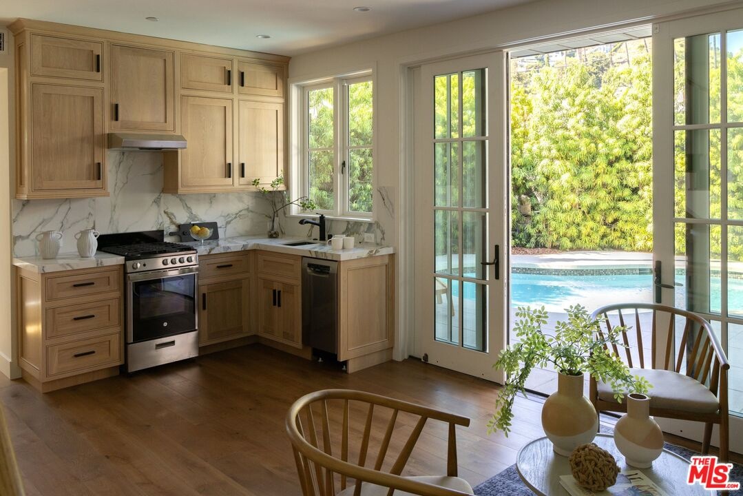 An exceptional remodel of a one-of-a-kind residence. Located in the lovely, and well located Sunset Square HPOZ, close to everything. This Tudor-esque home is replete with charming vintage character, but updated in a very current contemporary style. Infrastructure 100% new. Amazing 2 story guest house (legal ADU and included in square footage), finished to the same level as the main residence. The core of the house, originally a barn when built in 1913, predates most of the neighborhood. That barn was then expanded to a home during the 1920's Los Angeles construction boom, and has been carefully maintained - and expanded again for the 21st Century. Sited on a wide lot, there is ample outdoor living space and a new pool. Unique and charming! Parking is equipped with a Tesla charger.
