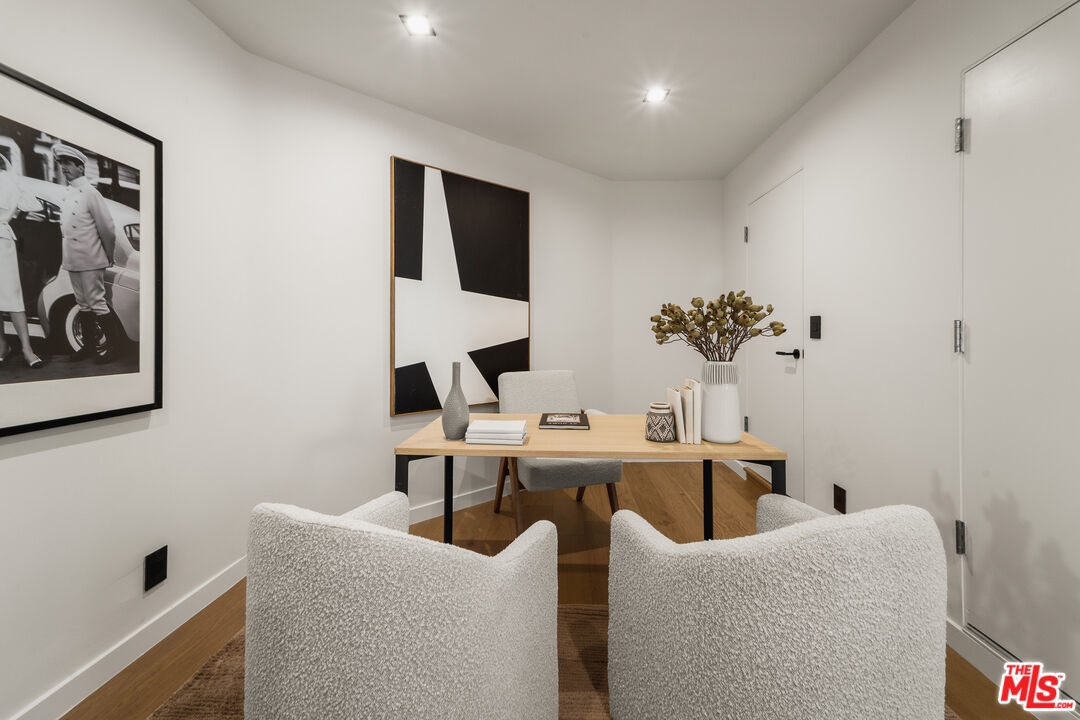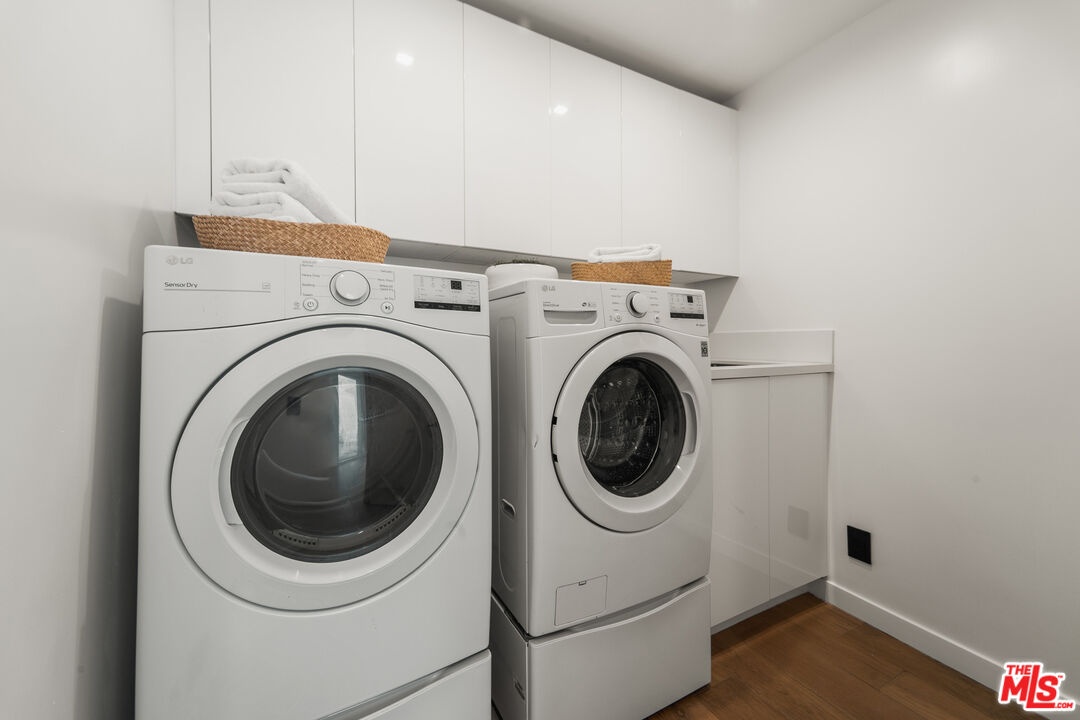 Meticulously renovated and masterfully reimagined, this exceptional modern residence in coveted Outpost Estates captures the essence of elevated Hollywood Hills living. Bathed in natural light, the main level features an expansive open-concept layout anchored by soaring 12-foot ceilings, seamlessly connecting the kitchen, dining, and living spaces--perfect for both refined entertaining and effortless everyday living. The chef's kitchen is a true showpiece, appointed with designer appliances, bespoke cabinetry, and striking Cosentino Dekton countertops. A chic powder room and a private guest suite with its own entrance complete the main floor, offering both versatility and comfort for visitors or extended stays. Upstairs, the stunning primary suite serves as a serene retreat, complete with direct access to one of two outdoor living spaces. Two additional en-suite bedrooms and a well-appointed laundry room complete the second level. At the pinnacle of the home, an expansive rooftop deck showcases sweeping canyon vistas and dazzling city-light views--an unforgettable backdrop for sunset gatherings or quiet evenings under the stars. A rare offering that seamlessly blends modern design, luxury finishes, and an unbeatable location.