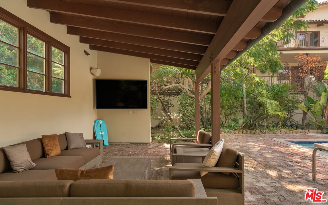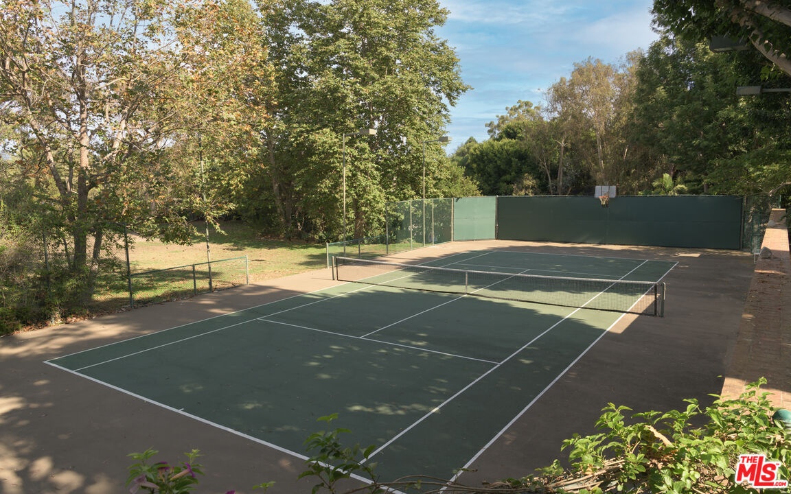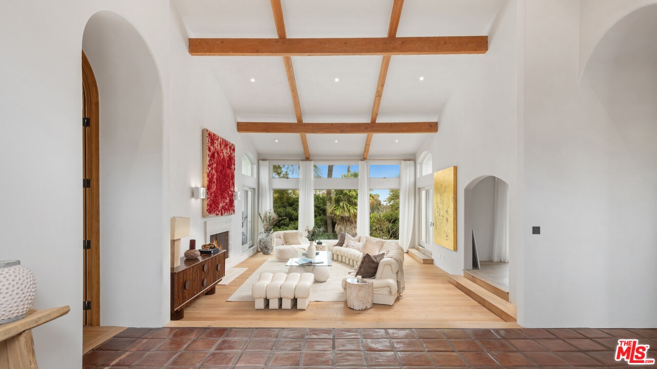 Nestled on one of Malibu's most prestigious streets, this gated estate offers an extraordinary blend of timeless Spanish architecture, refined interiors, and a resort-style outdoor lifestyle. Set on expansive grounds with a full-size tennis court, pool, and mature landscaping, the residence provides the rare opportunity to experience both elegance and comfort in one of Southern California's most sought-after coastal enclaves.The home is introduced by a broad stone motor court, lush gardens, and the classic silhouette of a Spanish-style villa with rustic clay tile rooflines. A graceful entryway opens to interiors that immediately set the tone: airy, light-filled, and designed for seamless indooroutdoor living. Inside, soaring vaulted ceilings with exposed wood beams pair with wide-plank oak floors and crisp white walls to create an atmosphere of modern coastal elegance. The formal living room features a dramatic fireplace, walls of glass that frame garden views, and an elegant wet bar with stone counters, perfect for entertaining. Multiple living and family rooms are each anchored by fireplaces and framed by oversized windows or French doors that open to terraces and gardens. Thoughtful details, from arched passageways to custom built-ins and rich wood accents, balance sophistication with a natural sense of ease.At the heart of the home is a chef's kitchen, outfitted with custom wood cabinetry, stone countertops, and a suite of professional-grade appliances including a La Canche range and Gaggenau appliances throughout. A large center island anchors the space, while vaulted ceilings and walls of glass flood the room with natural light. Direct access to the dining terrace makes al fresco meals effortless, and an adjacent casual lounge with fireplace provides the perfect spot to gather and unwind.The primary suite serves as a serene retreat, featuring vaulted ceilings, a fireplace, and expansive windows overlooking lush greenery. Its spa-inspired bathroom includes a freestanding soaking tub, an oversized glass shower, dual vanities, and a soothing neutral palette, while a custom walk-in closet offers generous storage with bespoke cabinetry. Additional bedroom suites open onto private balconies or garden terraces, offering comfort and privacy for family and guests alike.Designed for a true California lifestyle, the estate boasts multiple terraces, shaded loggias, and lounging areas that embrace Malibu's indooroutdoor flow. A grand staircase leads down to the expansive pool terrace, where a sparkling pool is surrounded by red-brick patios, framed by mature palms and verdant landscaping. A shaded cabana with lounge seating, television, and dining space makes the area ideal for entertaining day or night. Beyond the pool lies a rare amenity for Malibu, a full-size tennis court complete with lighting and additional lawn areas, creating a private playground for recreation and gatherings.Modern comforts include a premier Savant audio system with smart-home integration, a whole-house water filtration system, and thoughtful upgrades throughout.Privately tucked away yet only moments from Malibu's iconic beaches, shops, and dining, 7046 Grasswood Avenue is more than a residence, it is a lifestyle estate. From timeless architectural character to state-of-the-art amenities, this property offers the perfect blend of sophistication, comfort, and relaxed coastal living.