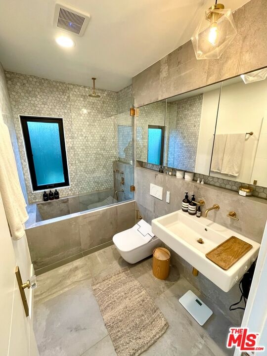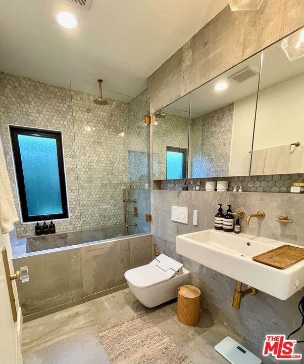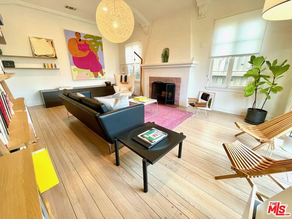 Form and function marry beautifully in this reimagined Spanish with a modern touch in the Helms Bakery neighborhood. An AIA award winning designer has created a masterpiece designed for an owner/user. You sense the quality of workmanship and materials the moment you enter the great room with indoor / outdoor flow and experience the sleek kitchen with island by Bulthaup and Miele appliances including a wok burner and a teppanyaki. Dine inside or open the french doors for outdoor entertaining with a gas fire pit. The living room features beamed ceilings maintaining the 1936 character with a stunning decorative fireplace. The three bedroom, two bathroom home's drama culminates at the primary suite with vaulted ceiling, an inviting private patio, 2 huge walk-in closets, with soaking tub and bidet toilet. With a separate two car garage this gated "smart" property delivers all you have been looking for in your next home across from Helms Bakery Complex, Apple, blocks from Platform, Ivy Metro Station, Downtown Culver City and bike paths. Find out why this vibrant neighborhood is THE place to live with great dining, shopping, jobs and recreation - right between downtown and the ocean.