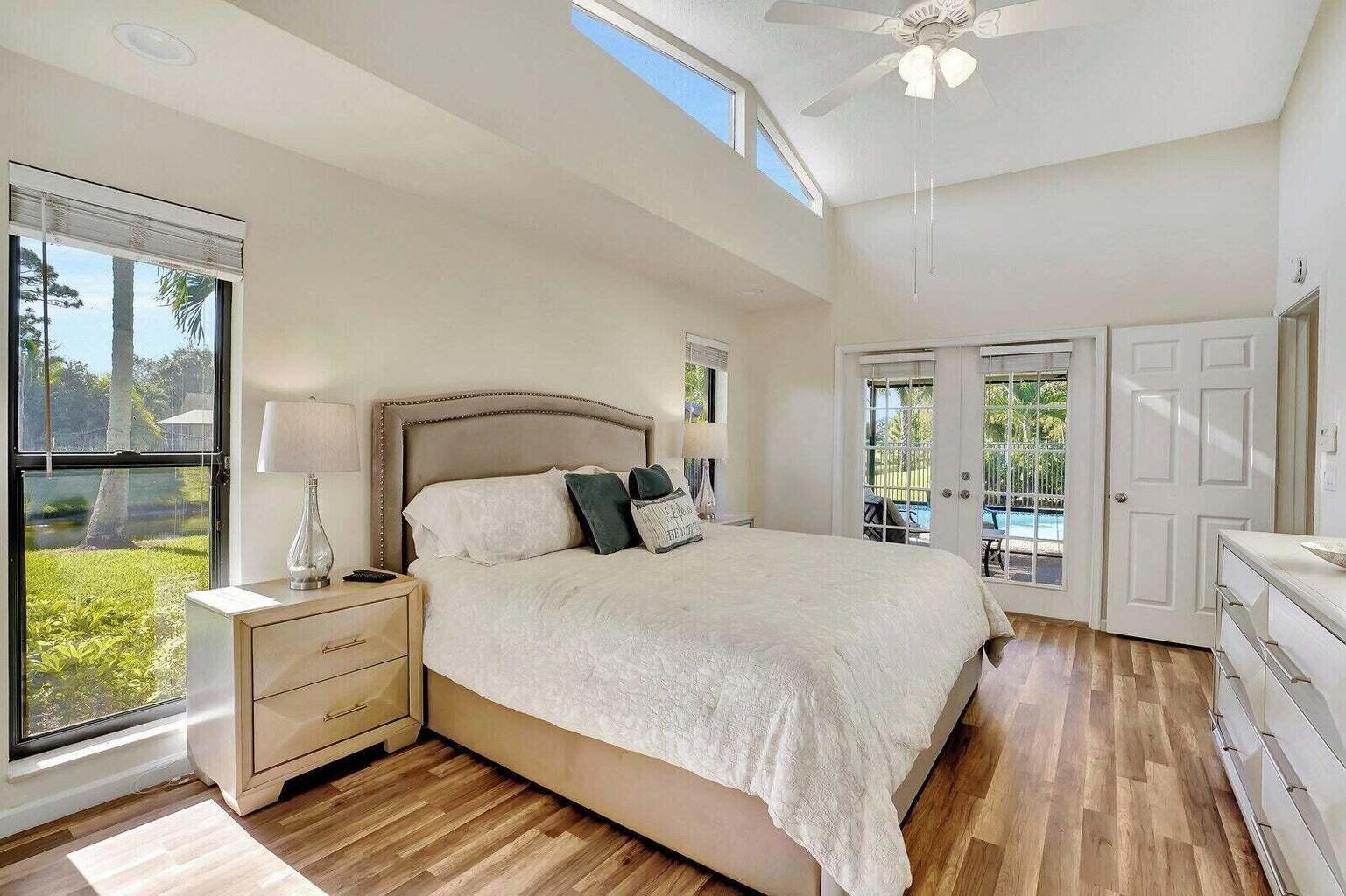 Enjoy this spacious ranch-style home situated on a desirable corner lot in the heart of Wellington. This fully furnished property offers comfort, convenience, and resort-style living. The home features a screened, heated in-ground pool, a covered patio, and multiple outdoor seating areas—perfect for relaxing or entertaining. The fully fenced backyard provides privacy and is ideal for pets. Inside, you'll find a well-equipped kitchen stocked with everything you need, along with fresh linens, high-speed WiFi, and flat-screen Smart TVs in every room. Sleeping arrangements include: A primary en-suite bedroom with a king-size bed A second bedroom with two queen beds A third bedroom with two full-size beds Located just minutes from Wellington's equestrian venues, shopping, and dining, this home offers easy access to everything the area has to offer. Additional features include: Water view Weekly pool service Weekly landscaping Utilities included (water, WiFi) Pet-friendly Available for weekly rentals, with options for 90-day or annual stays.
