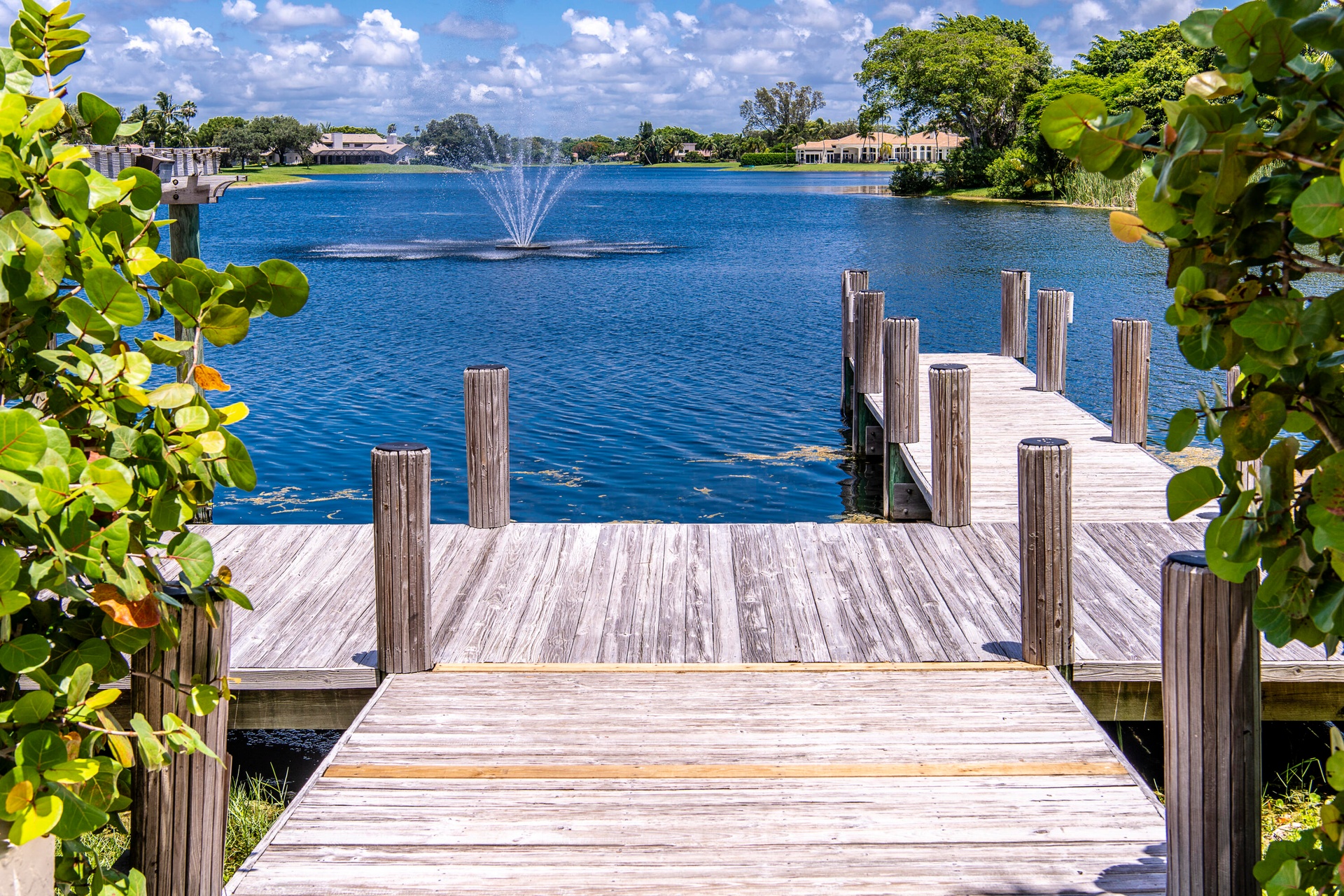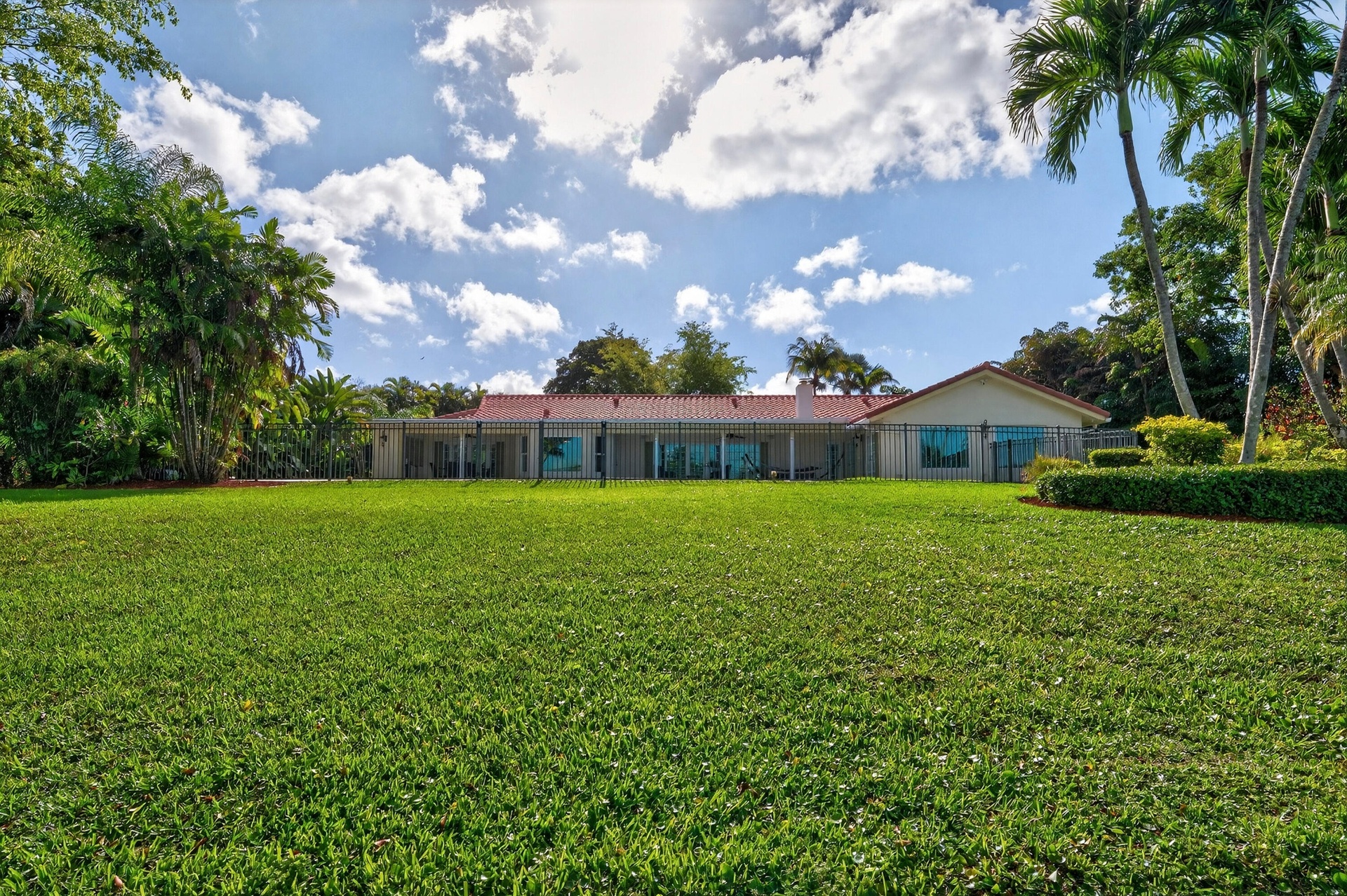 Exquisite .83-acre estate, located in cul-de-sac, lake front, point lot, providing breathtaking water views! Outstanding features incl: brick, circular driveway to oversized, side entry, 3-car garage; beautiful 18" marble floors diagonally laid in main living area; numerous cathedral & vaulted ceilings; chef's custom kitchen w/ stainless steel appliances, custom cabinets, center island and large, bay window eat-in area overlooking pool and lake; gorgeous dining room, featuring white, tongue-in-groove ceiling with beams; stunning, wide plank, knotty pine flooring in primary bedroom and #5 bedroom/recreation room; luxury vinyl flooring in bedrooms 2, 3 & 4; six sets of French doors; elegant primary bedroom & bath; plus plantation shutters! Although less obvious, more important features include all PGT hurricane windows and doors; oversized pool with new pool motor and pump; "new" roof installed in 2018; AC unit less than 1-year old; and a most desirable location--short walk to all amenities, entry to CH, and exit on Darby--and a quick walk to Parkside Drive, near synagogue, elementary school and shopping plaza. Perfectly positioned on the water, this home offers incredible sunsets each evening.