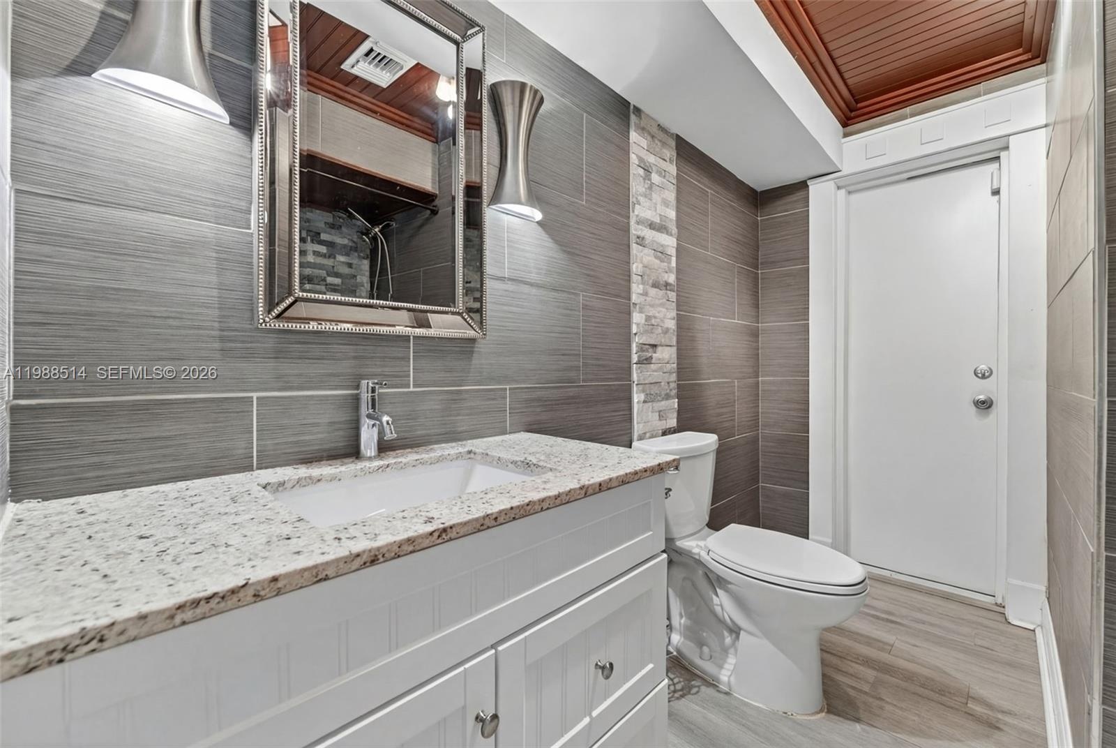 Beautifully maintained 3/3 pool home with a spacious and versatile layout, including two primary suites. The open floor plan features an updated kitchen with white shaker cabinetry, stainless steel appliances, and granite countertops throughout. Remodeled bathrooms add a modern touch, while the expansive primary suite offers lovely pool views. Enjoy indoor-outdoor living with a screened porch overlooking the pool. Additional highlights include a 2020 Roof, 2018 A/C, and NO HOA! Fruit trees including avocado, mango, banana, and coconut add to the appeal. Conveniently located near shopping, dining, hospitals, and major highways.