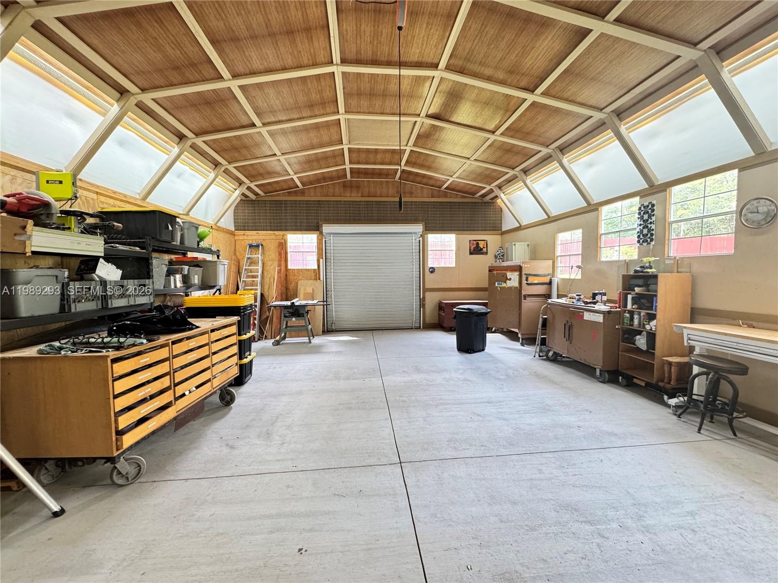 - 720 sf Workshop with two sets of rolling metal doors. This interior photo has been photoshopped to remove contents.