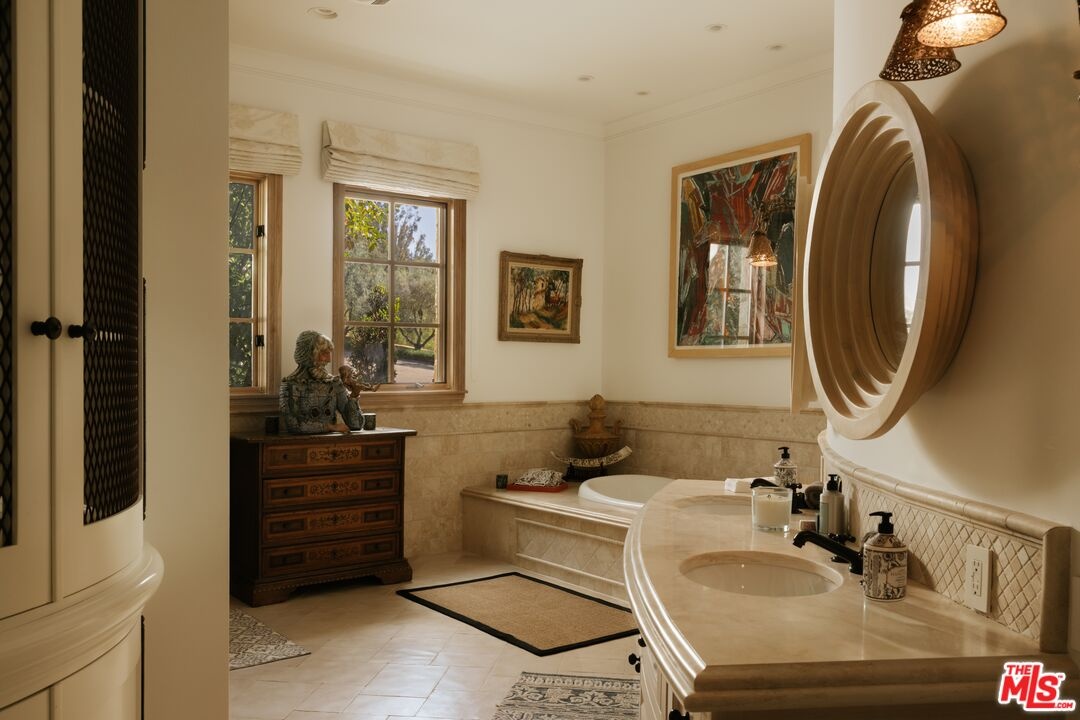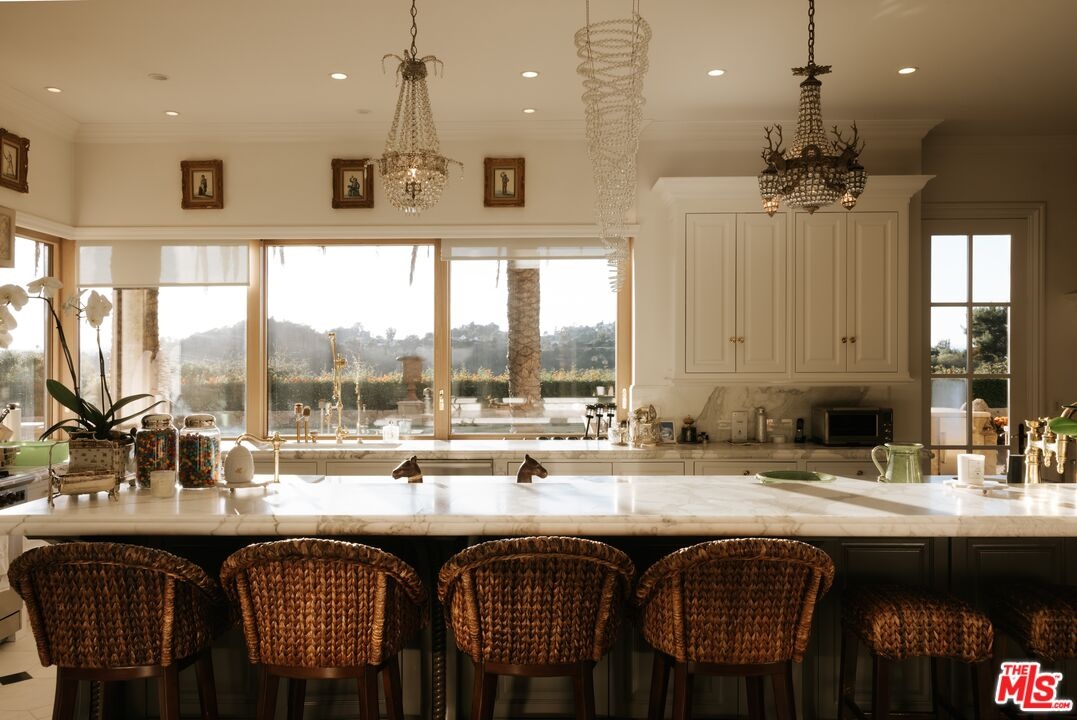 Set across more than 10.5 gated acres along iconic Mulholland Drive, Villa Colibri is a rare resort-caliber compound estate defined by its very own private 24-hole par-3 golf course, expansive outdoor amenities, and sweeping canyon, lake, and mountain views. Designed for large-scale entertaining and private enjoyment alike, the estate offers an exceptional lifestyle experience seldom found in Beverly Hills. The grounds are the centerpiece featuring a professionally designed golf course by Dean Reinmuth, a regulation tennis court with illuminated pavilion, two pickleball courts, bocce court, and multiple resort-style water features including two swimming pools, reflecting and wading pools, a waterfall, and fountains. Formal gardens, citrus groves, manicured lawns, and a series of terraces create a park-like setting ideal for hosting events ranging from intimate gatherings to large celebrations. A stately dual-gated entrance, including separate service access, leads to an expansive motor court with substantial on-site parking capacitywell-suited for large-scale entertaining. The main residence reflects classic European design, offering grand scale, volume, and timeless architectural detailing throughout. A dramatic great room with approximately 30-foot ceilings, coffered detailing, and dual sweeping staircases serves as the focal point of the home. Interior finishes include limestone, marble, and hardwood flooring, complemented by custom fireplaces, imported antique elements, and designer lighting. The chef's kitchen is equipped for both daily use and catered events, featuring an oversized island, professional-grade appliances, butler's pantry, and a full secondary prep kitchen. Retractable glass walls open to expansive terraces, creating seamless indoor-outdoor flow.Additional amenities include a library/den, theater lounge with bar, fitness studio, staff quarters, and a temperature-controlled wine cellar. The upper level is dedicated to two primary suites with private terraces and spa-style baths, connected by a loft-style walkway. Five additional en-suite bedrooms are located on the main level with separate access points for guests or staff. A detached guest residence with its own pool, kitchen, and accommodations provides flexibility for extended stays or hosting. Villa Colibri represents a rare opportunity to acquire a large-scale, amenity-rich compound in a prime Beverly Hills location, offering privacy, land, and a full suite of recreational and entertaining features.