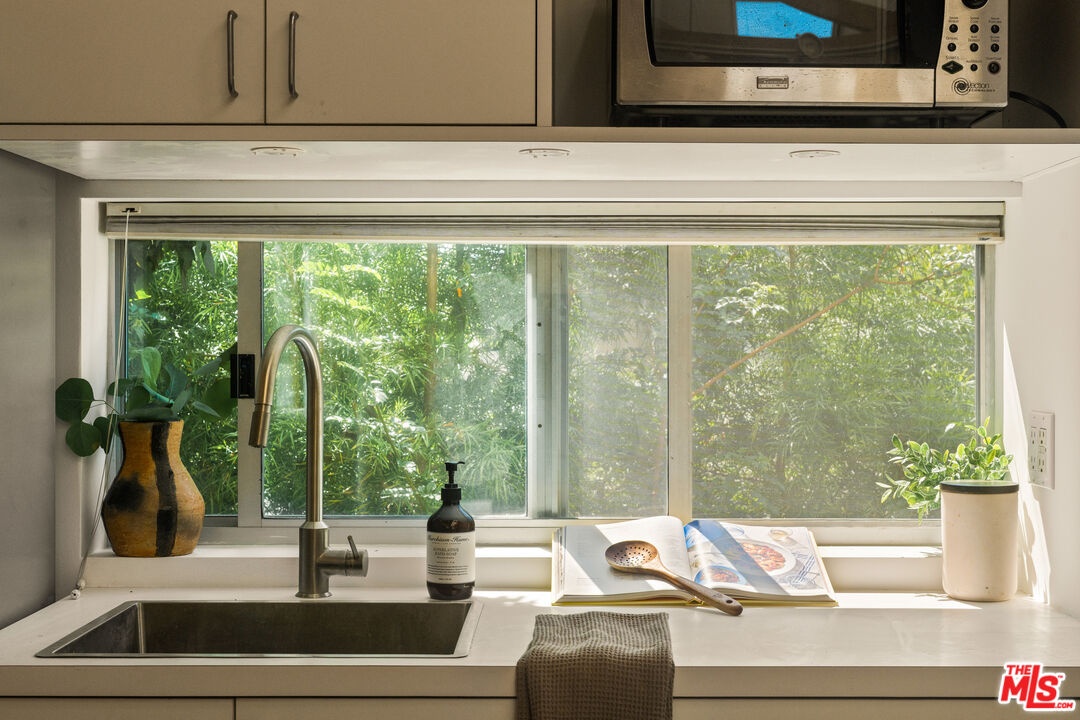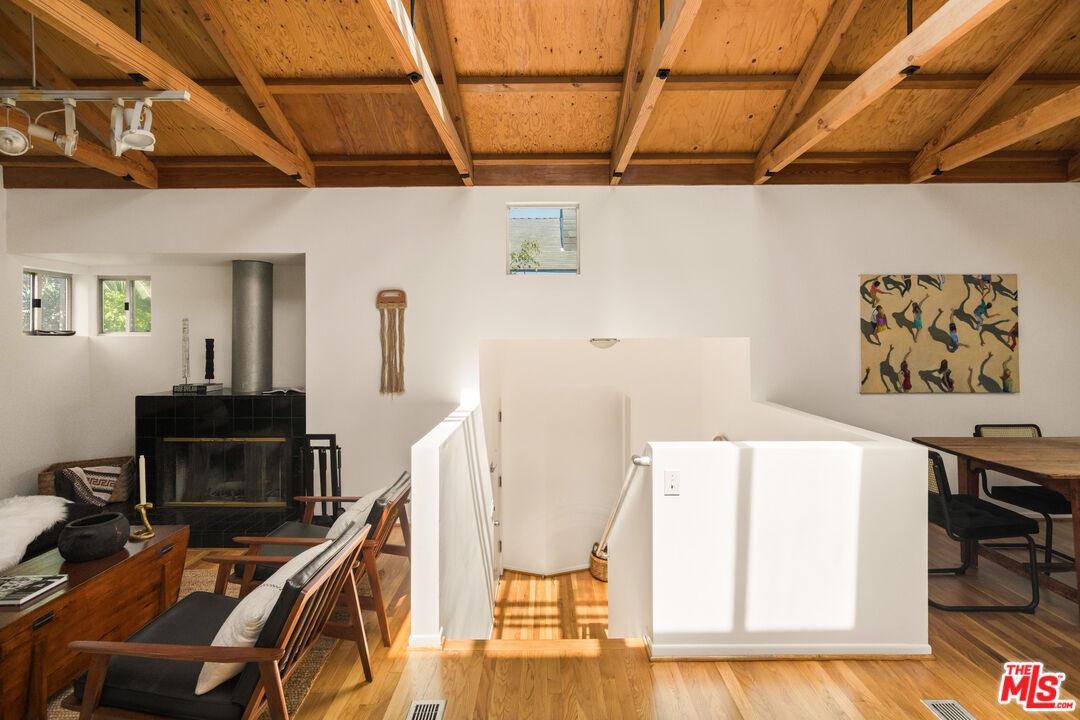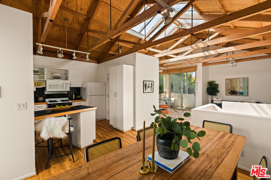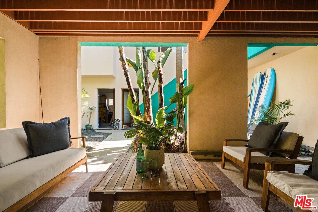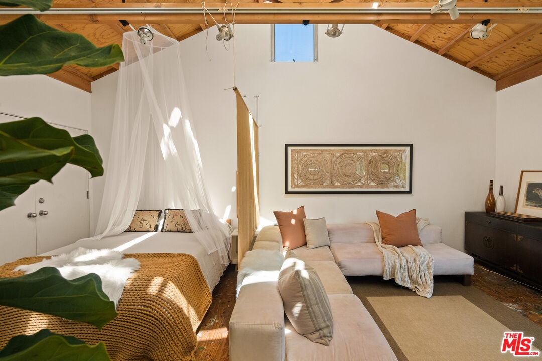 Soulful, Artists Retreat, Steps from Abbot Kinney - Tucked away on a serene, tree-lined street just moments from the vibrant energy of Abbot Kinney Blvd, this Venice property feels like a private sanctuary: an inspired oasis where nature and creativity intertwine. Lush, mature trees, palms and tropical layered greenery envelop the grounds, creating a sense of calm and seclusion rarely found so close to the heart of the Westside. Dappled sunlight filters through the foliage and sets the tone for a home that is both tranquil and full of possibility. The main residence offers 3 bedrooms and 2 baths, with a sun-drenched, top floor living space (with vaulted exposed beams and skylights) that captures beautiful natural light throughout the day, creating an airy and inviting setting for both quiet mornings and lively gatherings. Above the garage and carport, a separate, skylit loft/rec room provides a flexible and inspiring retreat, ideal for art and creative pursuits, a home office, or guest quarters, while the garage and carport themselves offer additional versatility and can easily function as workspaces or be converted back to parking. Gated parking ensures privacy and convenience, and generous outdoor areas invite you to relax, entertain, and connect with the surrounding natural beauty, making this a rare blend of tranquility, functionality and artistic spirit that captures Venice living at its most vibrant.