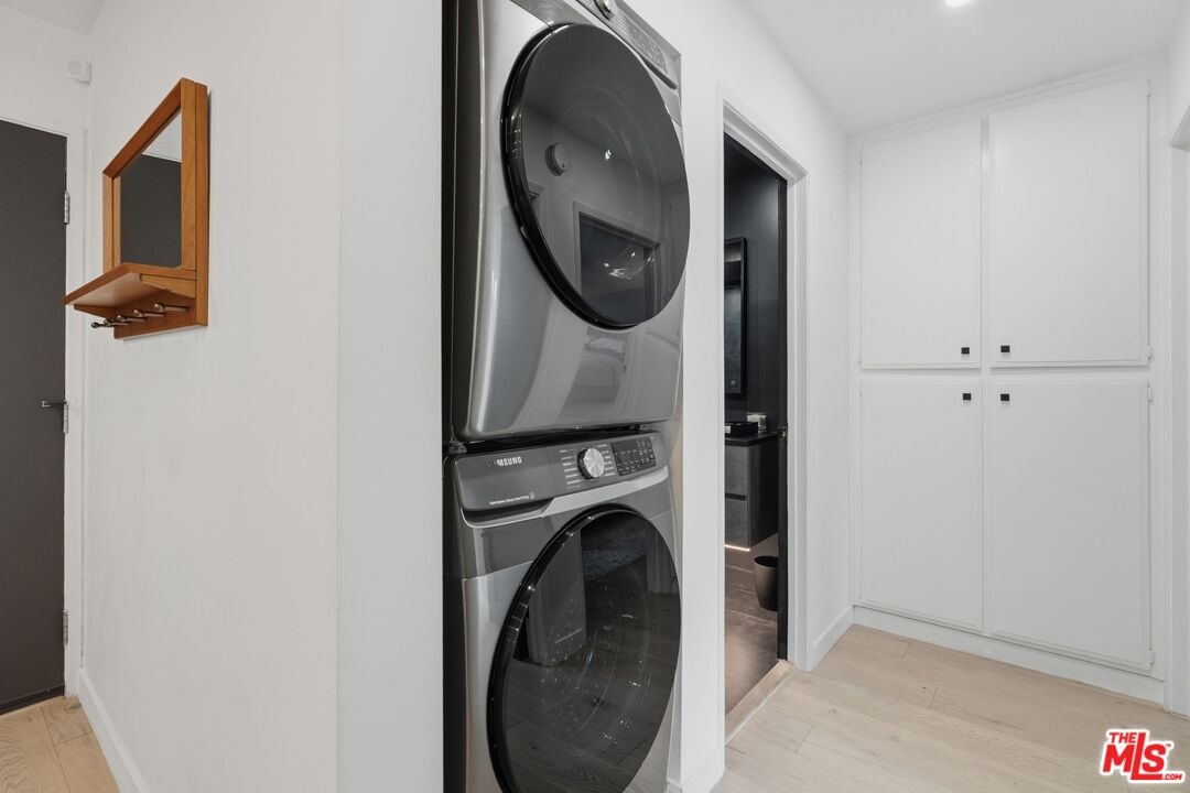 Incredible jetliner views await you in this fully renovated 2-bedroom, 2-bathroom condominium at West Hollywood's premier address, 1230 N. Horn Avenue. From the moment you step inside, sweeping views of the city and the Downtown Los Angeles skyline greet you from every window. The living room is incredibly bright and spacious, flowing seamlessly onto an oversized private patio appointed with separate dining, grilling, and lounge areas. Opening to the living room, the expanded kitchen impresses with new stainless steel appliances including a wine refrigerator, and expanded kitchen storage encompassing the entire wall. Whether gathered at the breakfast bar or at the dining room table, every meal is destined to create lasting memories. The second bedroom(or home office) is generously sized and conveniently adjacent to the in-unit washer and dryer and the first of two designer bathrooms. The primary suite evokes the feeling of a boutique hotel throughout, from the generously proportioned bedroom with commanding DTLA views, to the walk-through closet curated and finished with the precision of a high-end boutique. Allowing maximum storage without sacrificing aesthetic. The primary bathroom is a true showpiece, featuring dual sinks, a backlit mirror, and a tiled shower straight out of a design magazine. Additional highlights include a Nest Thermostat, central AC and heat, and two gated parking spaces. The entertaining also extends well beyond your front door. The building features a crystal clear pool, spa, rooftop patio, game room with foosball and a pool table, commercial laundry, onsite property management, large amount of guest parking, a secure mail room, and a dog run currently undergoing renovation, and finally a recently renovated lobby leaving a lasting first impression on your guests. HOA dues cover all of these exceptional amenities plus all utilities with the exception of electric and gas.