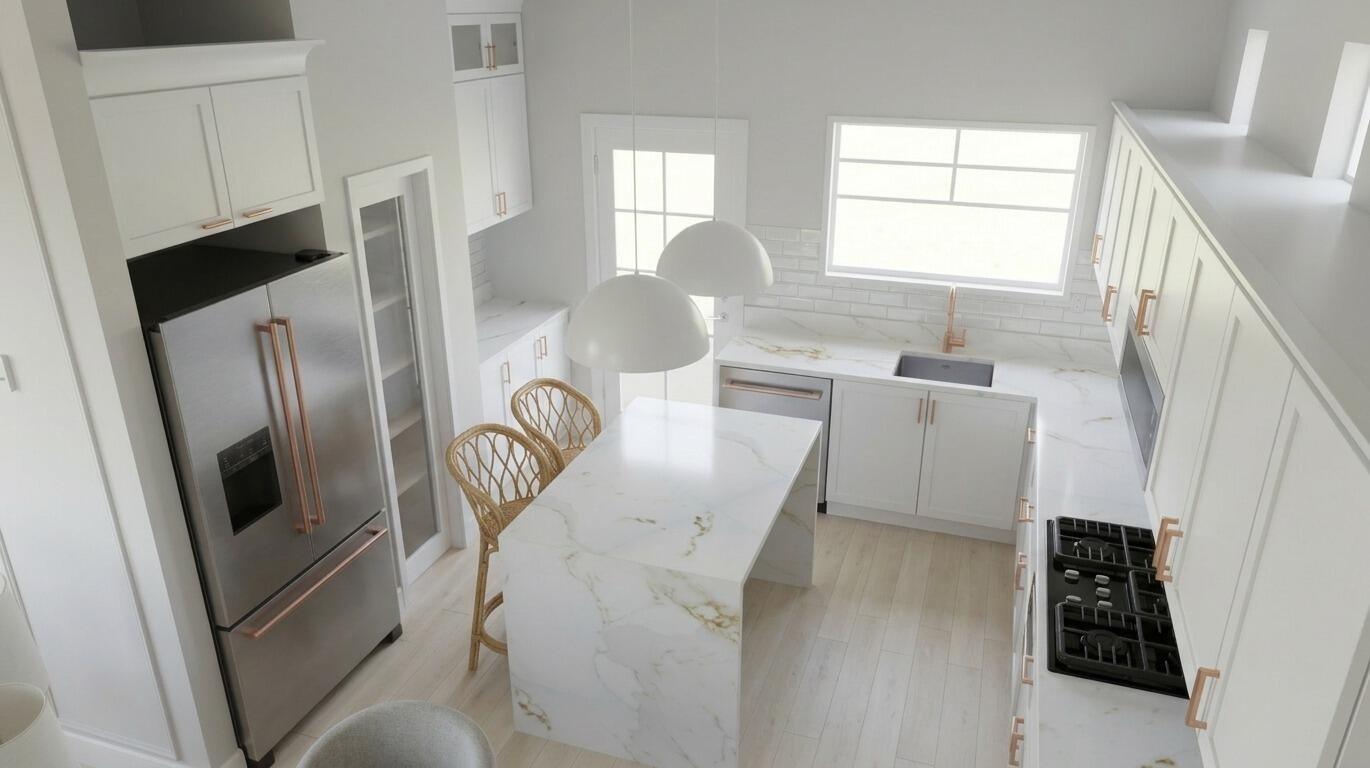Located in the heart of the Northwood Historic District at 520 38th Street, this brand new construction offers a rare opportunity to own a modern masterpiece in one of West Palm Beach's most storied neighborhoods. Scheduled for completion in a few weeks, this residence is currently available for private showings while final touches are applied. The interior defines contemporary luxury with an open concept layout and light wood flooring throughout the living spaces. The kitchen serves as the home's centerpiece, featuring crisp white cabinetry paired with elegant brass hardware. A massive marble island with a waterfall edge provides a natural gathering point, illuminated by oversized dome pendants with gold leaf interiors. Professional grade stainless steel appliances, including a gas range and built in microwave, are integrated into the design. A classic white subway tile backsplash and a secondary pantry area with glass front cabinets ensure the space is as functional as it is beautiful. The dining area flows seamlessly from the kitchen, anchored by a beaded chandelier that adds organic texture to the sophisticated environment. Large windows throughout the main level flood the home with natural light, highlighting the neutral color palette and clean architectural lines. The primary suite is a sanctuary of light, featuring expansive windows and high ceilings. Its ensuite bathroom is a spa like retreat, equipped with a deep freestanding soaking tub and a walk in glass shower with a pebble stone floor. Floor to ceiling marble look tile covers the bathroom walls, complemented by champagne bronze fixtures. Additional bedrooms offer generous proportions and the same high quality finishes found throughout the residence. Positioned on a 6,000 square foot lot just blocks from the Intracoastal Waterway, this property places you minutes from the vibrant shops of Northwood Village and the heart of downtown West Palm Beach. Experience the best of Florida's historic charm paired with the peace of mind of 2026 construction standards.