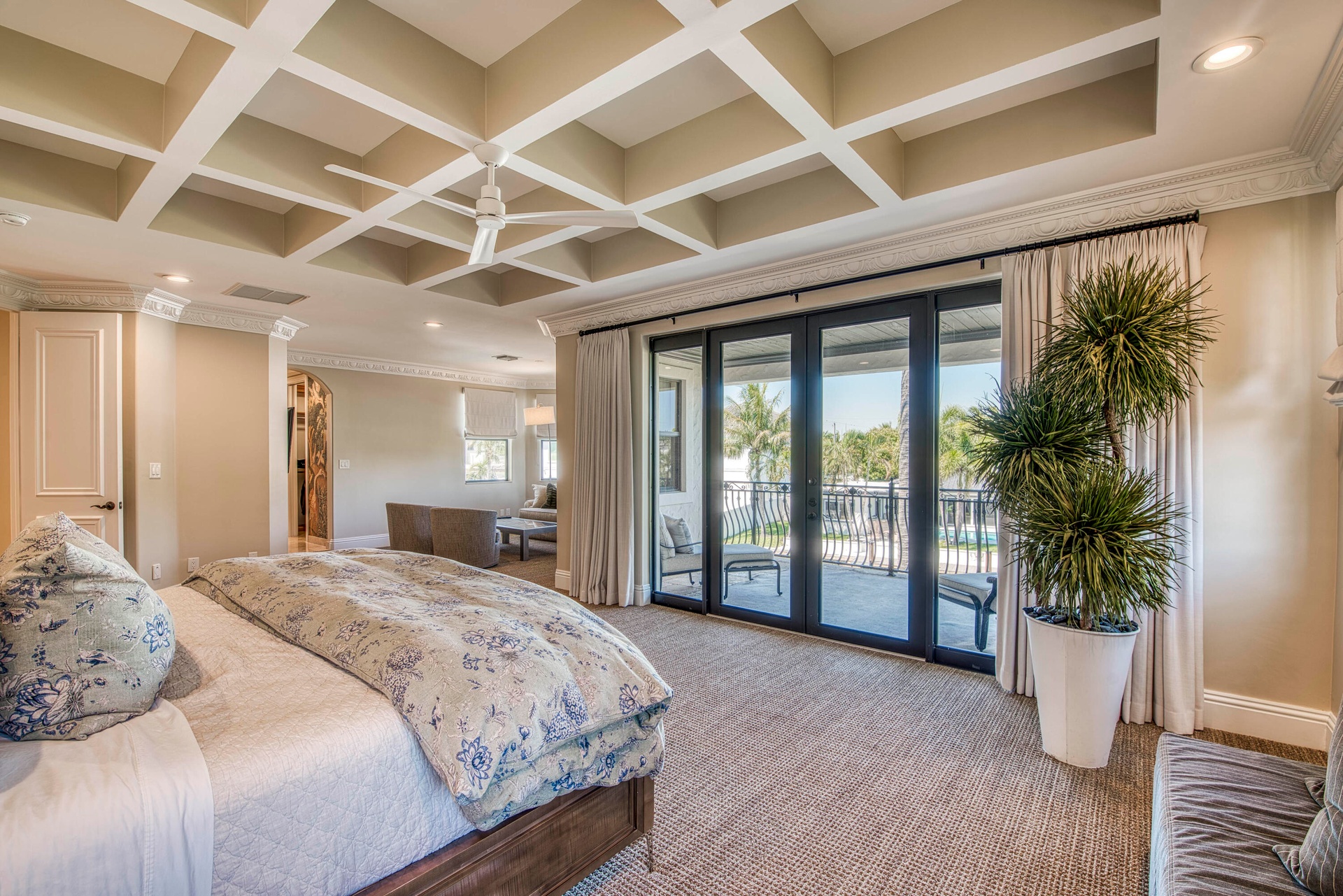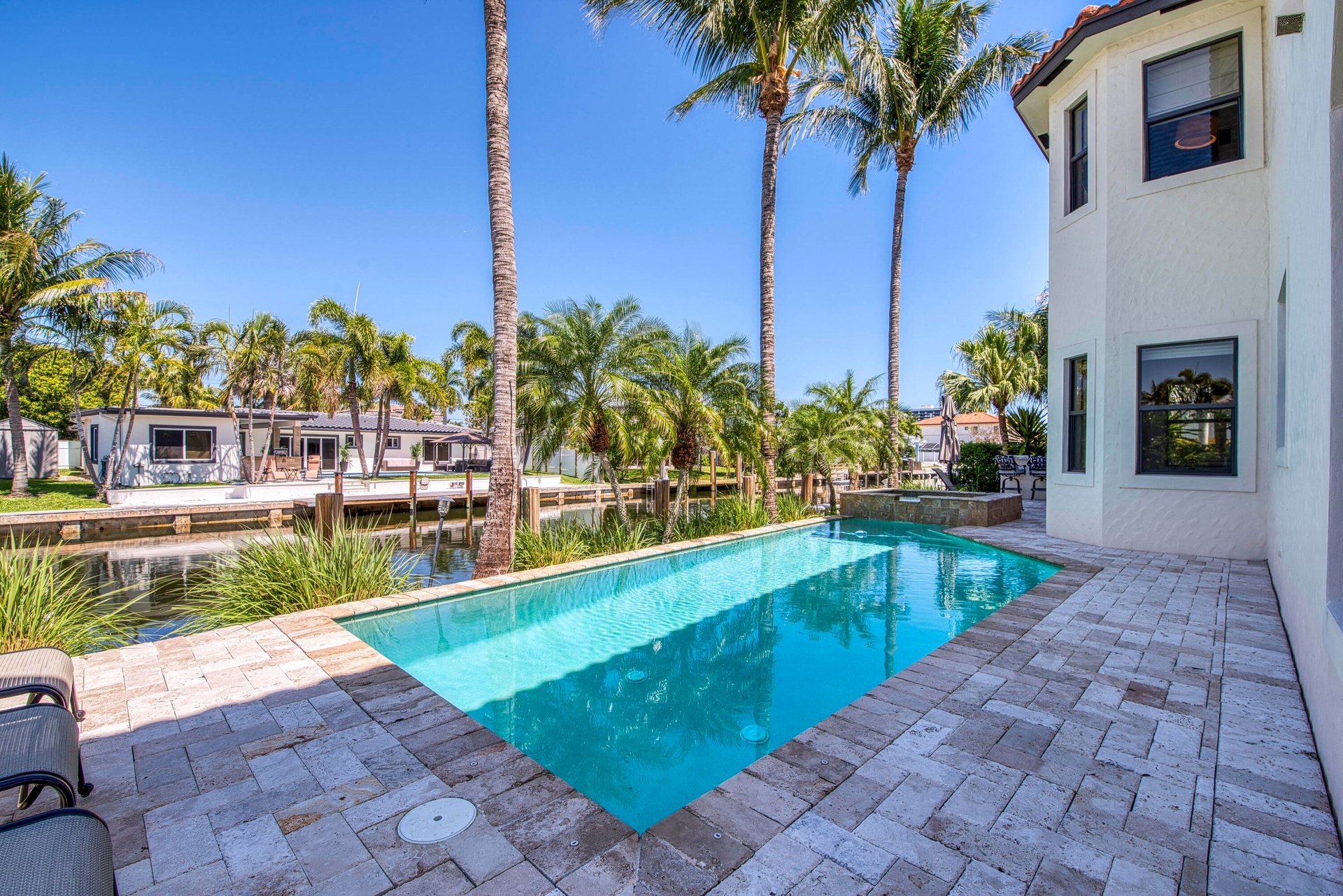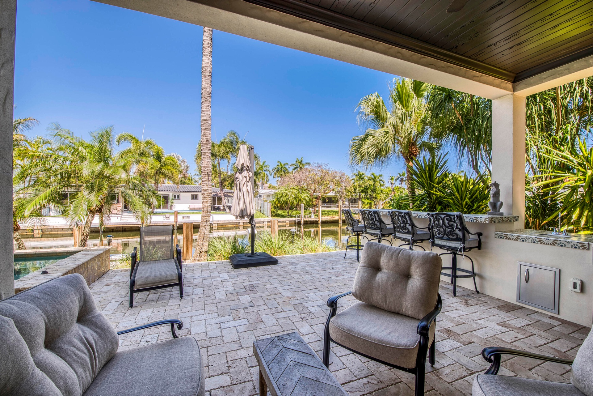 Luxury Waterfront Living in Boca Harbour! Welcome to an extraordinary waterfront estate where timeless Mediterranean elegance meets modern luxury in the prestigious community of Boca Harbour. Perfectly positioned on approximately 83 feet of frontage with direct ocean access and no fixed bridges, this impeccably maintained residence offers the ultimate South Florida boating lifestyle. Spanning approximately 4,248 square feet, this magnificent four-bedroom home makes a breathtaking first impression with a grand domed foyer and soaring 22-foot ceilings. Natural light pours through expansive floor-to-ceiling windows, illuminating the sophisticated living room anchored by a beautifully restored limestone fireplace. The elegant dining room captures serene waterfront views, creating the perfect setting for unforgettable gatherings. Designed for both everyday living and upscale entertaining, the first floor features a versatile office/den or guest suite with its own private entrance and a full adjacent bath. The spectacular chef's kitchen, completely redesigned in 2022, is the heart of the home, showcasing professional-grade appliances, etched marble tile backsplash, a built-in coffee station, and an impressive 12-foot custom island ideal for hosting family and friends. The adjoining great room opens seamlessly to the outdoor living spaces, creating a true indoor-outdoor experience. Step outside to your resort-style waterfront retreat, where a sparkling pool and spa overlook the tranquil canal. The fully equipped outdoor kitchen is designed for effortless entertaining and features a professional stainless-steel grill, refrigerator, ice maker, dishwasher, cold beverage storage, and a beautifully tiled bar area. An elevator provides convenient access to the second level, where the luxurious primary suite offers a private sanctuary complete with a sitting area, elegant tray ceilings, expansive custom walk-in closets, and a fully renovated spa-inspired bathroom. Step onto your private balcony and enjoy peaceful water views. Spacious guest suites provide comfort and privacy with oversized windows, custom closets, and beautifully updated en-suite bathrooms. With significant upgrades throughout, this residence delivers the perfect blend of luxury, comfort, and peace of mind in one of Boca Raton's most desirable waterfront communities.