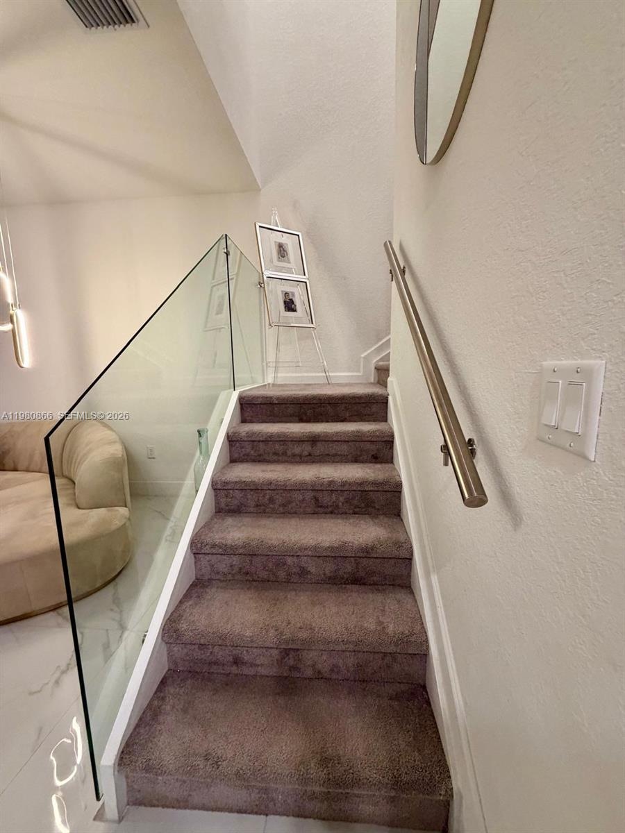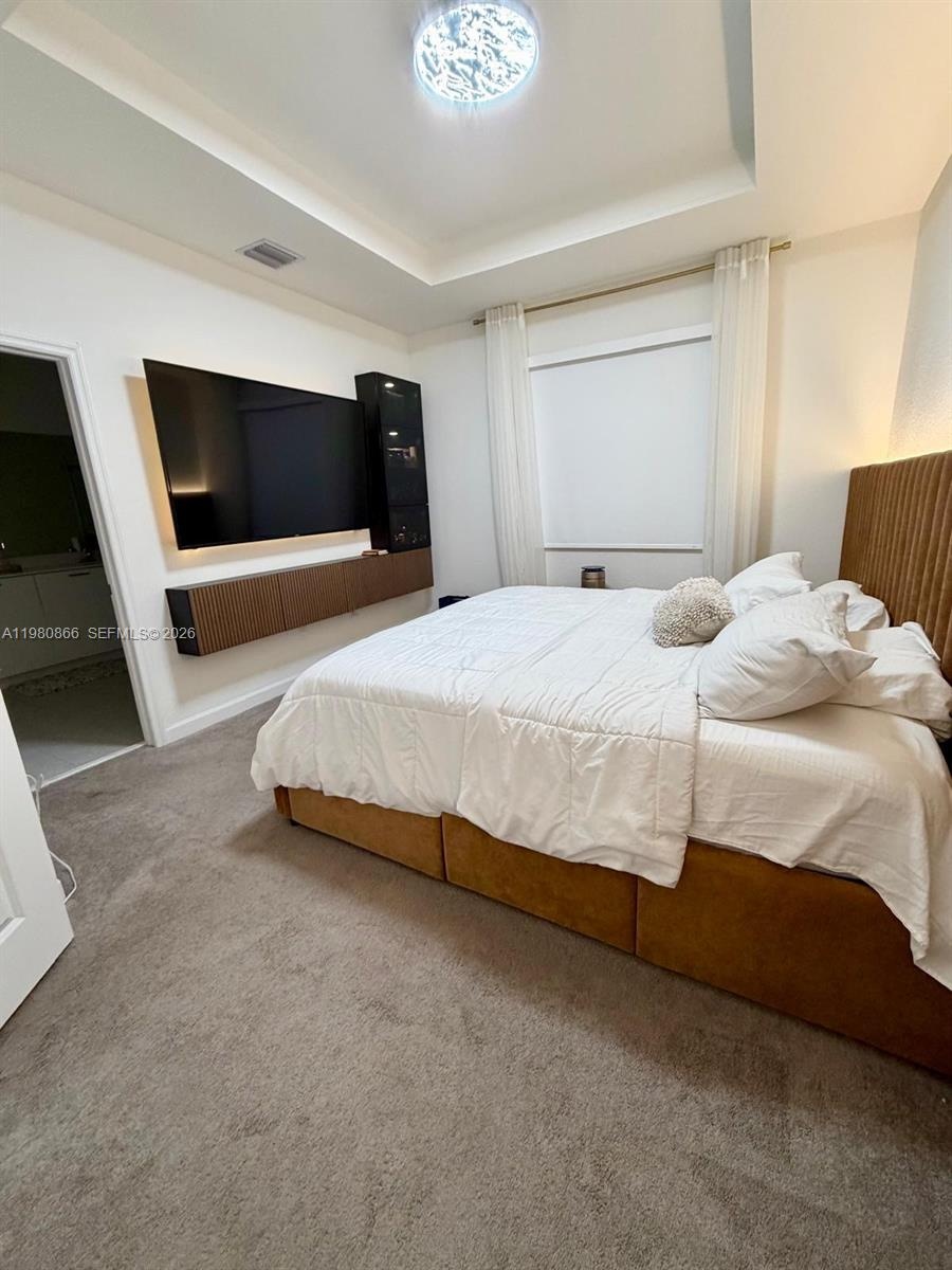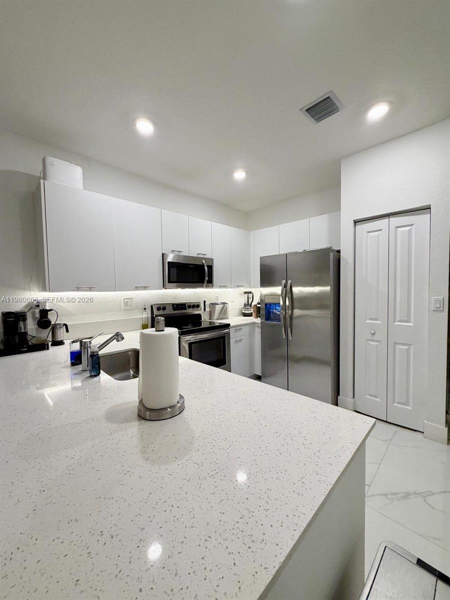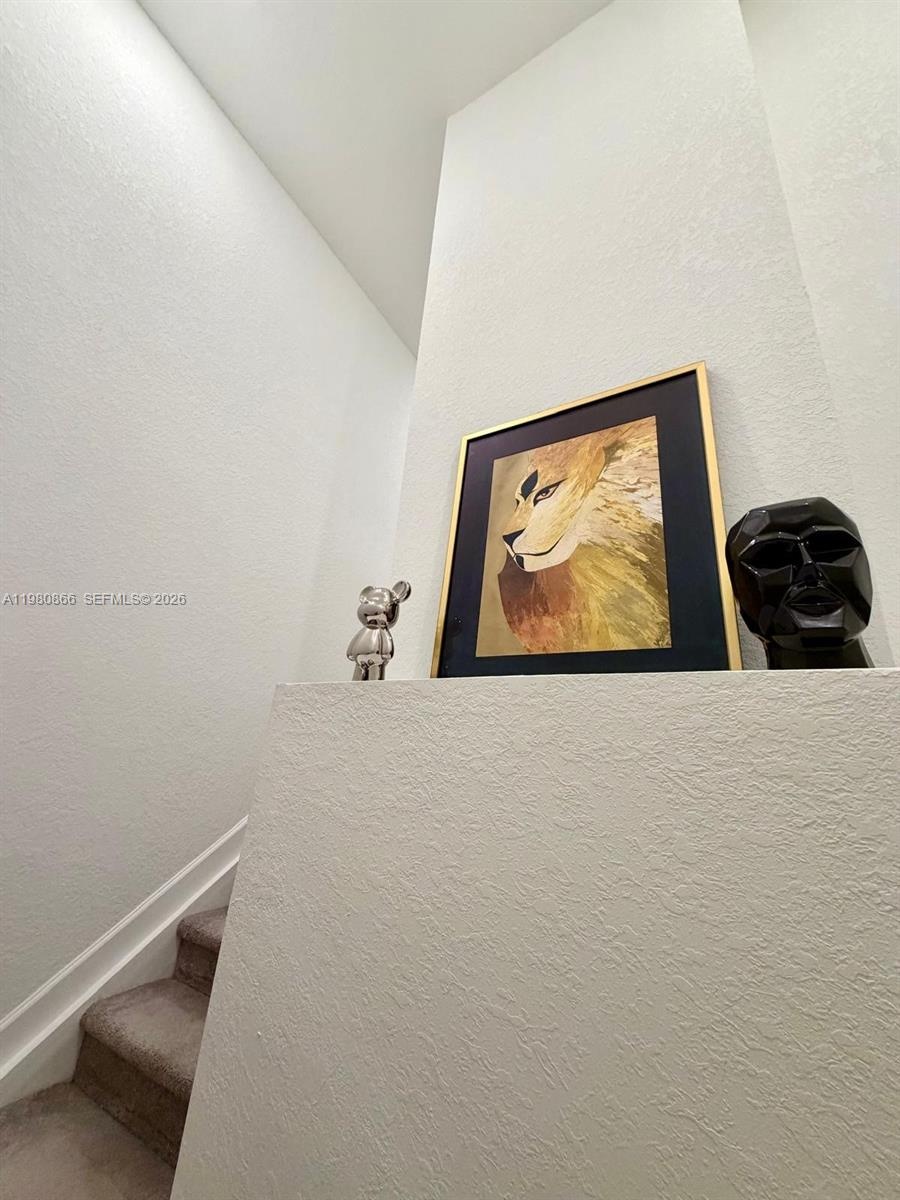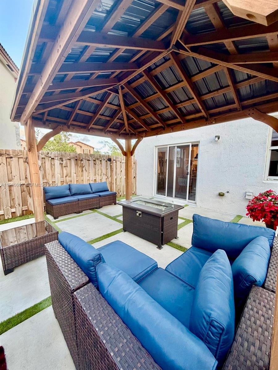 Beautiful corner 3 Bed/3 bath lot property featuring modern interior with Italian porcelain tile on the first level, impact-resistant windows, glass stair railing, custom-built wine cellar, and an upgraded security system. Primary suite offers a large walk-in closet, dual vanities, and stand-up shower. The open-concept kitchen features stainless steel appliances, quartz countertops bar. Fully upgraded backyard with concrete flooring and a charming wooden pergola. The home also features a 1-car garage, driveway space for up to 3 vehicles, and plenty of guest parking. Located in a gated community with resort-style amenities including a clubhouse, fitness center, pool, children’s playground, and dog park. Prime location: 7 min to I-95 / 4 min to Miami Dade College / 10 min to Amelia Park and Palmetto Expressway / 15 min to Downtown / 18 min to Doral / 20 min Miami Airport. Low HOA, no flood insurance required, and washer/dryer hookup conveniently located on the second floor. Dining room lamp and washer/dryer excluded from purchase.