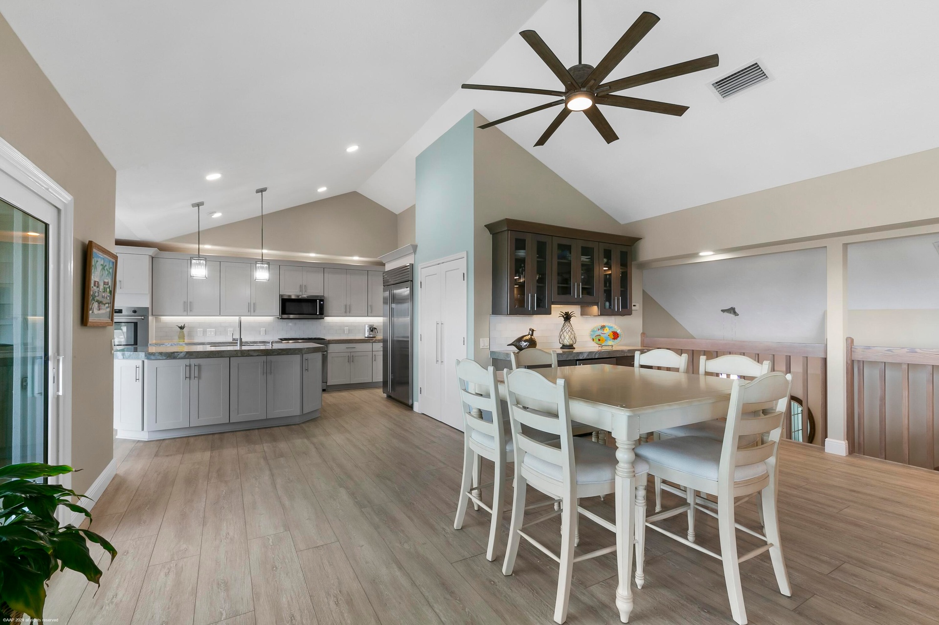 Beach house with sweeping ocean views and a rare 50' deeded ocean front beach parcel. Recently renovated four bedroom, 3.1 bath home with Pool and Elevator. Two story home with First floor featuring 2 bedrooms, bathroom and large family room guest quarters overlooking the pool. Second floor with 2 en-suite bedrooms, dining area, kitchen and large family room plus wrap around deck overlooking the ocean. Home features all new impact windows and doors, metal standing seam roof (2017), elevator, newly remodeled kitchen with marble countertops, subzero side-by-side, stainless refrigerator/freezer, large center kitchen island, Thermidor gas stove and convection oven and a separate Bertazzoni electric convection wall oven. HVAC has three zones for everyone's comfort. 2.5 car garage.