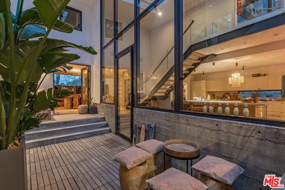 A strikingly beautiful David Hertz architectural compound, 2 blocks to the ocean and adjacent to Venice canals. The main home has 3 bedrooms and 3 bathrooms and an impressive roof top deck ideal for entertaining, dining or watching the sunset. Inside you will find an open kitchen fit with a walk-in pantry, wine cooler, Sub Zero fridge, Viking range, custom cabinets & intimate countertop dining. Enjoy a 2-story reclaimed wood fireplace lounge which leads out to a private atrium perfect for morning coffee or al fresco dining. The Primary bedroom wing provides a private terrace which extends to the roof deck, custom walk-in closet & luxurious bathroom with skylights. A separate one bedroom and one bathroom guest house with private entrance and separate garage, features a full kitchen, laundry, & roof deck access - perfect for guests or generating additional income. Additional gym/flex space/garage up front and invaluable 3 car garage in back + 1 spot. An expansive teakwood deck overlooks the nearby canals & features a BBQ grill, sink, fridge & fire pit. A Venice dream, this residence is located just a stone's throw away from the trendy shops and restaurants on Abbot Kinney like Gjelina, Felix, Erewhon, etc., recreational activities, and thriving nightlife. This property is a true gem that is not to be missed.
