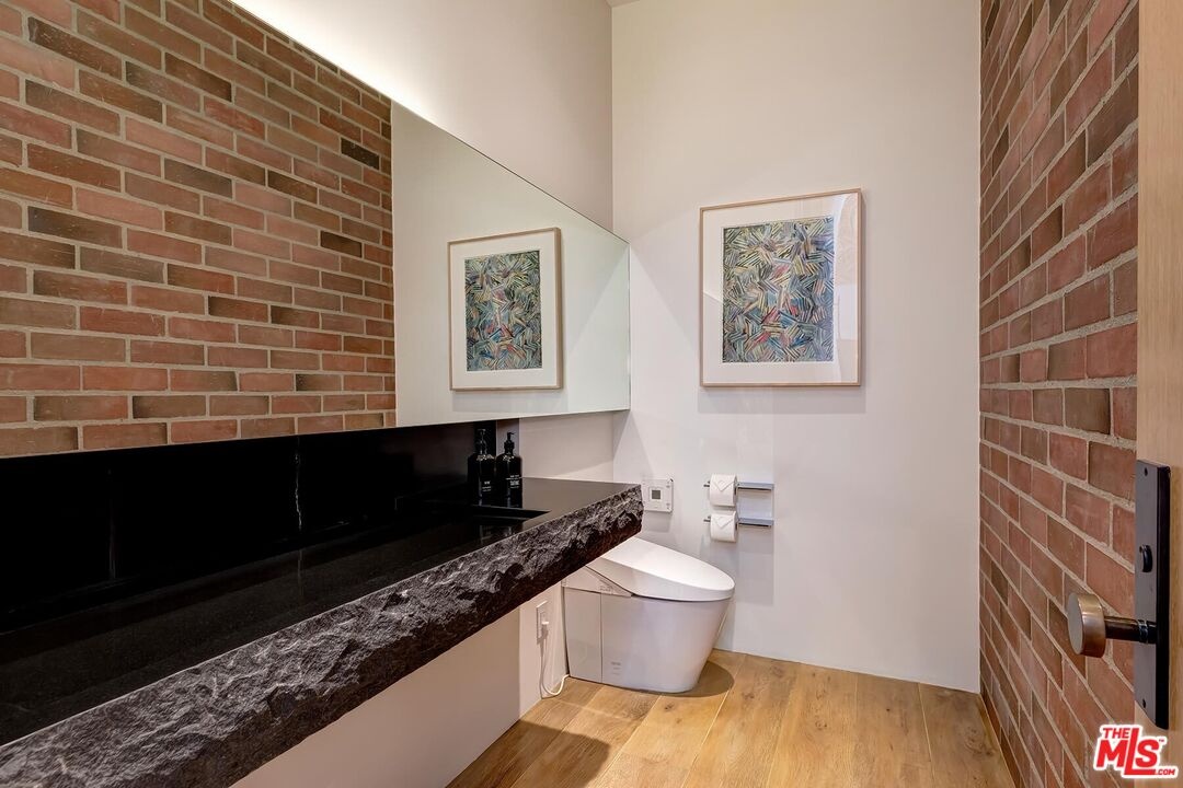 Located within the guard-gated enclave of Stoneridge Estates, this contemporary residence sits on over one acre of flat, usable land and offers privacy, scale, and city light views. Originally designed by Assembledge+, the home features a blend of brick, wood, steel, glass, and concrete throughout. Interior spaces include high ceilings, expansive living areas, and seamless indoor-outdoor flow through floor-to-ceiling openings. The kitchen is equipped with high-end appliances and designed for both everyday use and entertaining.Outdoor amenities include a zero-edge pool, large grassy yard, outdoor dining area, built-in BBQ, and fire feature. Additional features include a screening room, wine cellar, guest quarters, motor court, and home automation system.Optional furnishings available. Located in a private community of 11 residences.