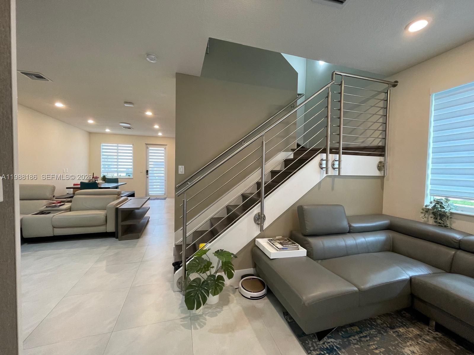 Luxurious 2-story corner, modern townhome in vibrant Doral. Features 4 bedrooms, 3 bathrooms, impact windows, newer construction (2018), and two separate entrances ideal for multigenerational living. Garage converted for added interior space, plus 2 rear parking spaces and abundant guest parking in front. Contemporary kitchen with quartz countertops, stainless steel appliances and sleek modern and practical cabinetry, luxury finishes throughout, low maintenance fees, Resort-style amenities in Landmark's entertainment clubhouse, easy to show, and will be available immediately. Facilities include clubhouse, pool, tennis courts, fitness center, hot tub, sauna, picnic areas, and playgrounds. Prime location near top restaurants, shopping malls, major highways, and Miami International Airport. Top-rated schools, great maintenance fee, and the best unit in the community. Sold AS IS, quick move-in.