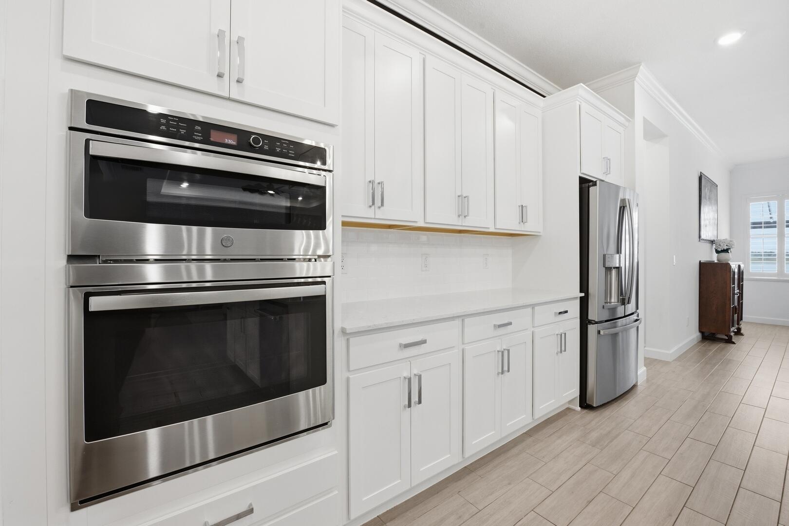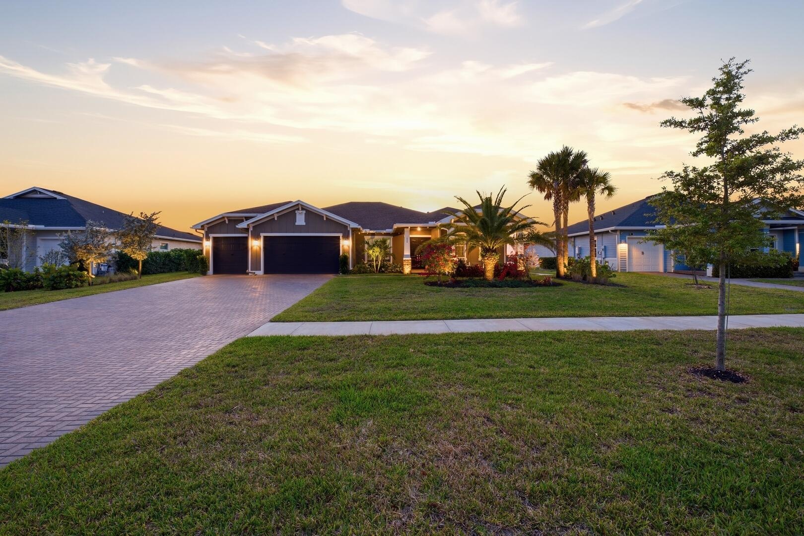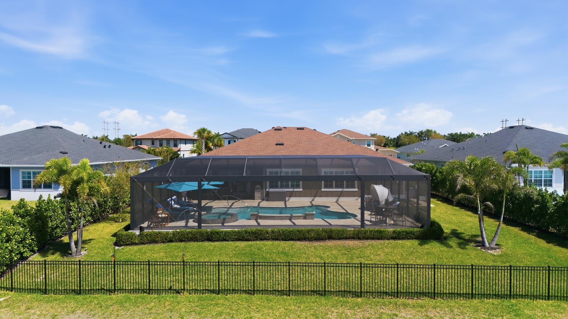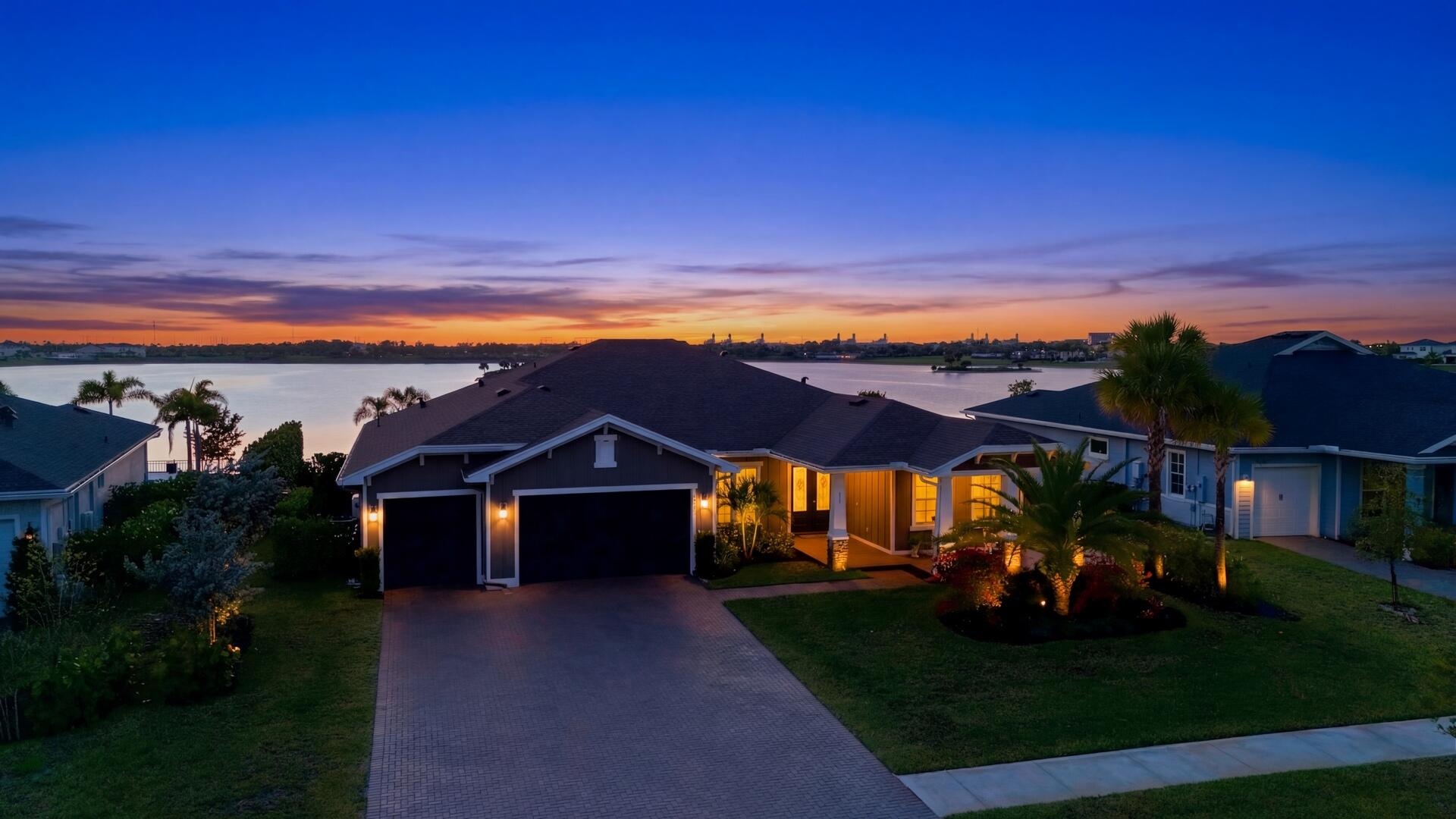 A stunning lakefront pool home designed with a clean, modern edge and elevated finishes throughout. Offering 4 bedrooms plus a sleek study/den and 3.5 baths, the home makes an immediate statement with a dramatic double-door entrance that opens into a grand foyer featuring a striking triple tray ceiling. The main living space is wide open and filled with natural light, anchored by a spacious great room with walls of glass that fully connect indoor and outdoor living. Entertain effortlessly in the formal dining area, all wrapped in smooth walls, crown molding, wood-look plank tile flooring, impact windows, and plantation shutters. You also have the peace of mind of a whole-house generator and a full water purification system already in place. The kitchen is straight out of a design magazine—crisp, modern, and highly functional. Quartz countertops, a clean tiled backsplash, stainless steel appliances, a 5-burner gas range with vented hood, oversized island, and casual breakfast nook all come together in a space that's built to impress. The primary suite is a private escape with a tray ceiling, dual walk-in closets, and a spa-style bath featuring a freestanding soaking tub and a glass-enclosed walk-in shower. Outside is where this home really separates itself—your own resort-style setting overlooking the water. A custom saltwater heated pool and spa with 6 jets, marble decking, full screen enclosure, and a fully equipped summer kitchen with top-of-the-line appliances create a seamless outdoor lifestyle that feels like a private retreat. Finished off with Polyaspartic garage flooring and a premium lakefront setting, this home is dialed in, move-in ready, and built for the way people want to live today. Located within walking distance to the new elementary school and near top-rated K-12 options, this home offers convenience as well as luxury. The community provides resort-style amenities: miles of trails, two clubhouses, pools, pickleball, tennis, basketball, boat ramp, fishing piers, skate park, dog parks, and even a working farm offering organic produce to residents.