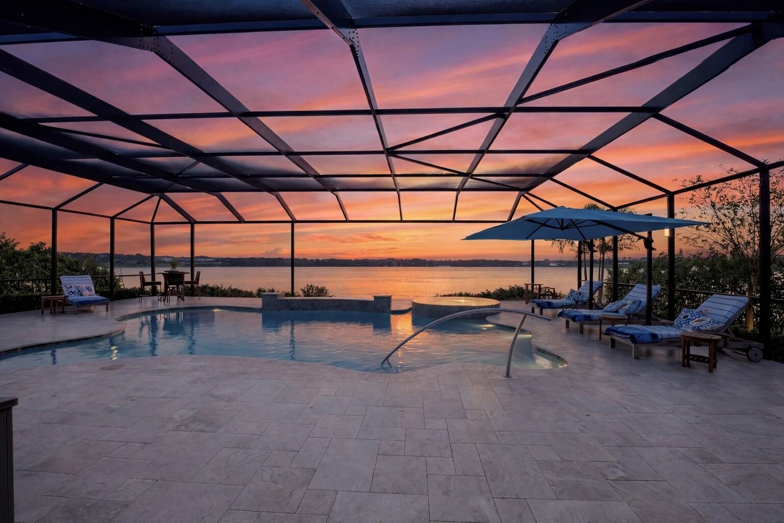 A stunning lakefront pool home designed with a clean, modern edge and elevated finishes throughout.