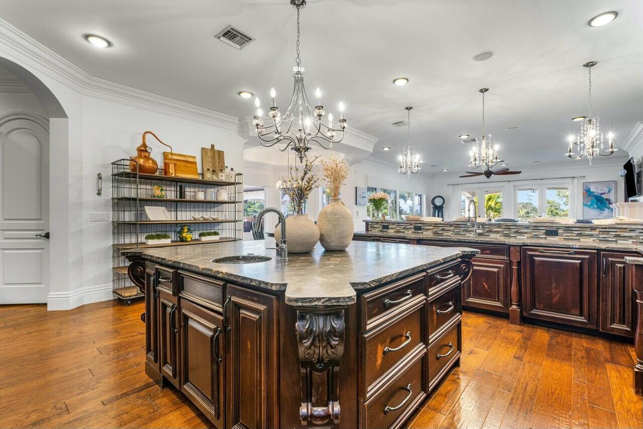 Perfect for entertaining, the expansive outdoor oasis features a covered lanai, summer kitchen, fire pit, and a stunning infinity-edge pool overlooking the serene lake. Additional highlights include a five-car garage complete with workspace and full bath, as well as a dumbwaiter for added convenience. Offering both elegance and seclusion, this estate is a true sanctuary for discerning homeowners.