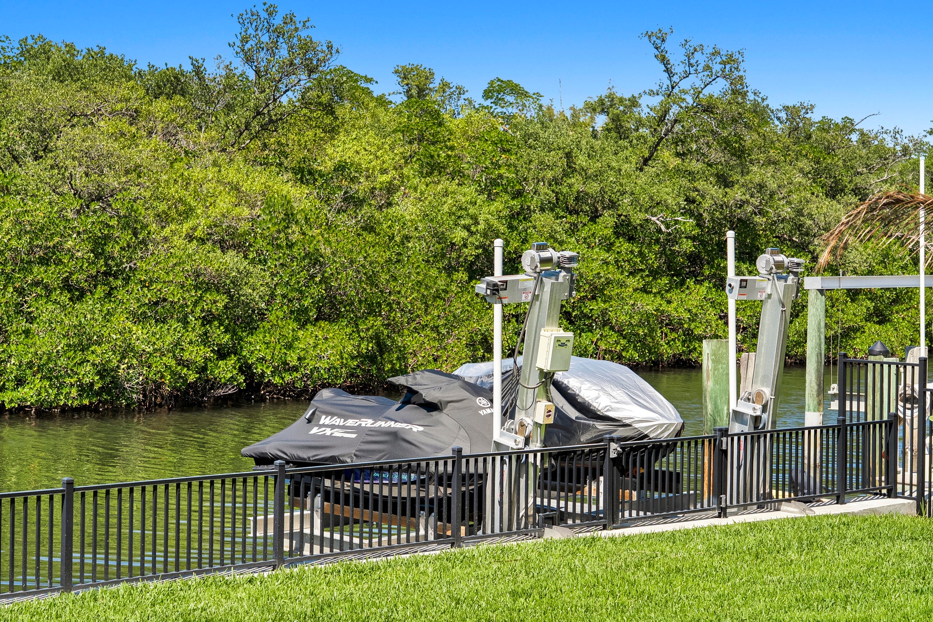 Waterfront living in the heart of Hobe Sound with direct access to the Intracoastal Waterway. This beautifully remodeled 4BR/3BA CBS home offers 100 ft of waterfront, a concrete seawall, private dock, boat lift, and jet ski davits—perfect for boaters with quick access to Jupiter and Stuart inlets. Inside, enjoy a newer kitchen with custom cabinetry, updated bathrooms, and a bright open layout with soaring ceilings, abundant natural light, and water views from nearly every room. The first-floor primary suite adds convenience, while a loft and additional bedrooms provide flexible living space. Lush tropical landscaping, and a fenced yard create a polished outdoor setting with room for all your water toys. No HOA and just minutes to beaches, dining, and parks.