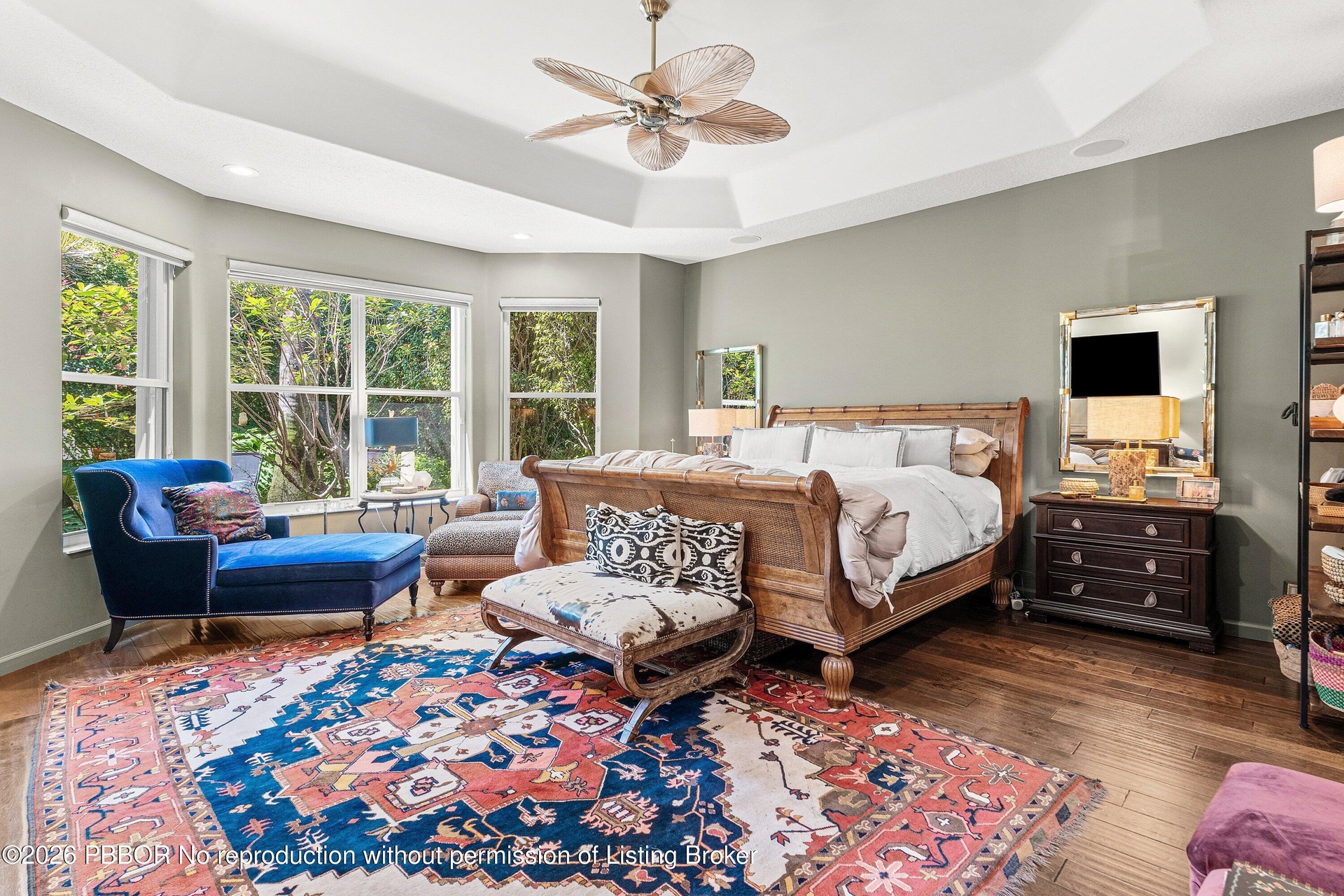 cathedral ceilings, transom windows, surround sound, and sliders open to a screened lanai with tranquil garden views. The primary suite features bamboo flooring, tray ceiling, fitted