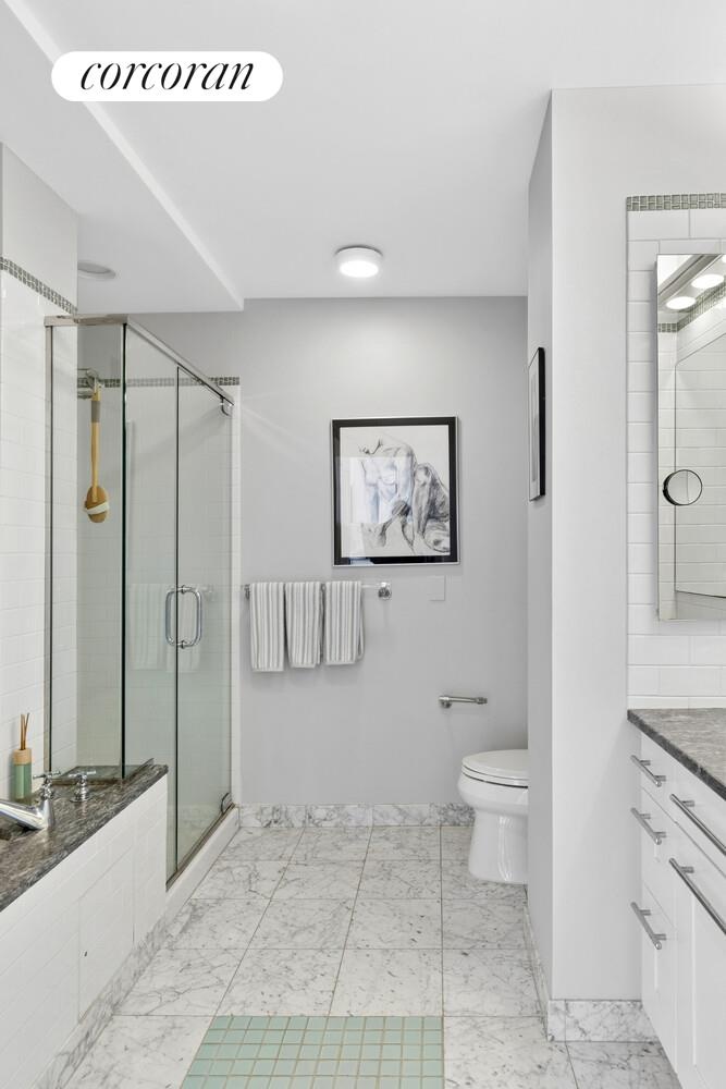 Located at Broadway and 107th Street in a new Flatiron inspired building designed by Randy Gerner, this is one of the building's most sought after apartments with 2,187 square feet of interior space and a 35 square foot balcony. This unique home has been renovated to perfection, featuring 3 or 4 bedrooms, 2.5 bathrooms, floor to ceiling windows, 10 foot ceilings, a bonus room that can be configured as a dining room, den or 4th bedroom, eat in kitchen, a new full-size vented LG washer/dryer, California Closets, electric window shades, beautiful new hardwood floors and individually controlled heating and A/C in every room. Both the grand scale living room and primary bedroom have multiple exposures offering remarkable views of the Hudson River and the area's surrounding architectural landmarks. There’s a 35sf balcony off the living room with seating for two overlooking the river. Storage bin included (no fee).